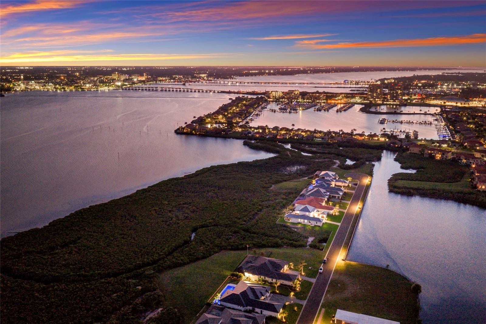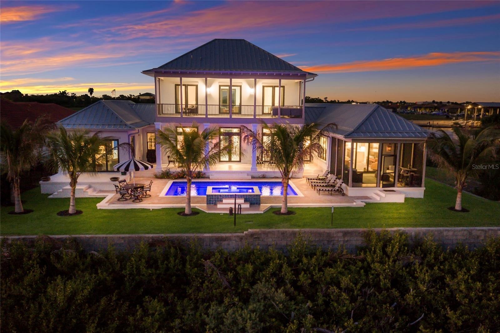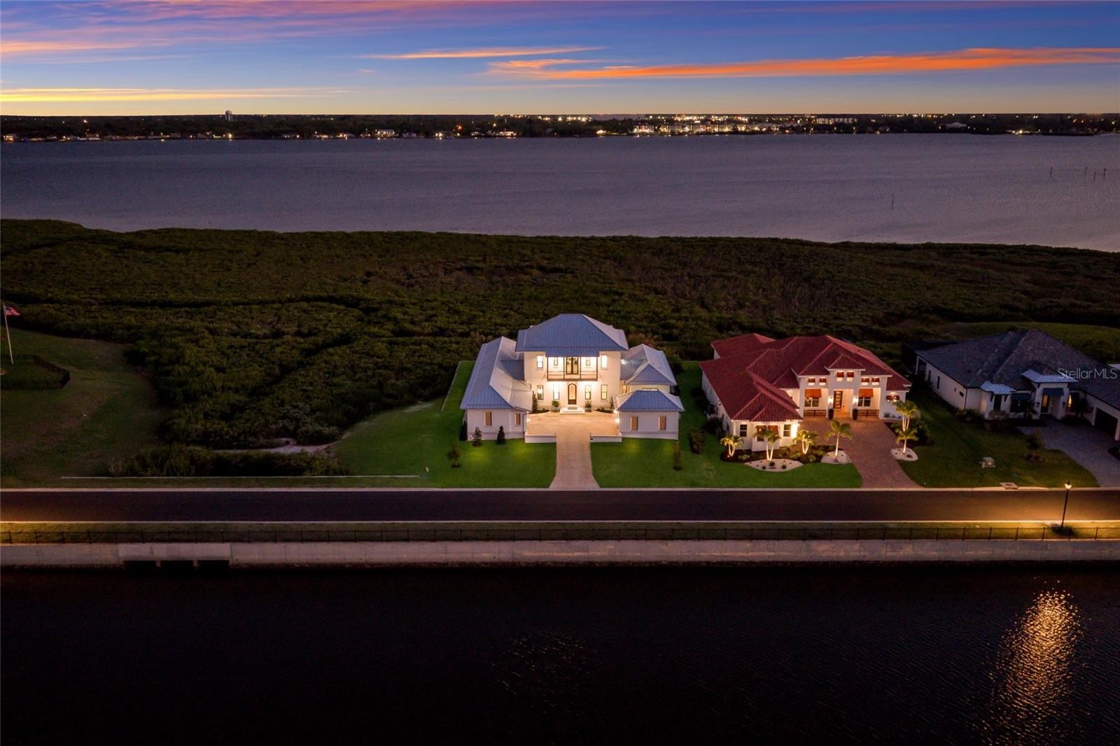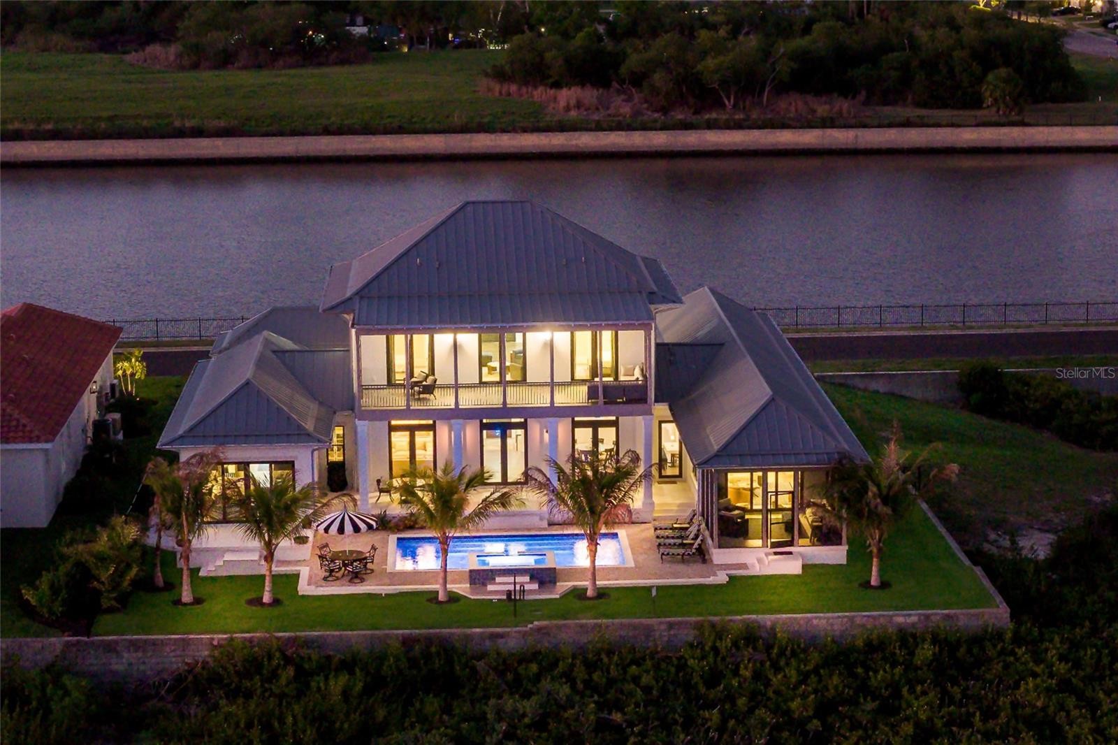 A TRULY EXCEPTIONAL NEW CUSTOM BUILT WATERFRONT ESTATE ON THE MANATEE RIVER WITHIN THE PRESTIGIOUS GATED ENCLAVE OF WATER'S EDGE AT SANCTUARY COVE! Uncompromising craftsmanship and sweeping panoramic water views create an extraordinary residence. Designed with inspiration from the Coastal Living Idea House by Cooper Johnson Smith Architects, this remarkable home offers a rare blend of refined craftsmanship, resort-style outdoor living, and direct boating access, creating an unparalleled Florida lifestyle defined by elegance, comfort, and effortless indoor-outdoor living. Perfectly positioned to capture sweeping water views from the front, rear, and side elevations, the home includes a 35-foot private boat slip with a 10,000 lb lift, complete with water and power. Built with lasting quality in mind, this home features a standing seam metal roof, half-round galvalume gutters, a closed attic system and spray foam insulation throughout the second floor. Interiors are finished with level 5 smooth drywall, engineered oak hardwood flooring throughout, and extensive custom millwork and casework. Architectural details include custom door surrounds, transoms in the living room, cove molding, and LED-accented coastal molding in the family room and kitchen. Ceiling heights impress with 12-foot ceilings along with vaulted ceilings in the kitchen, family room, porch, and primary suite. The chef’s kitchen is designed for both function and entertaining, featuring high end cabinetry, a custom chateau style range hood, granite countertops with warm neutral tones, a one-piece granite island with seating for five, banquette seating, an 8-burner gas double oven range, warming drawer, and under-cabinet and cove lighting. The kitchen flows seamlessly into the family room and screened porch, enhancing the home’s open-concept design. A well-appointed laundry and utility space offers quartzite countertops, a full pantry, laundry sink with cabinetry, hanging space, and additional linen storage. The primary suite is a private sanctuary with a vaulted ceiling, motorized blackout shades and a private terrace with full river views. The spa-inspired bath features marble finishes, double sinks, basketweave tile detailing, marble wainscoting, and a multi-head shower system with rainfall, waterfall, and body sprays, along with thermostatic controls and a heated towel rack. The suite also connects to a private courtyard with a fountain and outdoor shower. Outdoor living is equally impressive with a heated and cooling saltwater pool and spa. The exterior showcases a herringbone brick driveway, golf cart parking, and distinctive copper gas lanterns at the front entry and screened porch. Modern efficiency and technology include a whole-house natural gas generator, two tankless gas water heaters and smart LED lighting. This extraordinary residence offers a rare opportunity to own a meticulously designed waterfront home that seamlessly blends architectural excellence, luxury finishes, and premier boating access in one of the area’s most desirable coastal communities. This home offers convenient access to the 365 acre Emerson Point preserve, the beaches of Anna Maria Island, local restaurants and two nearby airports. Embrace the beauty of Florida waterfront living, where boating, sunset views and coastal relaxation are part of everyday life.