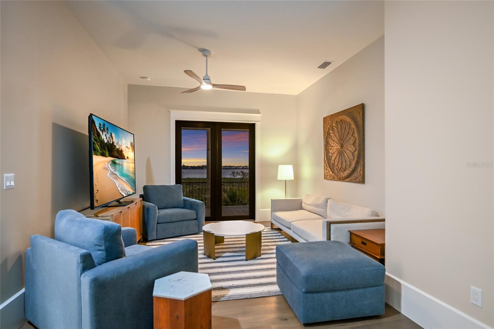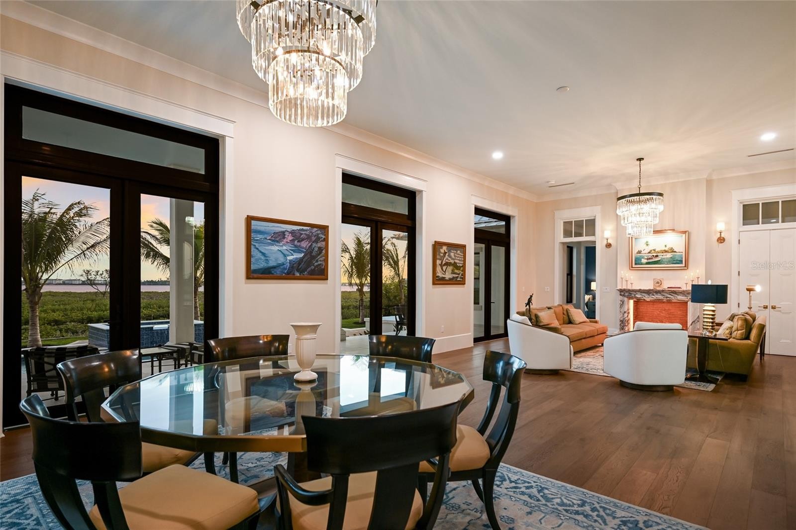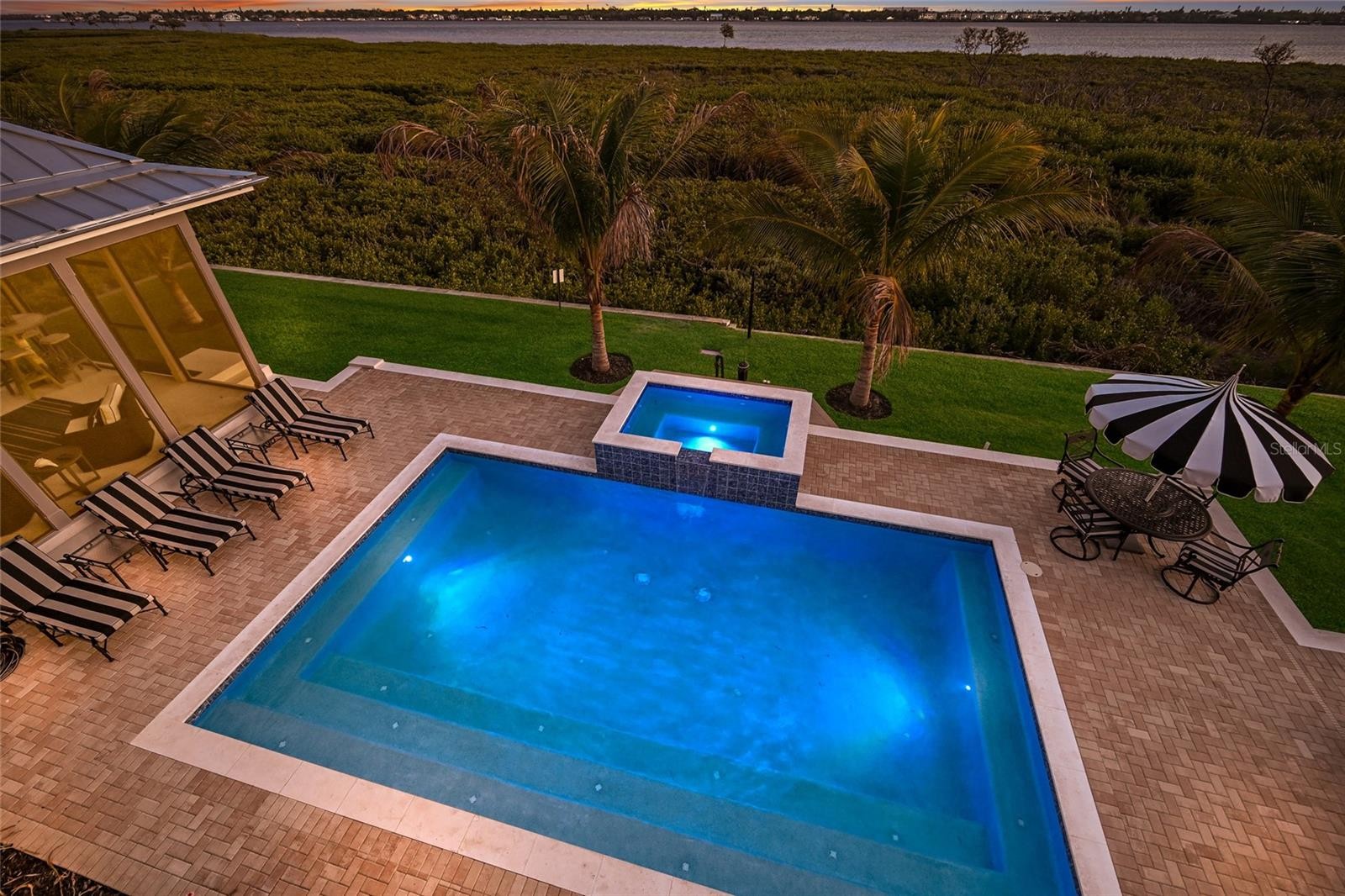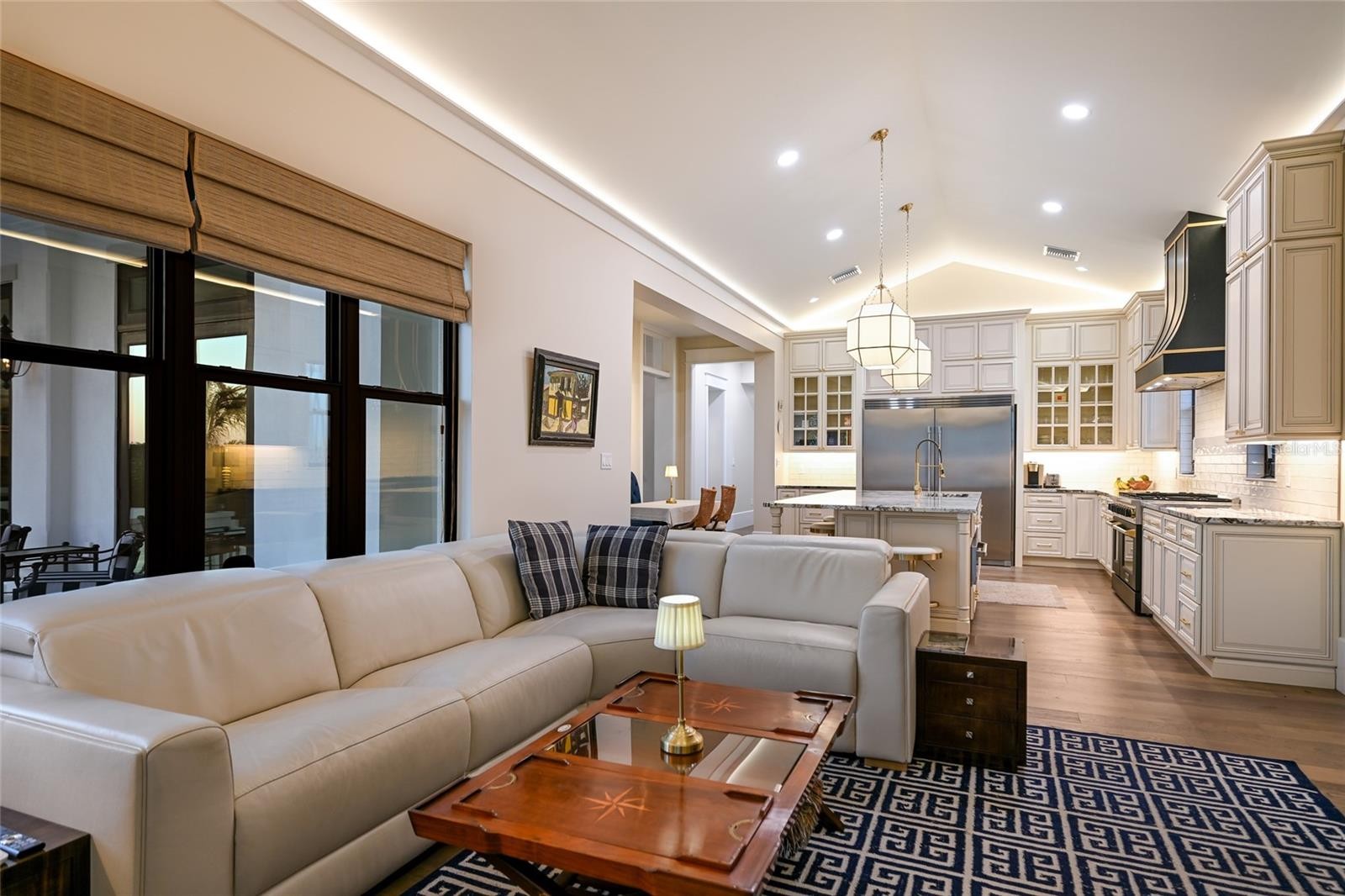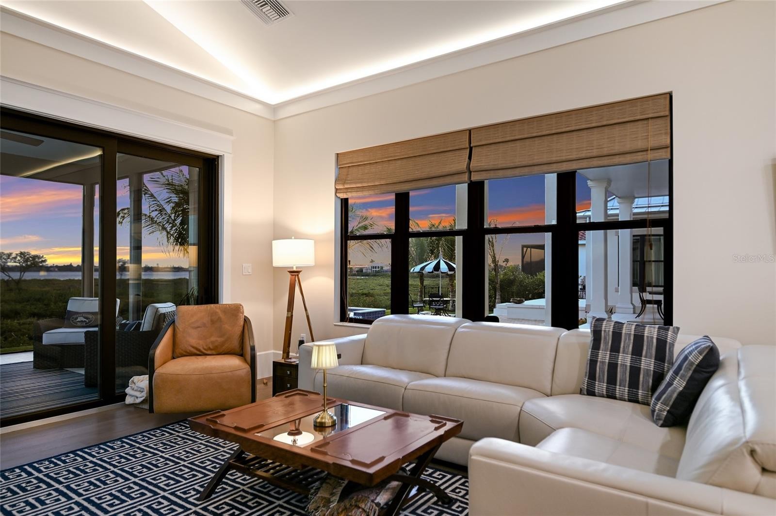 A TRULY EXCEPTIONAL NEW CUSTOM BUILT WATERFRONT ESTATE ON THE MANATEE RIVER WITHIN THE PRESTIGIOUS GATED ENCLAVE OF WATER'S EDGE AT SANCTUARY COVE! Uncompromising craftsmanship and sweeping panoramic water views create an extraordinary residence. Designed with inspiration from the Coastal Living Idea House by Cooper Johnson Smith Architects, this remarkable home offers a rare blend of refined craftsmanship, resort-style outdoor living, and direct boating access, creating an unparalleled Florida lifestyle defined by elegance, comfort, and effortless indoor-outdoor living. Perfectly positioned to capture sweeping water views from the front, rear, and side elevations, the home includes a 35-foot private boat slip with a 10,000 lb lift, complete with water and power. Built with lasting quality in mind, this home features a standing seam metal roof, half-round galvalume gutters, a closed attic system and spray foam insulation throughout the second floor. Interiors are finished with level 5 smooth drywall, engineered oak hardwood flooring throughout, and extensive custom millwork and casework. Architectural details include custom door surrounds, transoms in the living room, cove molding, and LED-accented coastal molding in the family room and kitchen. Ceiling heights impress with 12-foot ceilings along with vaulted ceilings in the kitchen, family room, porch, and primary suite. The chef’s kitchen is designed for both function and entertaining, featuring high end cabinetry, a custom chateau style range hood, granite countertops with warm neutral tones, a one-piece granite island with seating for five, banquette seating, an 8-burner gas double oven range, warming drawer, and under-cabinet and cove lighting. The kitchen flows seamlessly into the family room and screened porch, enhancing the home’s open-concept design. A well-appointed laundry and utility space offers quartzite countertops, a full pantry, laundry sink with cabinetry, hanging space, and additional linen storage. The primary suite is a private sanctuary with a vaulted ceiling, motorized blackout shades and a private terrace with full river views. The spa-inspired bath features marble finishes, double sinks, basketweave tile detailing, marble wainscoting, and a multi-head shower system with rainfall, waterfall, and body sprays, along with thermostatic controls and a heated towel rack. The suite also connects to a private courtyard with a fountain and outdoor shower. Outdoor living is equally impressive with a heated and cooling saltwater pool and spa. The exterior showcases a herringbone brick driveway, golf cart parking, and distinctive copper gas lanterns at the front entry and screened porch. Modern efficiency and technology include a whole-house natural gas generator, two tankless gas water heaters and smart LED lighting. This extraordinary residence offers a rare opportunity to own a meticulously designed waterfront home that seamlessly blends architectural excellence, luxury finishes, and premier boating access in one of the area’s most desirable coastal communities. This home offers convenient access to the 365 acre Emerson Point preserve, the beaches of Anna Maria Island, local restaurants and two nearby airports. Embrace the beauty of Florida waterfront living, where boating, sunset views and coastal relaxation are part of everyday life.