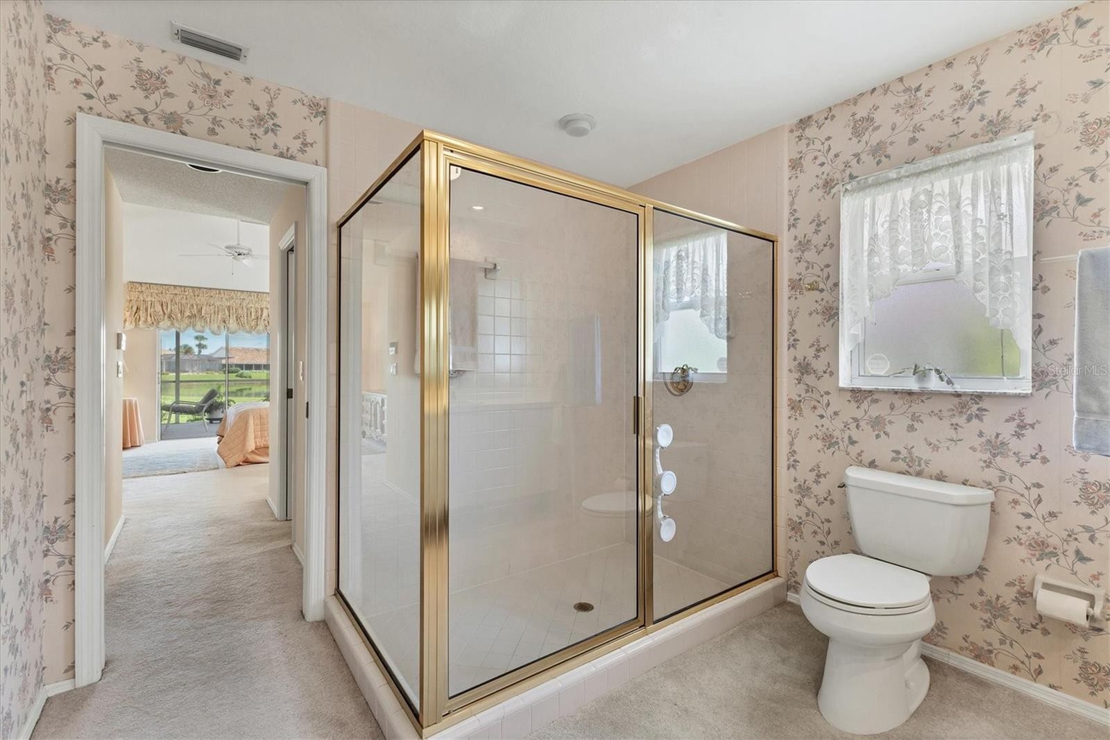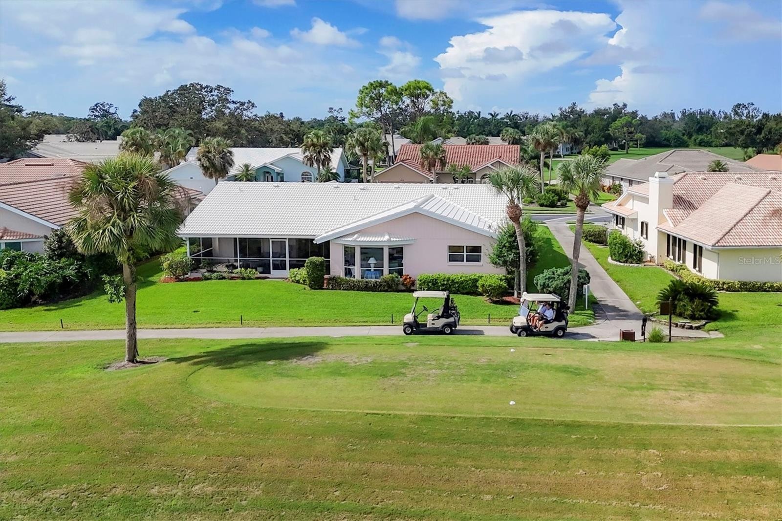 Located in Waterford, a gated, golfing, tennis community within minutes to Historical Downtown Venice, enticing beaches, Intracoastal Waterway and the Gulf of Mexico! This Golf course front, lake front 4 bedroom, 2 baths, 2 car garage home is located on a "premier" lot of the "Signature Green" of the Waterford golfing community, Turnberry/Gleneagles 9! (Waterford has 27 holes of golf) Built as a model home by Slabach Builders of Sarasota, it features multiple sliding glass doors and volume cathedral/vaulted ceilings bringing in lots of light and sunshine year around! Enter through tiled foyer, volume ceilings into this lovely split bedroom model home that shows "Pride" of ownership throughout by "original owner"! Master suite is large and accommodating with volume ceilings, walk-in closet, master bath with glassed walk-in shower and vanity Plus your own private entry/exit through sliding glass doors to lanai overlooking golf course and lake!! This split bedroom plan gives privacy for all and allows choices for uses for bedrooms. Bedroom 4 with stylish French doors is centrally located and now used as an office/music room but ready for your needs. From foyer entry, your living room is light and bright with volume ceilings and the sliding glass doors (doors pocket to wall) to lanai overlooking golf course and lake. Formal dining room with wet bar and cabinetry conveniently located adjacent to kitchen. Spacious kitchen with newer stainless appliances overlooks and joins the family room for all those nice family/friends gatherings. Breakfast bar compliments kitchen and family room, sliding glass doors provides entry/exit to lanai. Lania is spacious and open giving beautiful panoramic views of golf course and lake. Bedrooms 2 and 3 are privately located adjacent to family room near bath 2 for convenience. Inside laundry room is spacious with laundry sink, cabinets, etc., and out to 2 car garage. Garage with overhead garage door opener nicely accommodates 2 vehicles plus your other needs. Handsome paver bricks and lush landscaping compliments the driveway and walkway to front entry of your home. Waterford is a highly sought after community and does not have CDD fees. Golfing is not required but reasonable, new pickleball courts in the near future! Community has on site management, clubhouse is updated, upgraded, multiple use rooms, gym has "state of the art" equipment, bathrooms, library, Junior Olympic heated pool, spa, picnic area with grills, tables, paver brick, Har-Tru tennis courts, outdoor bathrooms and viewing deck!! New AC 2025, roof 2008, exterior paint 2025, water heater 2020, paver brick driveway, entry 2018 and more, list available!