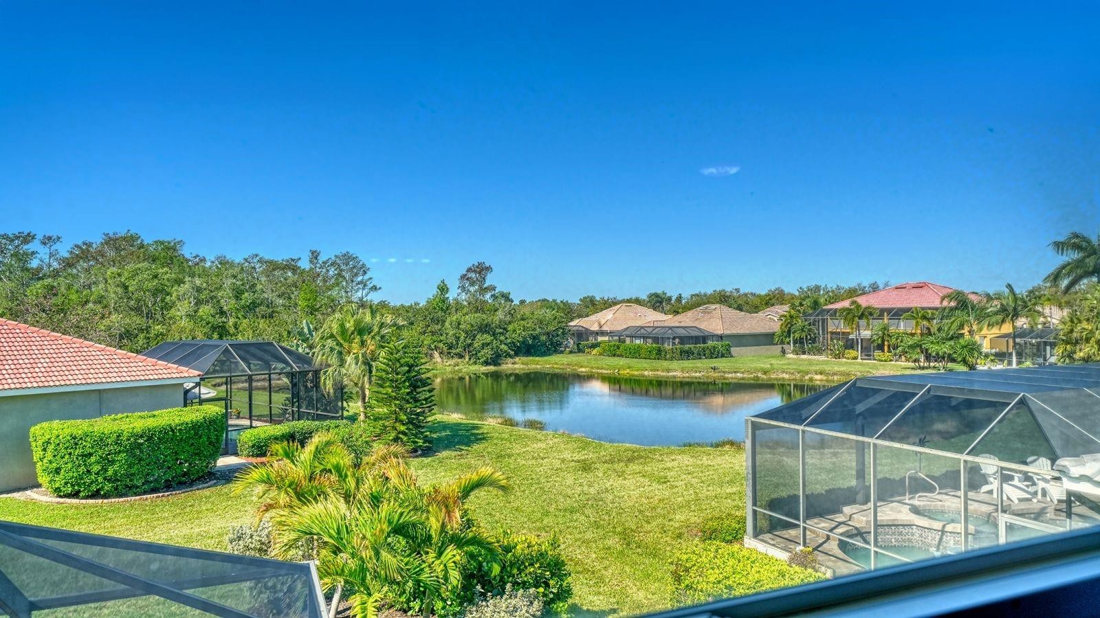 RARE OPPORTUNITY in Stoneybrook at Heritage Harbour. Homes with this lot size, layout, and level of updates are hard to find. Situated on an OVER 1/4-ACRE (.27 acre) CORNER LOT, this is a rare offering within the community. This spacious 3-bedroom, 2.5-bath home plus a den offers 2,526 sq ft of living space (3,027 total) and lives comfortably like a 4-bedroom. Step inside and you immediately feel the difference. Soaring ceilings, abundant natural light, and an open layout create both space and flow. The kitchen features granite countertops, custom slider drawers in the lower cabinets, newer appliances throughout, and connects seamlessly to the main living areas, making everyday living and entertaining effortless. Upstairs, a large open BONUS AREA adds flexibility for a game room, media space, office, playroom, or additional family room. The oversized primary suite serves as a true retreat with a walk-in closet and spa-style bathroom, including a garden tub, separate shower, dual sinks, pantry and water closet. The secondary bedrooms are thoughtfully positioned for privacy, and NEW CARPET has been installed in the stairwell and all bedrooms. Enjoy tranquil POND VIEWS from multiple vantage points throughout the home, including the main living area, as well as from the second-floor primary bedroom, bedroom 2, and the bonus room. The outdoor space is designed to be enjoyed year-round, featuring a HEATED SALTWATER POOL with exterior bathroom access, screened enclosure, and a generously sized yard enhanced by the premium corner lot positioning. For added convenience and safety, a complete set of HURRICANE SHUTTERS and the required CHILD SAFETY POOL FENCE are included and stored in the garage. For peace of mind, major updates have already been completed, including a TILE ROOF AND GUTTERS (2026), two HVAC systems (2022 and 2023), WATER HEATER (2023), POOL RESURFACING (2023), and an EPOXY-COATED GARAGE FLOOR (2026). Located in a gated, resort-style community with low HOA fees and an extensive lineup of amenities including a heated pool and spa, clubhouse, fitness center, tennis, pickleball, basketball, sand volleyball, bocce, shuffleboard, corn hole, dog park, playground, and additional recreational areas. Homes offering this combination of space, updates, lot size, views, and amenities rarely come to market. Schedule your showing at your earliest opportunity before this one is spoken for.