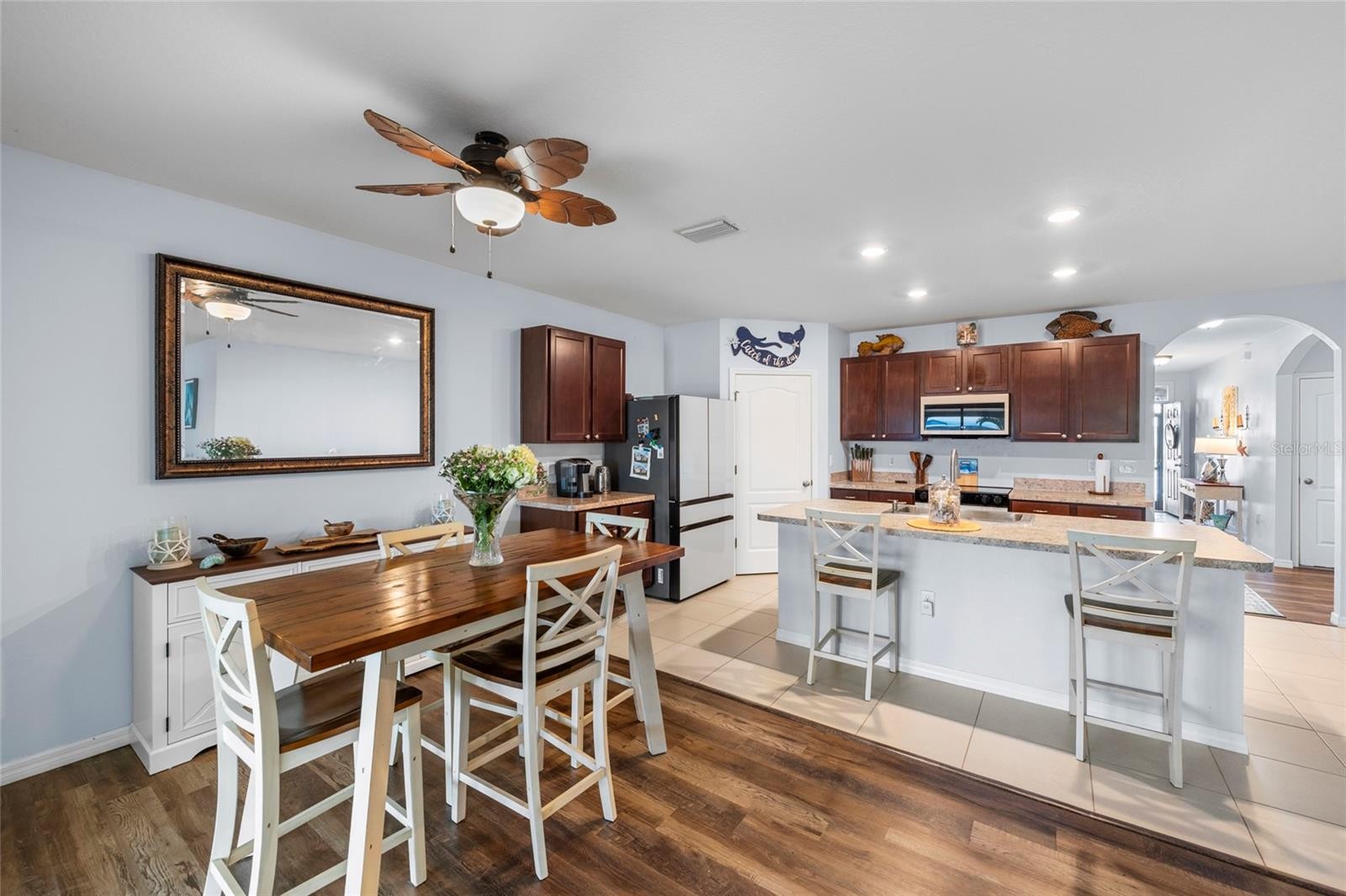Discover your dream home in the highly sought-after gated community of Del Tierra, where resort-style living meets everyday comfort. Residents enjoy an exceptional lifestyle with amenities including a sparkling community pool, fitness center, playground, soccer field, and scenic walking and biking trails. This beautifully designed four-bedroom, two-bathroom home offers a seamless blend of elegance and modern convenience. A welcoming foyer opens into a spacious, light-filled interior ideal for both relaxing and entertaining. The gourmet kitchen is a true showstopper, featuring brand-new smart appliances (installed within the last year), a large center island perfect for casual dining, and a generous walk-in pantry. The open-concept great room creates a warm, inviting atmosphere and flows effortlessly through sliding glass doors to the screened lanai. Here, you’ll find insulated roof panels, brick pavers, a private hot tub, and tranquil lake views...your own peaceful retreat to enjoy Florida’s sunshine year-round. The primary suite is a serene escape, complete with a spacious walk-in closet and a spa-inspired ensuite bathroom featuring dual vanities, a large walk-in shower, and two closets for added convenience. Three additional bedrooms and a well-appointed guest bathroom provide ample space for family, guests, or a home office. A separate laundry room enhances the home’s functionality. Even better, this home offers low HOA fees and no CDD, all in a prime location just 15 minutes from Sarasota, 30 minutes to the beach, and close to parks, dining, and easy access to I-75. This is more than a home, it’s a lifestyle. Is this home your perfect match? Schedule your private showing today and experience everything this exceptional property has to offer.