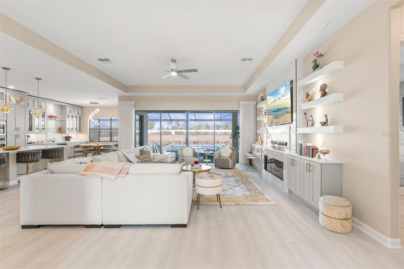 Welcome Home! Located in the highly desirable Lorraine Lakes at Lakewood Ranch, this fully remodeled 3-bedroom, 3-bath home with a den offers one of the community’s most sought-after layouts—the Sunset floor plan. The den provides flexibility and can easily function as a fourth bedroom, home office, or guest space. This home has been completely upgraded beyond the builder’s finishes. The custom kitchen was redesigned with an extended bar that opens into the dining area, creating a more functional and inviting layout for everyday living and entertaining. New luxury vinyl plank flooring runs throughout the home, and the living room features a striking accent wall with an electric fireplace that can be used for ambiance or heat. All three bathrooms have been fully renovated with modern finishes. A custom pool with a water feature was added after closing and anchors the spacious lanai, which offers multiple outdoor seating areas. The backyard overlooks a peaceful pond and is positioned close to the community gate for quick and convenient access. A hurricane screen protects the rear lanai, and the front door is hurricane-impact rated. Additional features include a full reverse osmosis water filtration system, a three-car garage with excellent storage space, and the rare benefit of being sold fully furnished—everything stays, allowing new owners to move right in with just their suitcases. Lorraine Lakes offers a full resort-style lifestyle with amenities that include multiple pools (including a resort pool), playgrounds, splash pads, tennis, pickleball and basketball courts, a clubhouse, café, full indoor/outdoor restaurant, state-of-the-art fitness center, arcade, multipurpose workout rooms, and a full-time events director who plans activities for residents year-round. Ideally located near Sarasota, downtown Lakewood Ranch, Waterside Place, Gulf Coast beaches, shopping, dining, and with easy access to Interstate 75 for travel to St. Petersburg and Tampa. Zoned for excellent schools and set within a gated community, this home offers both comfort and convenience in one of Lakewood Ranch’s most popular neighborhoods.