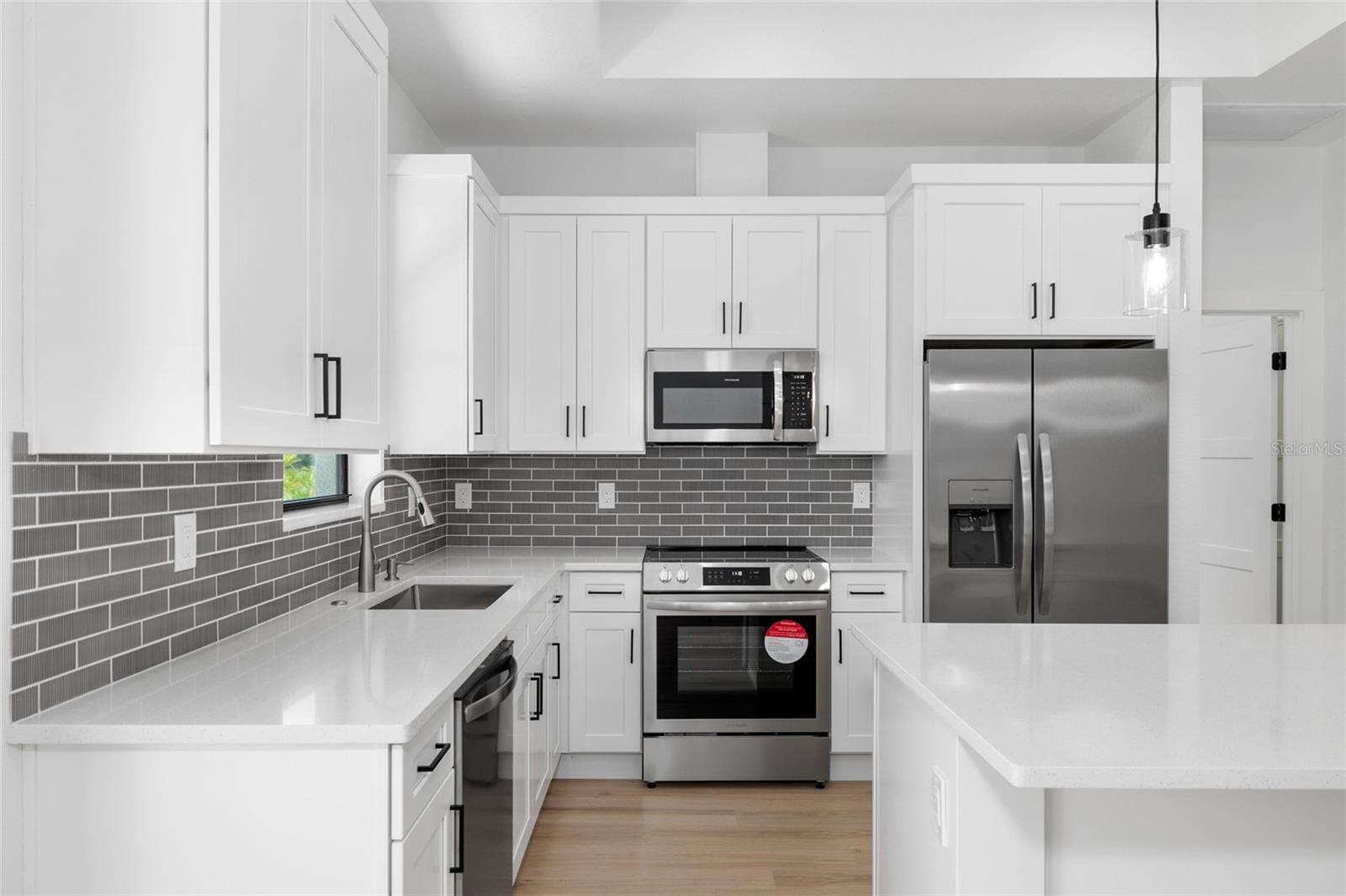 Seller offering $6,000 towards buyer's closing costs" This brand new home is designed for those who do not want a big house yet still have flexibility of 3 Bedroom ,2 bathroom ,each bedroom offers walk-in closet, with LVP flooring, this charming residence offers beautiful kitchen for you to enjoy casual dining at the quarts countertop breakfast bar ,featuring backsplash in the kitchen and stainless steel appliances, perfect starter home or for someone to retire in. Exterior features include gutters all around , impact windows and doors for your piece of mind during hurricane seasons . No HOA! No CDD! Convenient location and short drive to shopping centers, schools, restaurants, parks, I-75 and all necessities of Life !! Whether you're looking for a primary residence, seasonal home or investment property this North Port gem is move-in ready and waiting for you ! Schedule your showing Today !