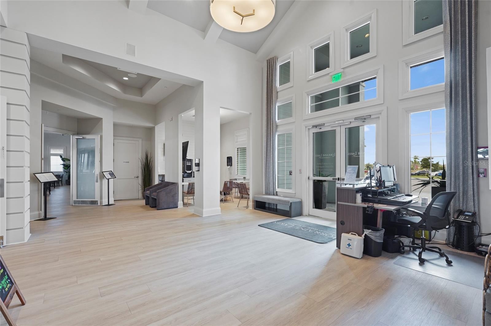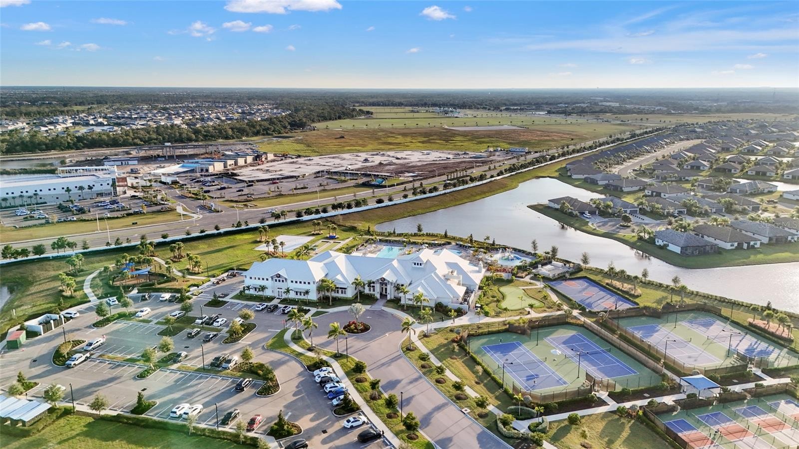 Welcome to this beautifully like-new, barely lived-in 4-bedroom, 2-bath home in the highly desirable Lorraine Lakes community. Offering 2,239 square feet of thoughtfully designed living space, this residence blends comfort, style, and an incredible long lake view that truly sets it apart. From the moment you arrive, the paver driveway and tile roof create impressive curb appeal. Inside, you’ll find a bright, open-concept layout perfect for everyday living and entertaining. The spacious living and dining areas flow seamlessly into the modern kitchen, which features new appliances, an upgraded dishwasher, gorgeous finishes throughout, and a charming café area just off the kitchen—ideal for casual dining or morning coffee with a view. The primary suite is a true retreat, highlighted by a luxurious super shower and granite countertops in the bathroom. Three additional bedrooms provide flexibility for family, guests, or a home office. Step outside to your expansive screened lanai and take in the peaceful, long water view and beautiful sunsets. Relax in your private pool and spa, where the hot tub spills beautifully into the pool—creating the ultimate Florida outdoor living experience. Fences are allowed, offering added versatility for pets or added privacy. Additional upgrades include a tankless water heater, painted 3-car garage with ample storage, and numerous thoughtful enhancements throughout the home. Located in the gated community of Lorraine Lakes, residents enjoy resort-style amenities including a state-of-the-art fitness center, tennis and pickleball courts, indoor basketball, walking trails, bocce ball courts, and a full-service restaurant and bar—delivering an unmatched lifestyle experience right within your neighborhood. This home perfectly captures the Florida lifestyle—luxurious, active, and centered around stunning water views. Select, newly acquired furnishings may be offered separately.