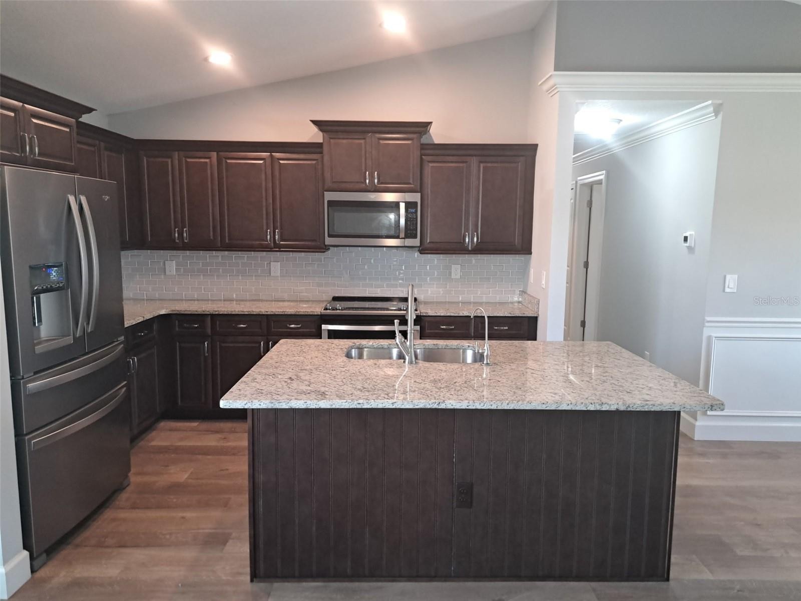 Stunning North Port Home freshly painted ready to lease NOW! This exceptional home is better than new, featuring fresh paint throughout and located in a convenient area of North Port, ideal for easy access to I-75. A cobblestone driveway leads you to the front entrance, where you’re greeted by a spectacular great room that seamlessly blends the kitchen and a dedicated dining area. The kitchen is outfitted with high-end stainless-steel appliances, including a French door refrigerator with an additional drawer for extra storage. The spacious kitchen island serves as a perfect serving bar, making it ideal for entertaining. A generous kitchen pantry provides ample storage. The special dining area is surrounded by windows, offering tranquil views of the private backyard. Throughout the home, crown molding adds a touch of elegance to each room. The floors are finished with modern waterproof vinyl planks, which are both stylish and easy to maintain. Enjoy the screened lanai that overlooks a spacious, partially fenced backyard, perfect for relaxing or entertaining outdoors. The master suite features a grand double-door entrance, extra-large walk-in closets, and a master bathroom with dual sinks and granite countertops. The laundry room is larger than most, offering plenty of space and a convenient laundry sink. Both the second and third bedrooms are generously sized, each with large closets for ample storage.