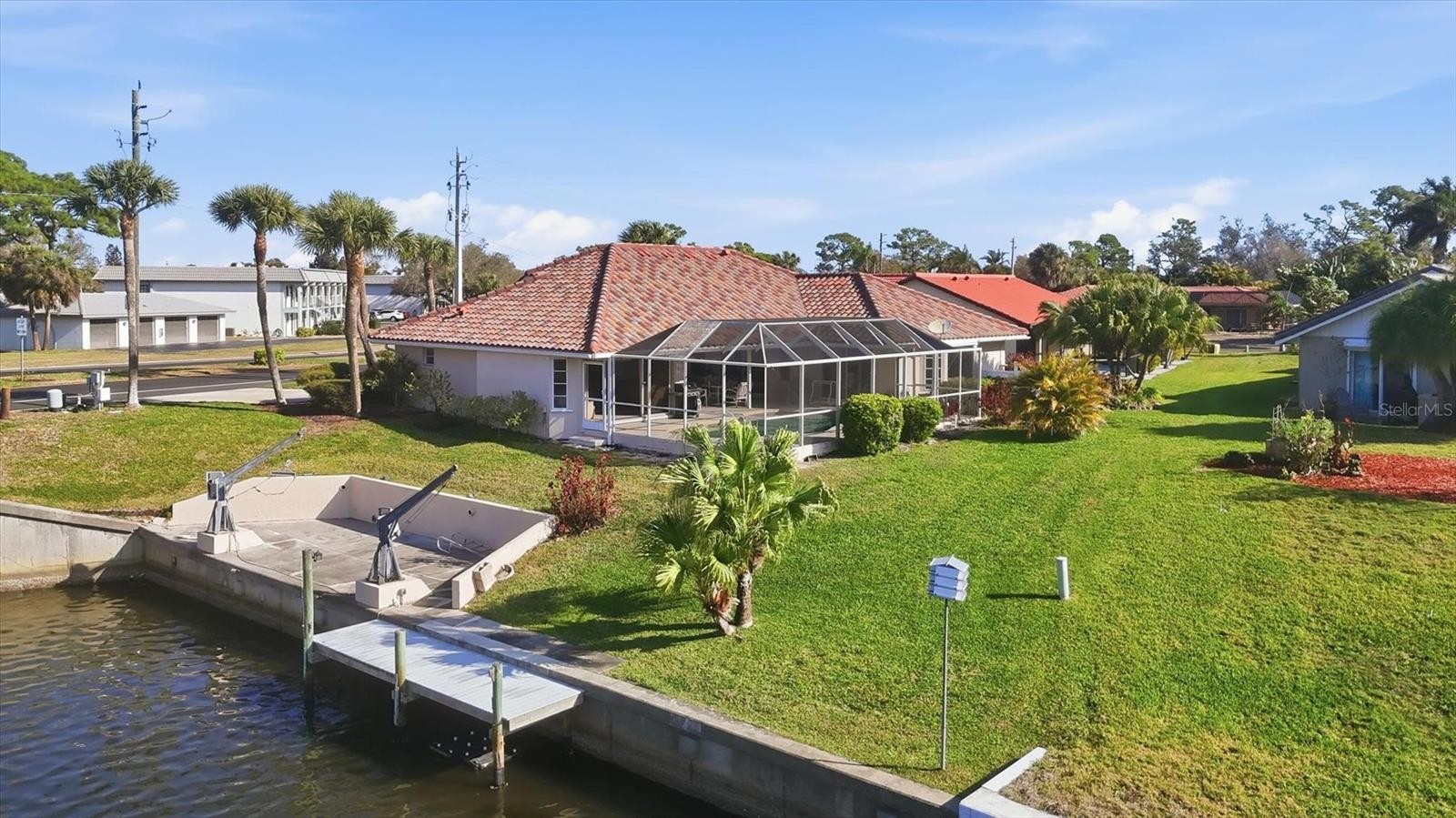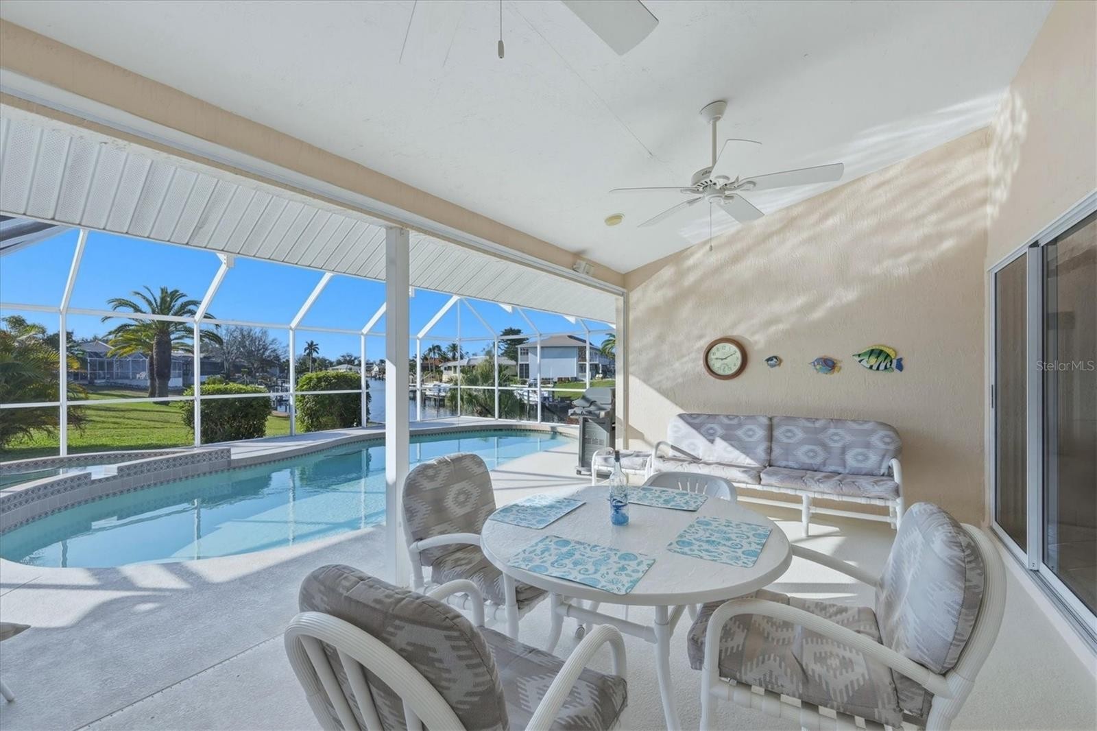 Welcome to this stunning turnkey furnished waterfront pool home located in the desirable Englewood Isles. This 3-bedroom, 2-bathroom residence offers a perfect blend of comfort and luxury with quick access to Lemon Bay and the Gulf, making it a boater's paradise. Step outside to the large lanai, where you'll find a sparkling pool with a spa, perfect for relaxing while enjoying breathtaking water views. The home features a composite dock, ideal for docking your boat, and a convenient outdoor shower. Inside, the split bedroom floor plan provides privacy and convenience, while the spacious master suite boasts dual closets and sliders leading directly to the lanai. The master bath includes a walk-in tile shower and dual sinks. The open kitchen is a chef’s dream, with a breakfast nook, closet pantry, and plenty of counter space for meal prep. The light-filled living areas feature pocket sliders that seamlessly connect the indoors to the outdoor living space. The third bedroom is generously sized, with its own set of sliders to the pool area, making it an ideal Florida room or guest retreat. Additional features include an inside laundry room, a screened front entry, and hurricane shutters for peace of mind. The 2022 roof ensures years of worry-free living. This home is just minutes from pristine beaches, fantastic restaurants, world-class fishing, golfing, and shopping. Don’t miss the opportunity to own this exceptional waterfront property!