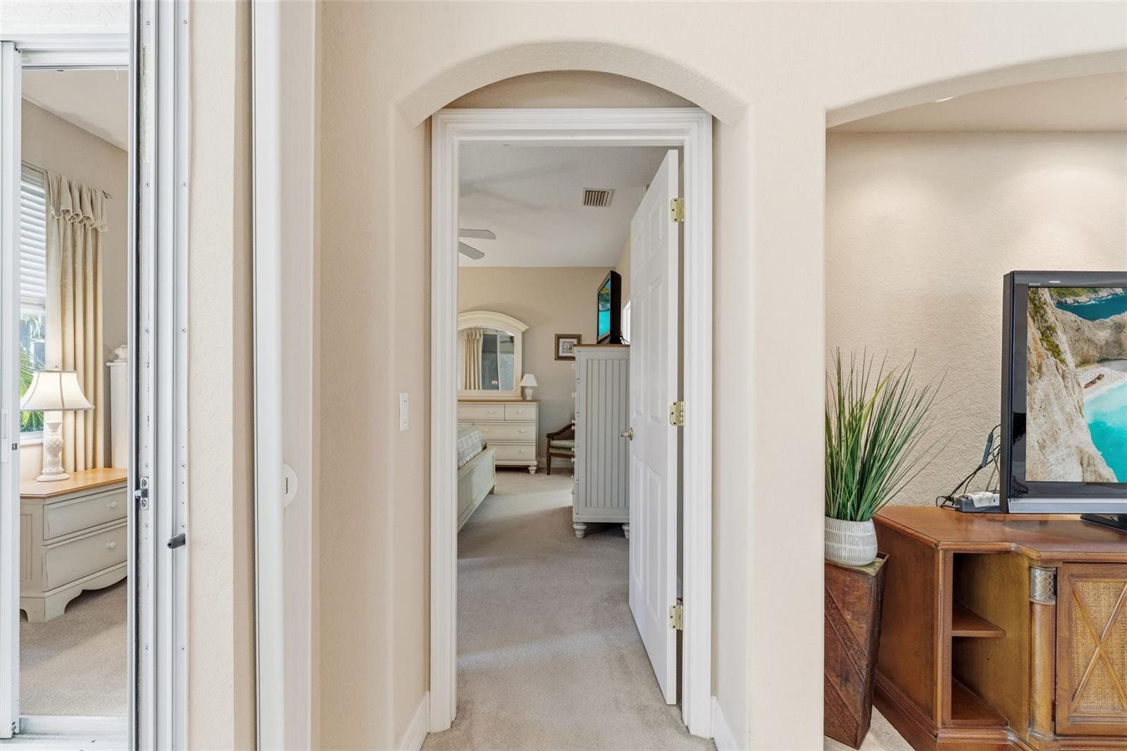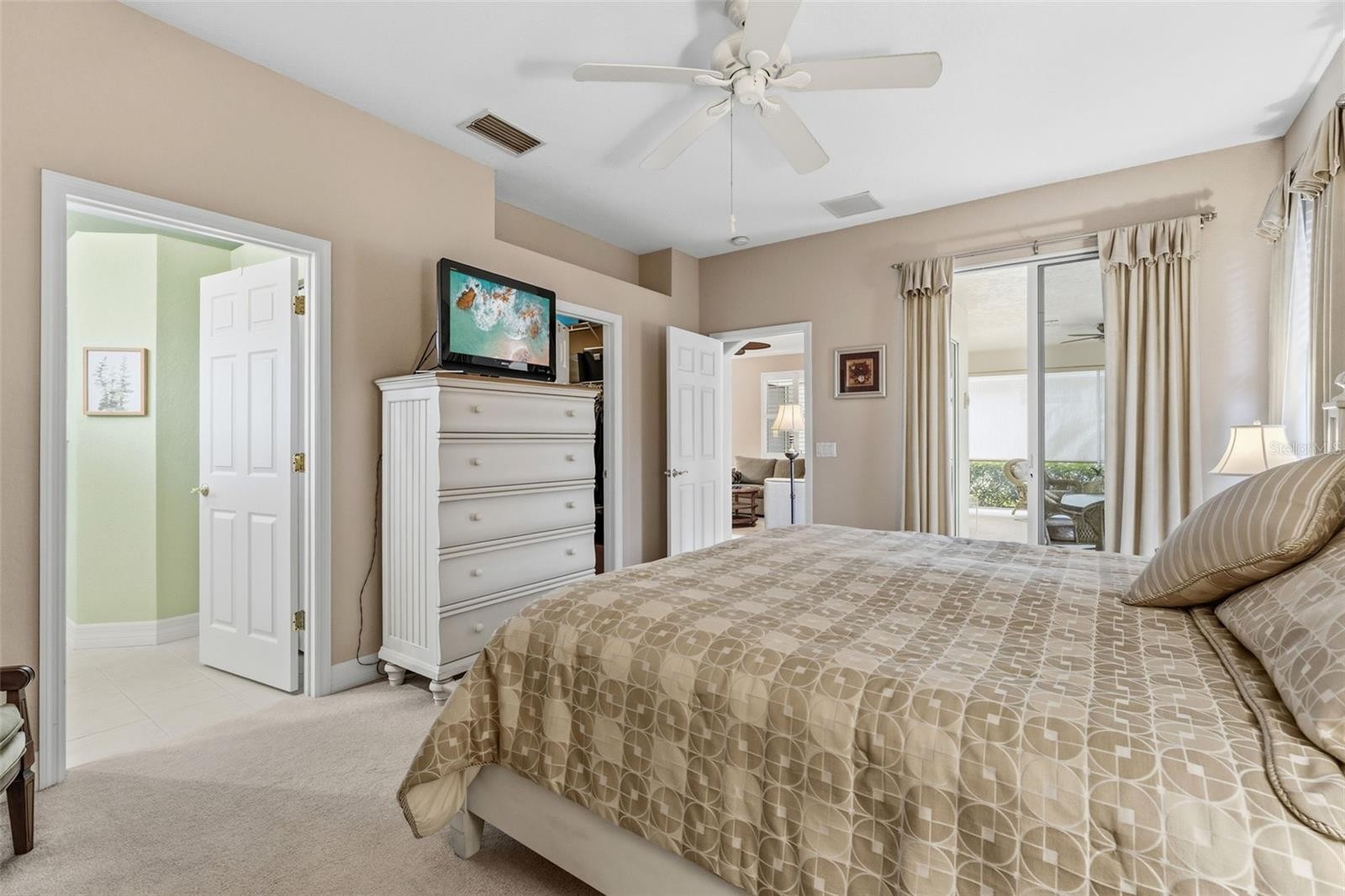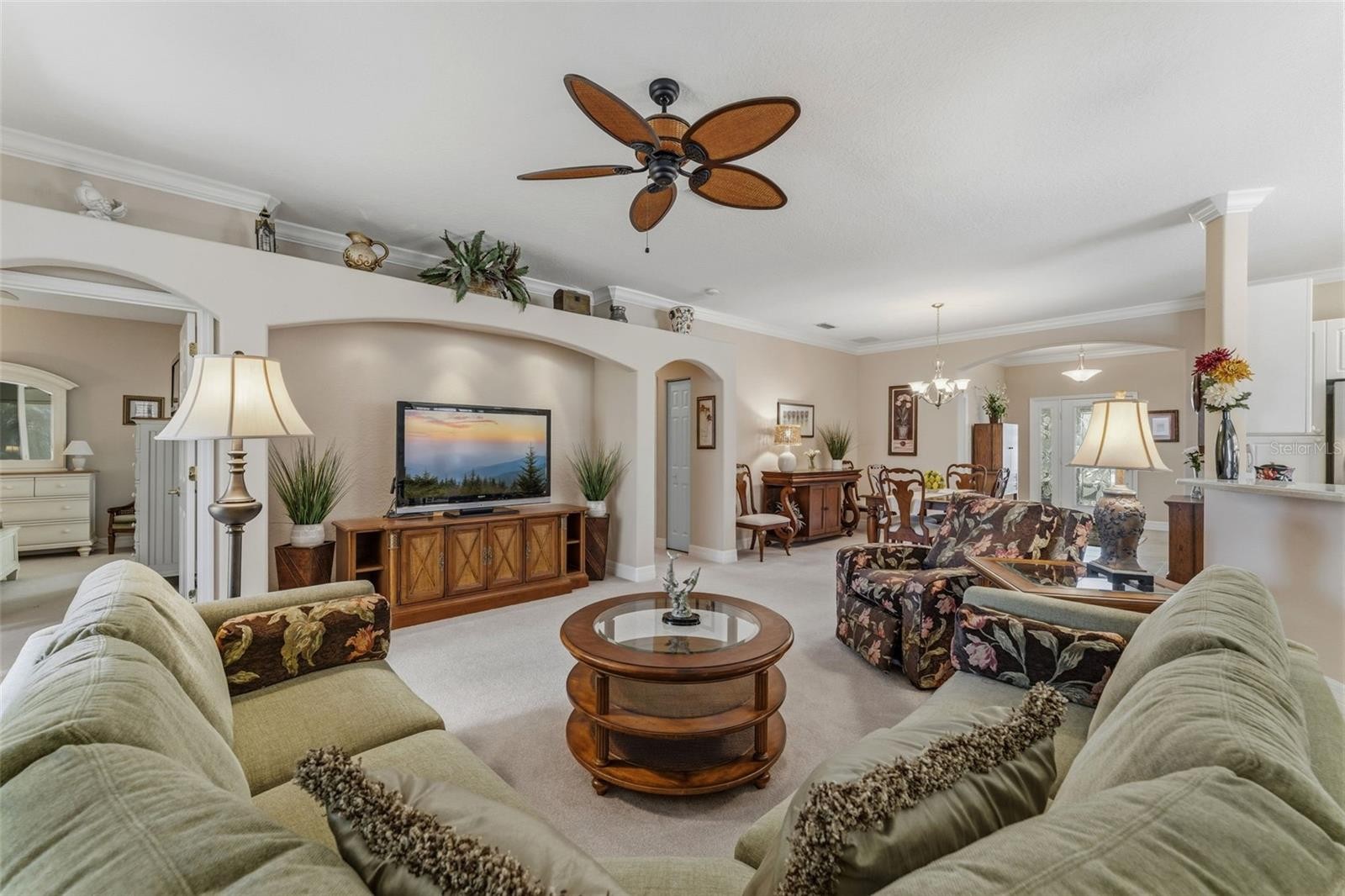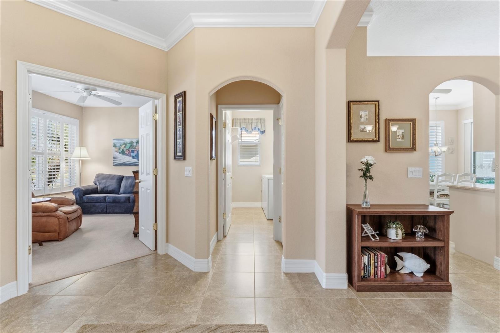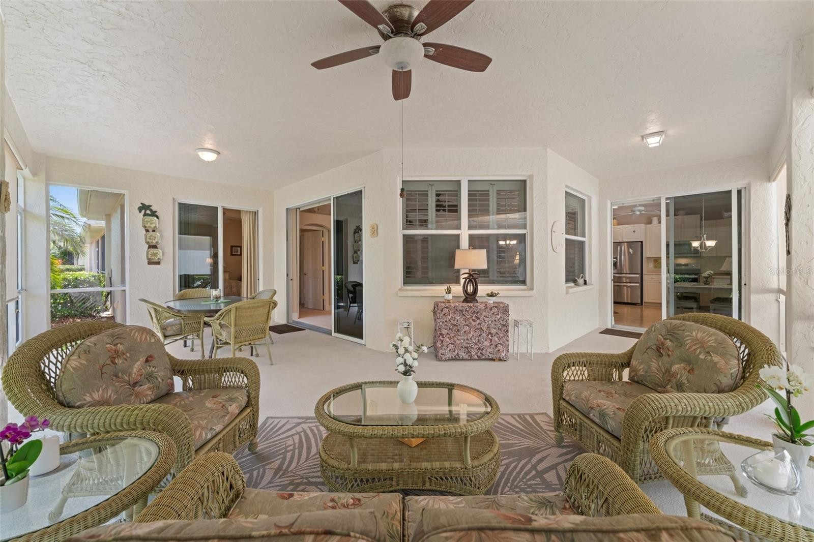 Enjoy the serenity of this private, gated community featuring beautifully landscaped grounds, sidewalks, tranquil pond fountains, park benches, and charming lantern-lit streets. Whether living here full-time or seasonal, this low maintenance gated community is the perfect oasis. No CDD fees, Flood Zone X, low HOA. This recently painted and meticulously maintained residence offers the perfect balance of comfort, elegance, and move-in-ready convenience. Inside, you’ll find 3 spacious bedrooms and 2 full baths, enhanced by impact glass windows, plantation shutters, and crown molding. The home can be available turnkey furnished. A welcoming covered front porch leads you into a generous foyer. The thoughtfully designed kitchen features abundant cabinetry with pull-out shelving, stainless appliances, and a bright dinette area ideal for casual dining. The open-concept living area flows seamlessly to the outdoors through triple sliding glass doors. Florida living is defined by exceptional outdoor spaces—where sunshine, gentle breezes, and year-round enjoyment create the perfect backdrop for both relaxation and entertaining. This spacious, expanded, screened-in wraparound patio/lanai is a must see. With access from slider doors from the living room, dinette, and primary bedroom, it truly serves as an extension of the home’s interior living space. Whether hosting weekend barbecues, savoring your morning coffee beneath the palms, or simply unwinding in your own private backyard oasis, this outdoor retreat embodies the very heart of the Florida lifestyle. The spacious primary suite offers private lanai access through double sliders, a walk-in closet, and a well-appointed en-suite bath complete with dual sinks and a Roman walk-in shower. A desirable split-bedroom floor plan ensures privacy for guests, with two additional bedrooms and a conveniently located guest full bath. Bedroom #3, with its French doors, is currently being used as a den. Exceptional curb appeal completes the package, featuring a tile roof, mature landscaping, and a welcoming front porch. This home truly combines refined style, thoughtful upgrades, and peaceful surroundings in one impressive offering. The community is located near Wellen Park, just 2 miles from the Legacy biking and walking trail and nature trails, close to multiple golf courses, tropical beaches, public boat launches, and spring training baseball facilities. Convenient access to medical facilities, schools and local amenities. This home truly offers the best of Florida living—schedule your showing today!
