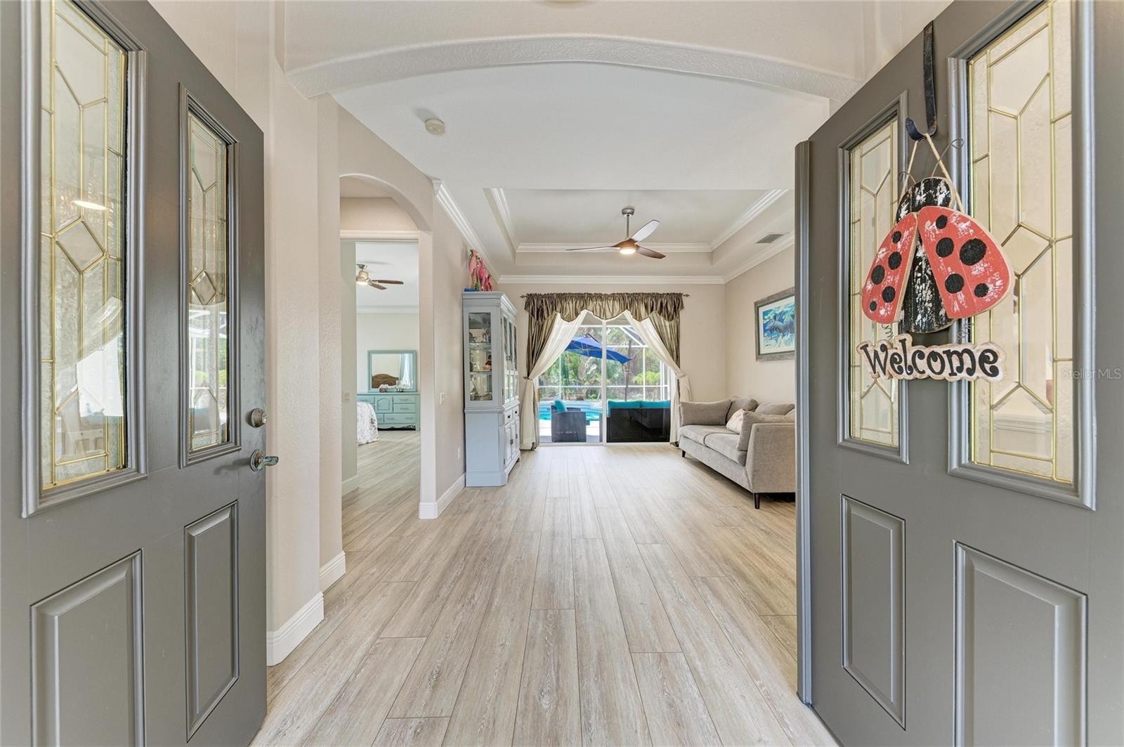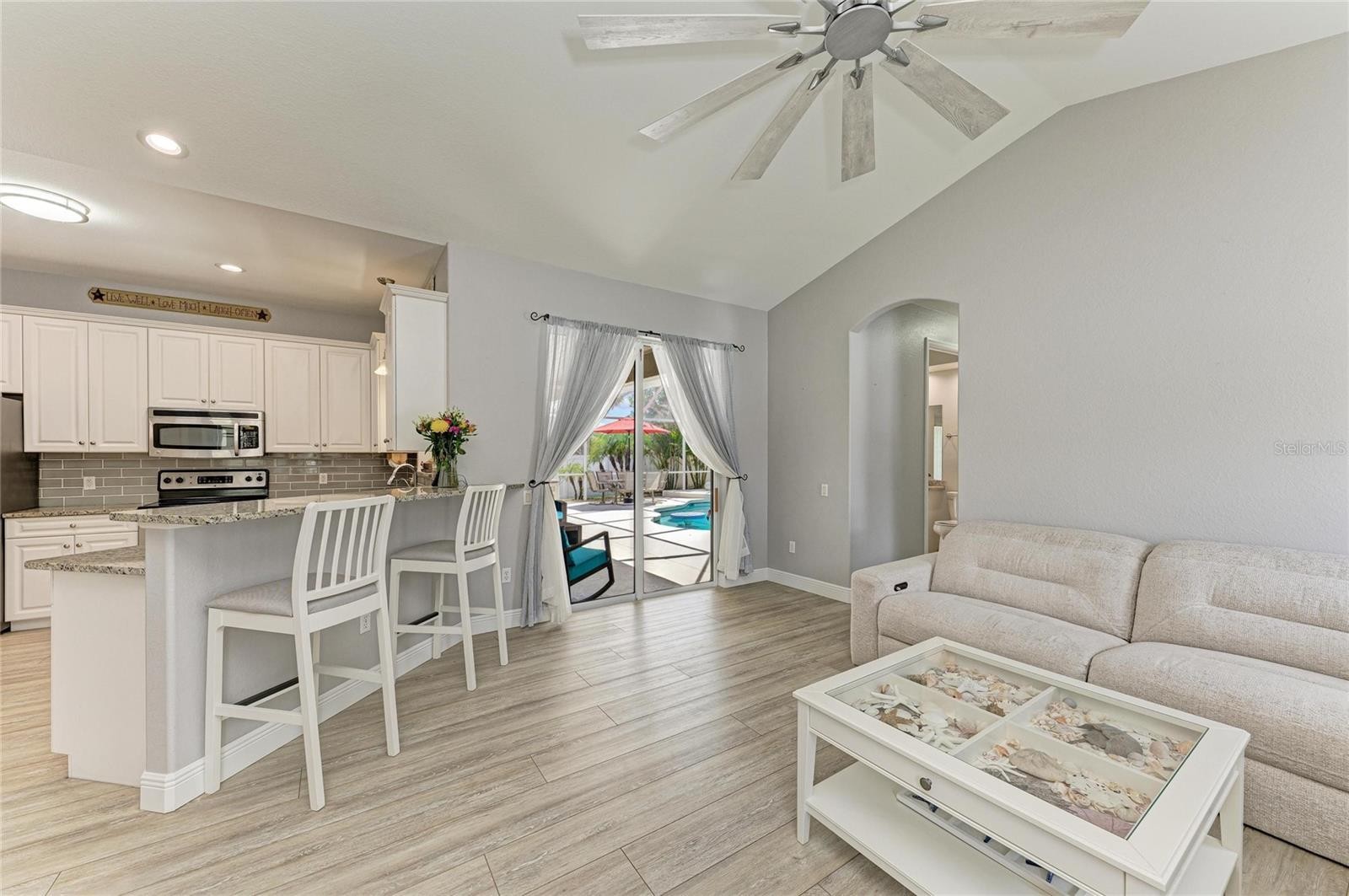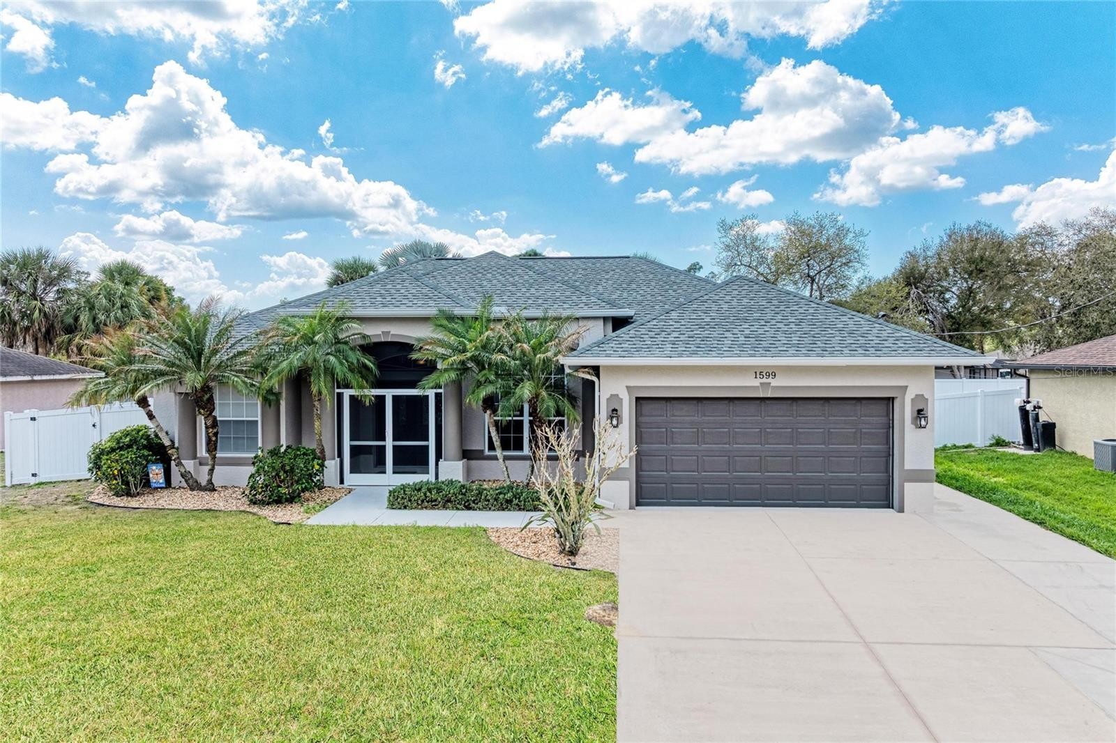 Completely upgraded and perfectly maintained by the original owner, this exceptional home offers quality, comfort, and true pride of ownership throughout. NO HOA FEES & NO FLOOD INSURANCE REQUIRED! CLICK THE VIRTUAL TOUR LINK TO VIEW THE VIDEO. An ADDITIONAL BONUS: the parcel directly behind the home is owned by the seller and is available for purchase under separate negotiated terms, offering a RARE opportunity to expand your property. There is plenty of room to expand — whether you envision a garden, additional outdoor living space, or a custom backyard oasis. Featuring new granite countertops, elegant crown molding throughout, and new vinyl flooring, the home has been freshly painted both inside and out for a modern, move-in-ready feel. All bedrooms include walk-in closets (note: build in shelving in Bedroom 2 does not convey). Major updates include a new roof (2023), rescreened pool cage (2023), and a new pool heater (2022). The home is also equipped with an under-sink reverse osmosis system, whole-house water softener, and gutters surrounding the property. Enjoy an extended driveway, beautiful landscaping, and added storm protection with hurricane shutters for all windows plus extra protection for the garage. The garage can be freshly painted (walls and floors) prior to closing upon buyers request. Step outside to your private backyard oasis featuring a stunning free form pool , accessible from all bedrooms—creating a unique indoor-outdoor living experience. The backyard offers exceptional privacy, perfect for relaxing or entertaining. Conveniently located near I-75, US-41, and State Road 776, with easy access to shopping, dining, and everyday conveniences—and just a short 25-minute drive to beautiful Gulf beaches. Schedule your private showing today—this one truly stands out!
