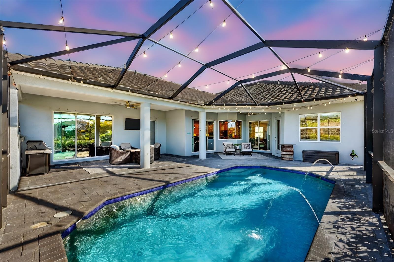Landscaping updated on 1/24/26 in the back yard for expanded views and a seamless transition from lanai to yard space. Step into effortless luxury and comfort in this magazine-worthy 4-bedroom, 3-bathroom home with office and bonus room nestled in the gated Reserve at Twin Rivers in Parrish, Florida. Designed for both relaxing and entertaining, this residence radiates elegant warmth throughout its 3,275 square feet of light-filled spaces—highlighted by luxury vinyl plank flooring, refined crown molding, and impressive tray ceilings. The inviting open layout features a formal dining room, living room with custom shiplap wall and electric fireplace, and abundant natural light flowing through double glass entry doors. The chef’s kitchen impresses with gorgeous quartz countertops, an oversized island with bar seating, built-in oven and microwave, an induction cooktop, an expansive pantry, and a striking butler’s pantry with wine fridge. Soft-close cabinetry, ample work space, and a laundry room with a custom drop zone deliver stylish function for everyday living. Enjoy seamless transitions to outdoor living, with triple sliders from the family room and bonus/media room, along with a door from the master suite, open to the screened lanai and heated saltwater pool—an ideal retreat for entertaining or unwinding. The large, fully fenced yard, elegant brick paver driveway, and handsome tile roof complete the exterior’s polished look. The private primary suite spans the back of the home, featuring serene pool views, private lanai entry, two spacious walk-in closets with custom designs, and a spa-inspired ensuite bath. The thoughtful split floor plan offers three additional bedrooms and flexible spaces for guests, work, or hobbies, plus a dedicated full pool bath with direct access to the lanai for added convenience. With a 3-car garage, abundant storage, and timeless designer finishes throughout, this home sets the standard for modern Florida living. Located near premier schools, shopping, dining, and commuter routes, it’s the perfect blend of luxury, comfort, and style in one of Parrish’s most coveted gated communities.