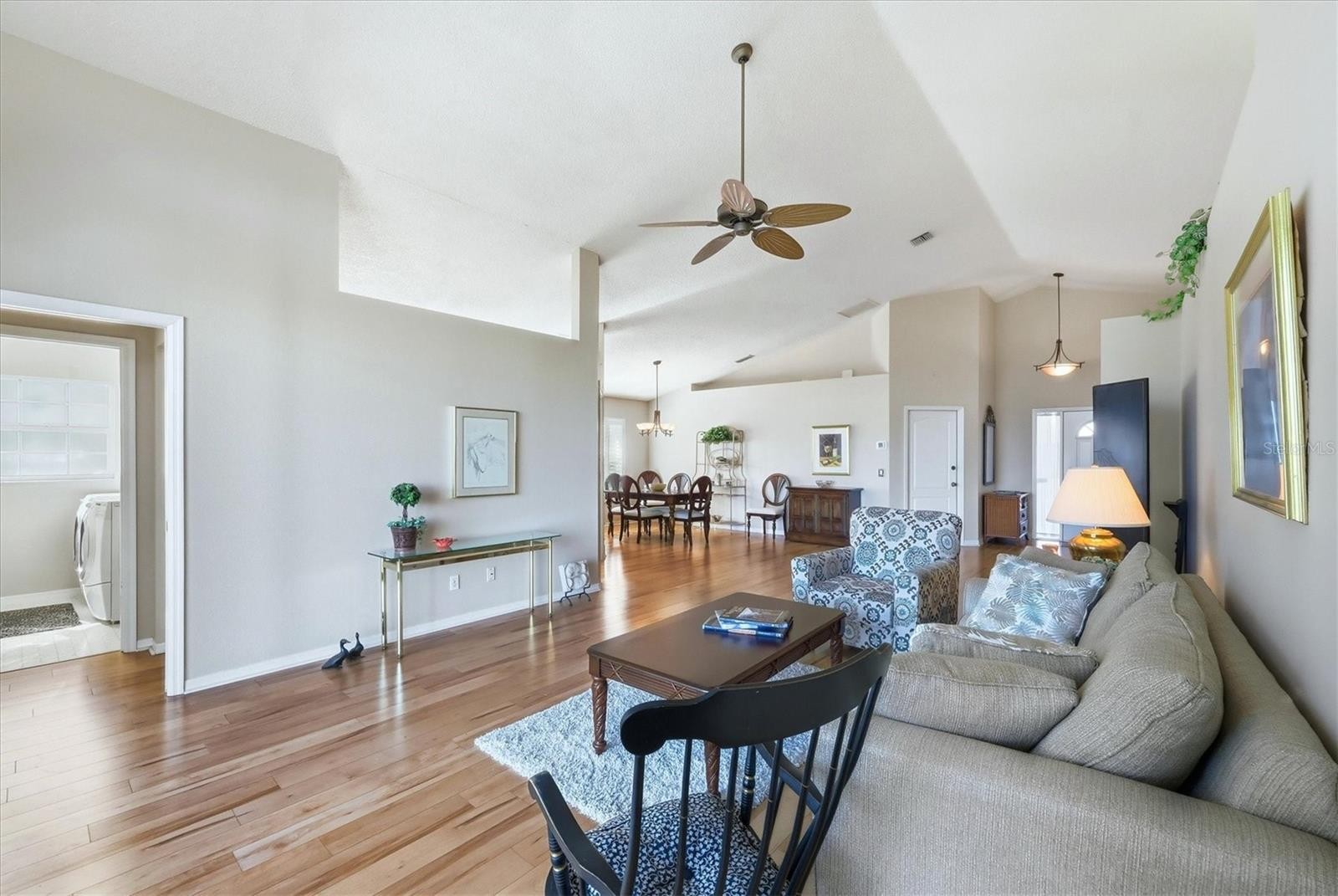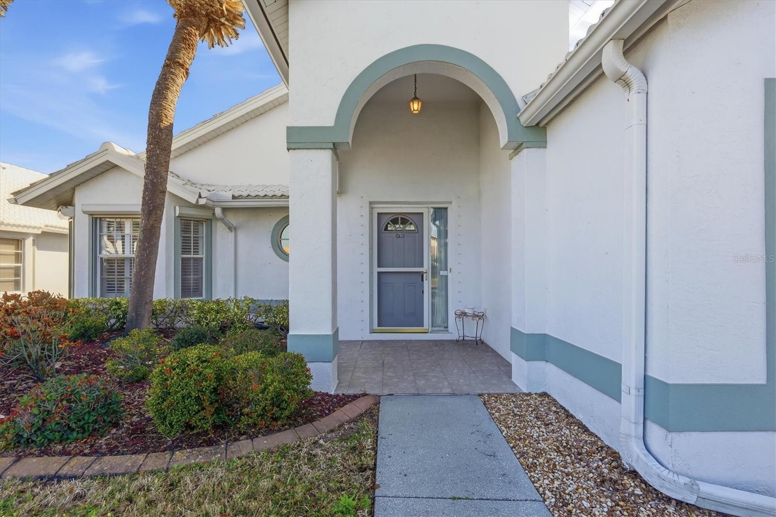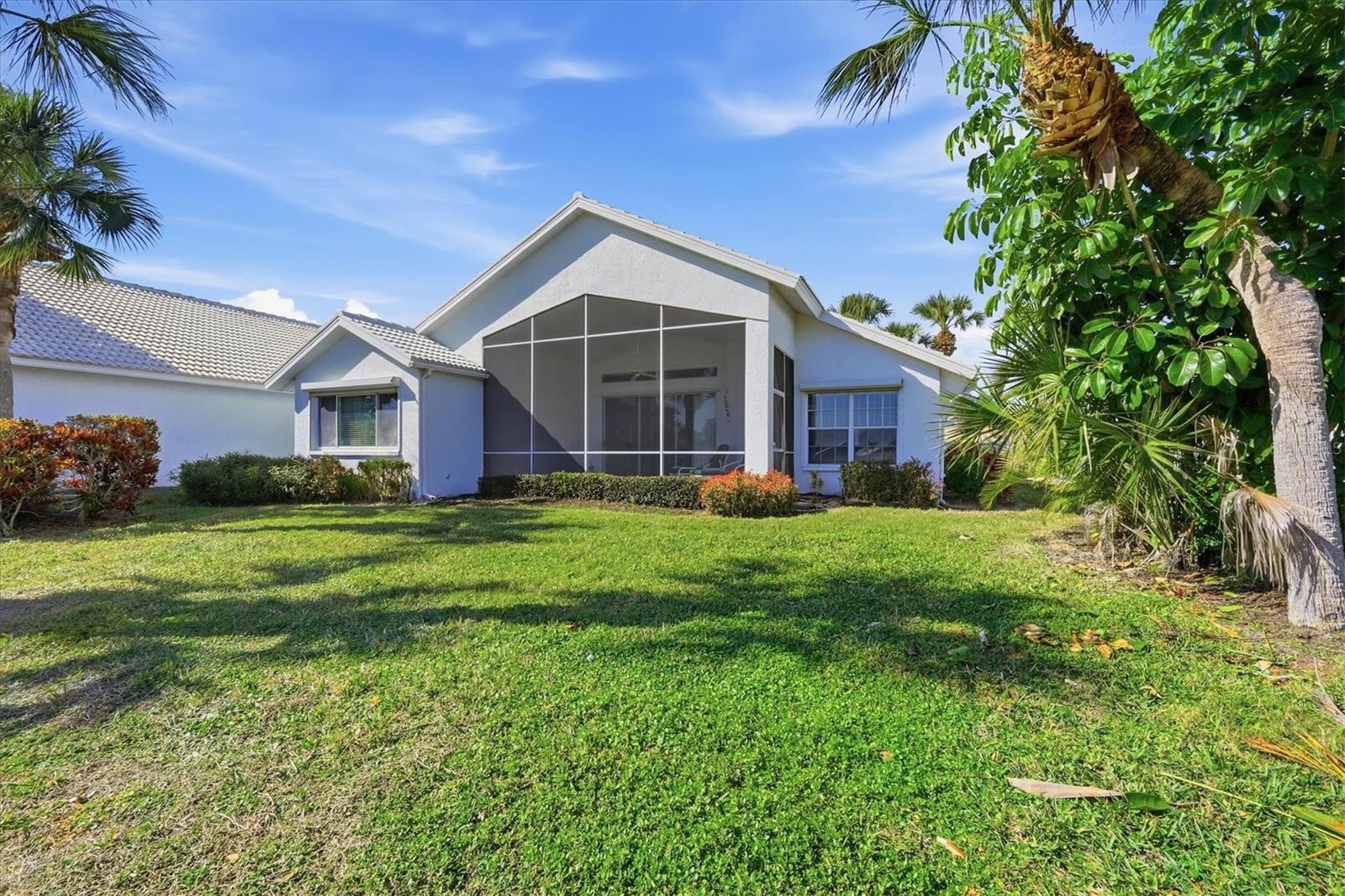 One or more photo(s) has been virtually staged. Lovely 2 bedrooms, 2 baths, 2 car garage single family villa home in Waterford. Open and light with cathedral ceilings in greatroom/living room and out to screened lanai with newer paver brick floors and screen. Home is a split bedroom floor plan with master bedroom, walk in closet, large ensuite bathroom, large vanity, corner shower, water closet all getting beautiful sunshine light from overhead skylight! Bedroom 2 is open and light with views of golf course, but still gives privacy. Bath 2 serves nicely just steps away in hallway that closes off for privacy and adjacent to laundry room. Dining room is nicely accommodating just out of kitchen area/great room. Kitchen is nicely appointed with multiple cabinets, granite counters along with breakfast room and views or landscaping and street! A 2 car garage serves this home well with added cabinetry, automatic garage door opener out to concrete driveway. Enjoy the comfort of Protective hurricane panels for inclimate weather! Located in Waterford, a highly sought after community within minutes to Historical Downtown Venice and beaches on the Gulf of Mexico and Intracoastal Waterway! Waterford is complimented with updated community clubhouse, junior Olympic sized heated pool, spa, Hartru Tennis courts with viewing deck, grills and picnic area, new pickle ball court/basketball, state of the arts gym inside clubhouse with newer kitchen and meeting rooms, library and on-site management. Golf is separate, not included but reasonable There are no CDD fees here!!