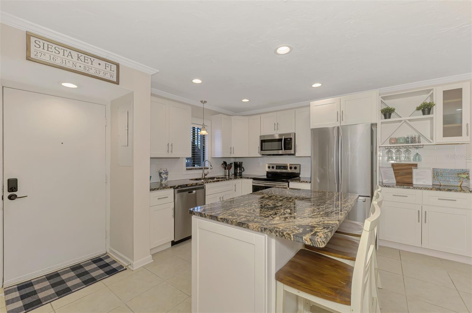 AMAZING OPPOTUNITY TO OWN THIS COMPLETED REMODELED 1 BEDROOM/1 BATH CONDO IN CASTEL DEL MARE WHICH HAS BEEN NICKNAMED THE "HIDDEN JEWEL ON THE BAY" BECAUSE OF ITS DESIRABLE LOCATION WHICH SERVES AS THE GATEWAY TO SIESTA KEY. LOCATED JUSTH SOUTH OF THE DRAWBRIDGE TO SIESTA KEY, YOU CAN WALK, BIKE OR DRIVE RIGHT OVER THE BRIGE AND BE AT THE AMAZING BEACHES, RESTAURANTS, AND SHOPPING VENUES. THIS STUNNING CONDO HAS BEEN COMPLETELY UPDATED. THE KITCHEN BOASTS AN OPEN-CONCEPT WITH GRANITE COUNTERTOPS, PENDANT AND OVER CABINET LIGHTING. A LARGE ISLAND OPENS INTO A SPACIOUS LIVING AREA WHICH FEATURES CROWN MOLDING AND WAINSCOTING. THE LANAI HAS BEEN FINISHED TO CREATE EXTRA LIVING SPACE WITH A HUGE WAL-IN CLOSET. THE MASTER BEDROOM HAS A BUILT-IN CLOSET AND A FULL WALK-IN CLOSET WITH BUILT-IN CABINET AND COUNTERTOP ALLOWING PLENTY OF EXTRA STORAGE. THE BATHROOM HAS BEEN COMPLETELY REMODELED WITH BEAUTIFUL TILED WALK-IN SHOWER. THE UNIT HAS A TANKLESS WATER HEATER (2023) AND A NEW AIR CONDITIONING SYSTEM (2021). THIS CONDO IS TURN-KEY FURNISHED SO IT A GREAT PLACE TO CALL IT A VACATION GET-A-WAY OR HOME!