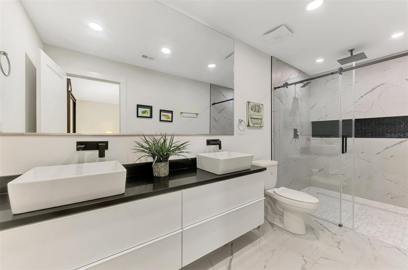 Welcome to your private slice of paradise in highly sought after MISSION VALLEY ESTATES in Nokomis, Florida! With all your big ticket items taken care of, this is a MUST SEE! This beautifully updated 3-bedroom, 2-bath concrete block home sits on over an acre in this desirable non-HOA, no CDD neighborhood, offering space, flexibility, and modern upgrades throughout. A circular driveway provides a welcoming entrance and ample parking. Inside, the home features ceramic tile flooring throughout, newer cabinetry, quartz countertops, stainless steel appliances, and modern recessed lighting for a clean, contemporary feel. The inviting family room overlooks the pool through a sliding glass door and showcases a stunning stone wood-burning fireplace—perfect for relaxing evenings. The primary suite offers a luxurious retreat with a beautifully updated bathroom featuring marble tile, double vessel sinks and a walk-in shower with floor-to-ceiling tiled walls. Bedrooms two and three are on the other side of the home and are connected by a convenient Jack-and-Jill bathroom, ideal for family or guests. Plantation shutters enhance most windows, while HURRICANE IMPACT WINDOWS throughout provide added protection and peace of mind. Step outside to enjoy the expansive property and screened lanai, recently rescreened and painted. A standout feature is the detached pool house with an impact glass slider and mini-split air conditioner—perfect for a man cave, home office, yoga studio, or guest space with endless possibilities. There is also a 10 X 20 storage shed for all your yard tools! Ideally located near the Legacy Walking Trail and I-75, you’ll enjoy convenient access to beaches, dining, shopping, and more. Major Updates Include: 2022: New Roof, New septic tank, Hot water heater, Lanai rescreened and painted. 2023: New AC and ductwork, New garage door, House rewired, Hurricane Slider installed on Pool House. 2024: Connected to county water. With over an acre of land, no HOA restrictions, and extensive updates already completed, this property is a rare opportunity to enjoy Florida living with room to grow.
