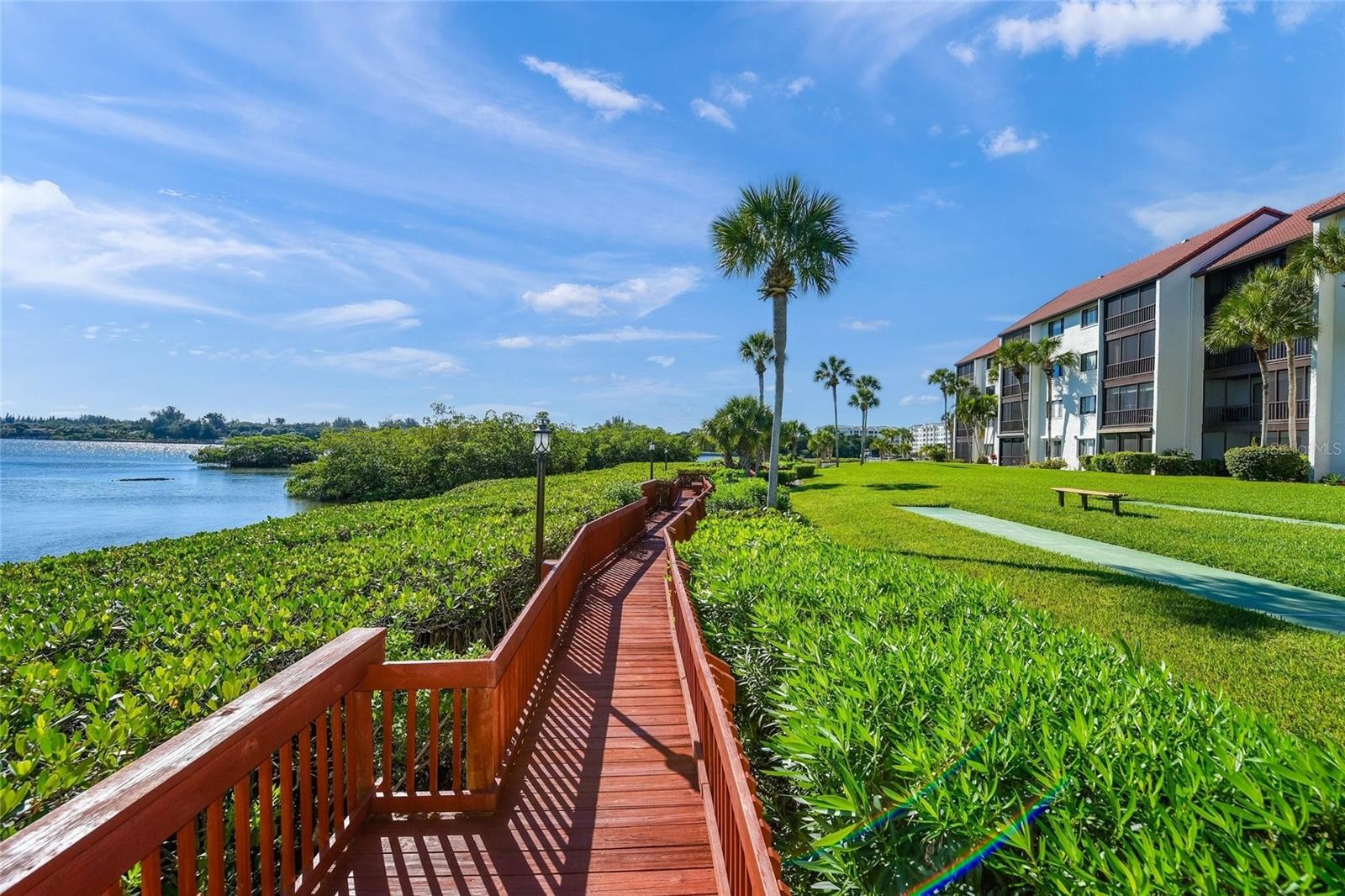 Fantastic opportunity to own a beautifully updated 1BR/1BA first-floor unit in highly desirable Castel Del Mare! This light and bright residence features a tiled entry and kitchen, with attractive laminate flooring throughout the remaining living areas. The spacious kitchen is equipped with white cabinetry, granite countertops, and stainless steel appliances—perfect for both everyday living and entertaining. The generously sized primary suite offers a private, updated en-suite bath complete with granite counters and a walk-in shower. What truly sets this unit apart is the in-unit washer and dryer—a rare convenience—along with an expansive double, oversized lanai just steps from the pool, creating the perfect space to relax and enjoy the Florida lifestyle. Castel Del Mare is a sought-after waterfront community ideally located just steps from the South Bridge to Siesta Key—offering the best of both worlds with easy access to the beach while enjoying the convenience of mainland living.