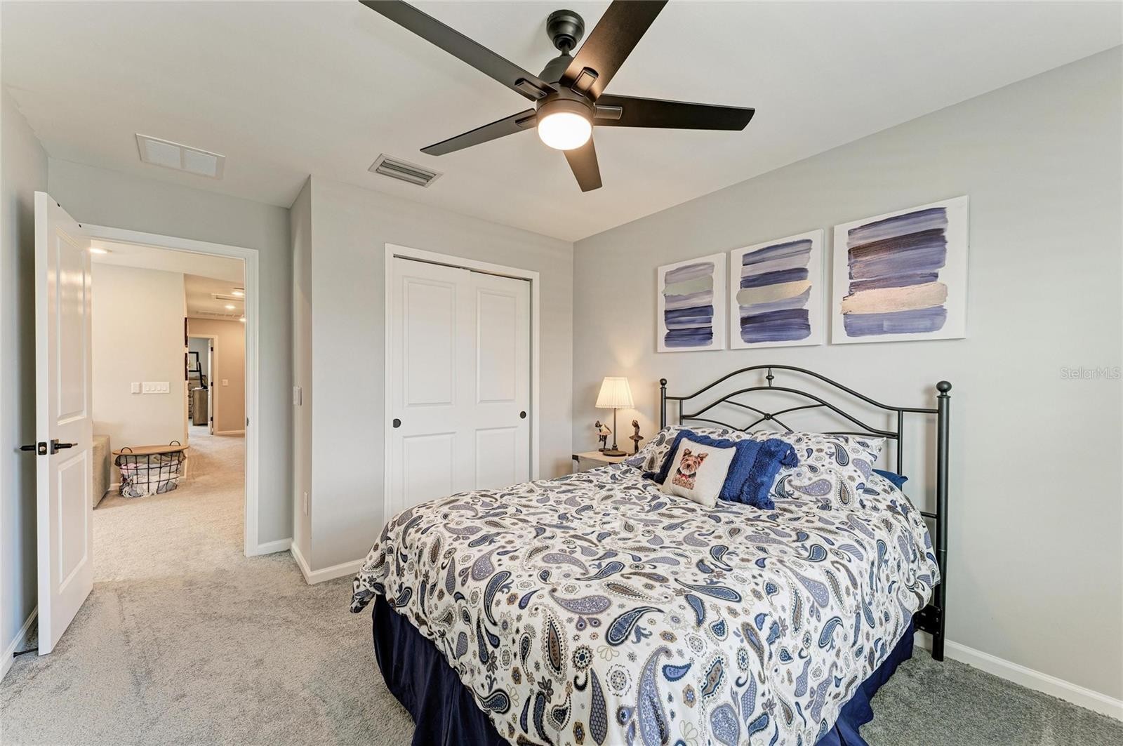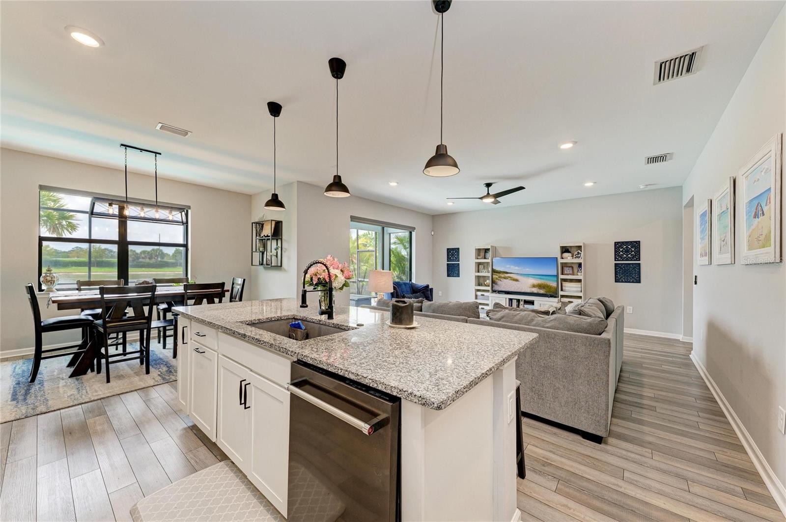 Enjoy the ultimate Florida lifestyle in this stunning 2022-built 5-bedroom pool home in Sapphire Point at Lakewood Ranch, offering maintenance-free living with 2,638 sq. ft. of open-concept living and tranquil lake views. Step inside to a bright and spacious floor plan designed for comfortable living and effortless entertaining. The gourmet kitchen is the heart of the home, featuring KitchenAid black stainless steel appliances, granite countertops, soft-close cabinetry, a large pantry, and an oversized island perfect for gathering with family and friends. The spacious great room opens seamlessly to the screened paver lanai with private pool and spa, creating the indoor-outdoor Florida lifestyle buyers love. Step out and relax poolside on your lanai while overlooking the peaceful lake, the perfect setting for entertaining or enjoying those beautiful Florida sunsets. The first floor features a second primary suite with en-suite bath, ideal for guests, a home office, or extended family seeking privacy. Upstairs, the main primary suite overlooks the lake and offers a spacious walk-in closet and spa-like bath with soaking tub and oversized walk-in shower. Three additional guest bedrooms, another full bath, a versatile loft/bonus room, and second-floor laundry provide flexible living space for today’s lifestyle. Recent improvements include custom built-ins in the primary closet and loft, pantry organization, laundry room cabinetry, plantation shutters, automatic blinds in the kitchen and sliders, upgraded lighting throughout, privacy landscaping with Areca palms around the pool, exterior security sensors with monitored smoke detectors, a 240V EV outlet in the garage, and an epoxy garage floor. Located in the highly desirable Sapphire Point community, residents enjoy LOW HOA fees, maintenance-free living, and resort-style amenities including a clubhouse, community pool, fitness center, playground, dog park, basketball court, and scenic walking trails. Lakewood Ranch has been recognized as the nation’s top-selling multigenerational community for the past seven years, offering an unmatched lifestyle for residents of all ages. Conveniently located near A-rated schools, SRQ and Tampa International Airports, Premier Sports Campus, and just a short drive to UTC shopping and dining, downtown Sarasota and Bradenton, and the beautiful white-sand Gulf Coast beaches. Why wait to build when this home is only 4yrs. old and completely move-in ready? Capture your piece of Florida Paradise in one of the nation’s most desirable communities!