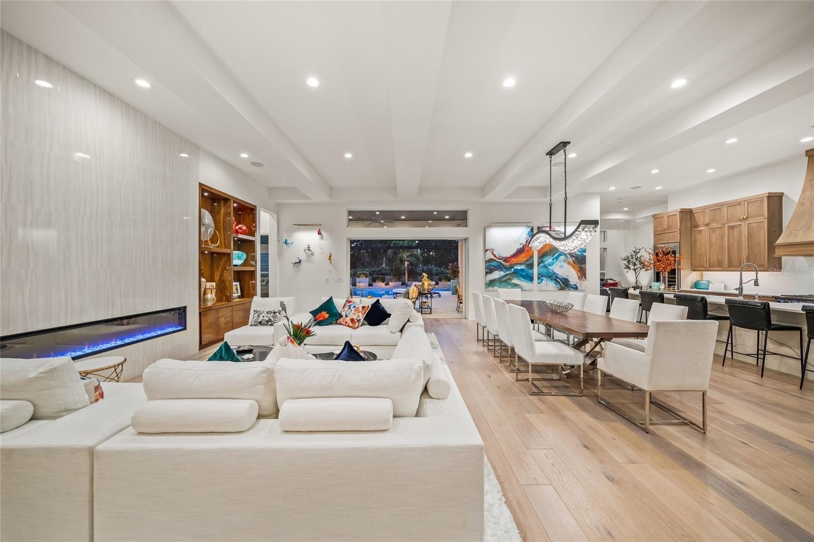 Nestled in the heart of Bradenton’s most coveted enclave, this custom-built masterpiece redefines luxury living. This custom home spares no detail, offering 3,873 square feet of pure sophistication with 4 bedrooms, 3 full baths, 2 half baths, and a versatile bonus room. Tandem space in the oversized garage allows space for a golf cart and storage. Every inch of this residence has been thoughtfully designed to blend elegance, comfort, and functionality. All windows and doors in the home are impact glass and it is equipped with a whole house Generac generator. From the moment you arrive, the home’s striking presence is undeniable. A grand 13’5” iron front door with privacy glass welcomes you into a world of refined craftsmanship. Inside, premium finishes abound—level 5 flooring, engineered hardwood with wide tongue-and-groove planks, custom wood built-ins illuminated by LED lighting highlighting a 100” linear electric fireplace and a dry bar equipped with a Sub-Zero beverage cooler all exude timeless luxury. Smart home technology and a whole-home Generac generator add modern convenience and peace of mind. At the heart of the home lies a chef’s kitchen that dreams are made of. Outfitted with level 10 custom cabinetry, a show-stopping 54” wood hood, and high-end appliances—including a Sub-Zero double-door refrigerator, Viking 7 Series range with double ovens, and a 102-bottle Sub-Zero wine fridge—this space is both stunning and functional. The walk-in pantry, complete with an office nook, and a handcrafted Native Trails sink elevate the kitchen to a whole new level. Step outside to your private oasis, where over 2,000 square feet of lanai space beckon for relaxation and entertaining. A fireplace, custom beams, and a tongue-and-groove ceiling set the tone, while the oversized 20’x37’ pool with Shell-lock flooring pavers provides a serene retreat. This outdoor haven is as functional as it is beautiful, perfect for hosting gatherings or enjoying quiet evenings under the stars. The spa-inspired master suite is a sanctuary of comfort and style. Imagine unwinding in the rain shower with digital controls accessible via iPhone, soaking in the Native Trails tub, or enjoying the sleek floating cabinetry with under-cabinet lighting. The custom-designed walk-in closet is a statement piece, offering unparalleled organization and storage. Practicality meets luxury with additional features like dual AC units in the home for optimal efficiency, and a split AC system in the garage along with custom storage cabinetry. Situated on a North-South facing corner lot, this home offers both privacy and an ideal layout to maximize natural light. Located in Country Club East in Lakewood Ranch, residents enjoy a resort-inspired lifestyle surrounded by scenic beauty and sophistication. Three community pools—including The Retreat, a centerpiece of leisure—offer endless opportunities for relaxation and recreation, complete with a resort-style pool, state-of-the-art fitness center, inviting social spaces, outdoor kitchen, and picturesque nature trails, all included with HOA fees. For those seeking an even more elevated experience, optional memberships at the Lakewood Ranch Golf and Country Club provide access to world-class golf courses and exclusive social amenities. Ideally situated near lively town centers, year round events, premier shopping, dining, miles of walking trails cultural attractions, and world-renowned Gulf beaches.