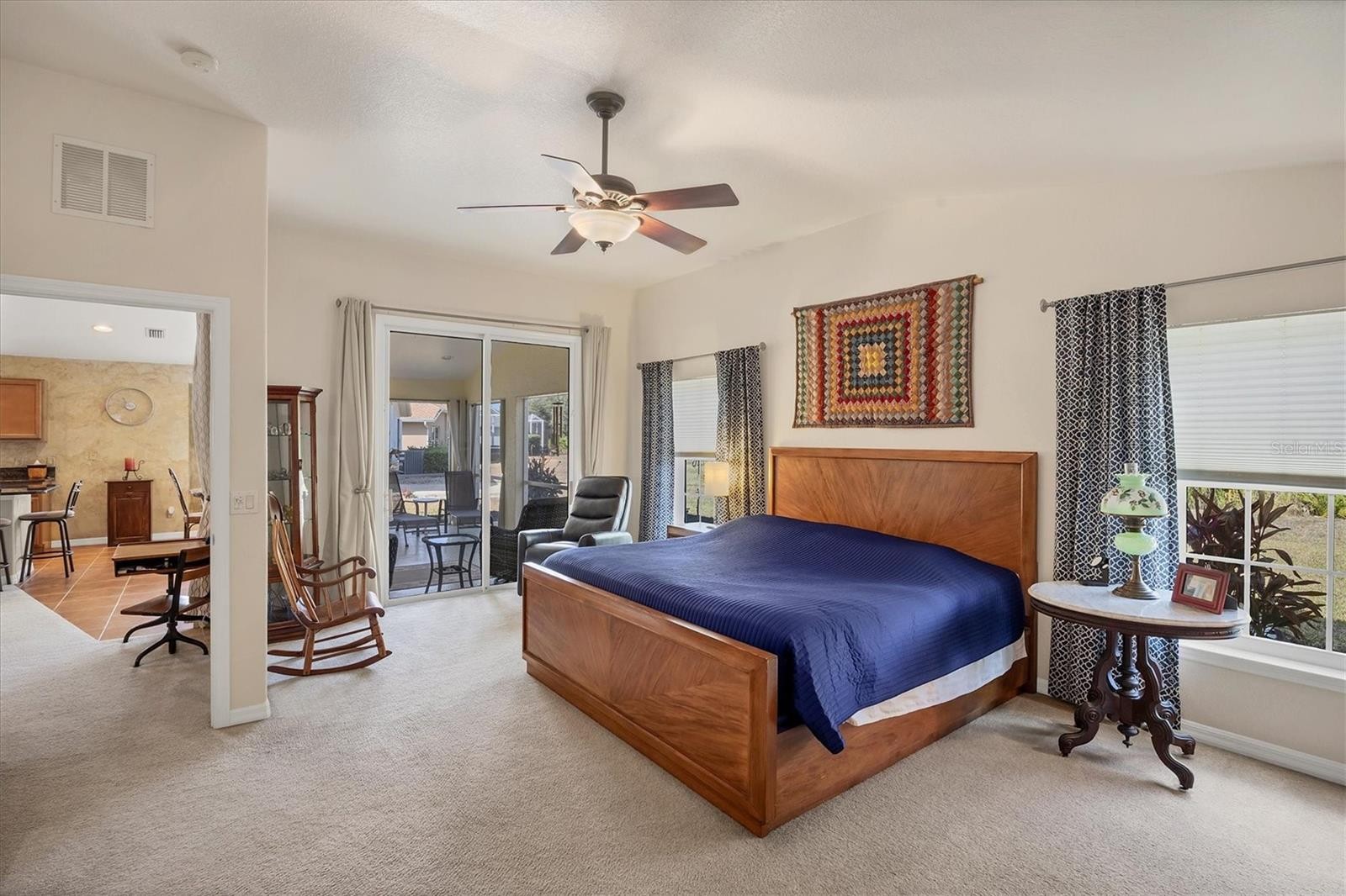 This impeccably maintained residence offers nearly 1,800 square feet of well-designed living space with 3 bedrooms, 2 full bathrooms, and an attached 2-car garage. A bright, open great-room floor plan creates an inviting first impression, ideal for both everyday living and entertaining. The upgraded kitchen features granite countertops, ample cabinetry and workspace, a breakfast nook, and a convenient breakfast bar that seamlessly connects to the main living area. Sliding doors lead to a screened lanai and spacious paver patio overlooking a private wooded preserve, providing a tranquil setting for relaxing or enjoying the outdoors. The expansive primary suite, approximately 20’ x 15’, easily accommodates a sitting area or additional furnishings. The en-suite bathroom includes a dual-sink vanity, walk-in shower, generous walk-in closet, and a large linen closet. A split-bedroom layout enhances privacy, with two additional bedrooms and a full bath located on the opposite side of the home—ideal for guests or a home office setup. Recent updates offer comfort and peace of mind, including a NEW HVAC system (2020) and hurricane-impact windows that enhance energy efficiency, security, and storm protection. The home is not located in a flood zone, and flood insurance is not required. Low quarterly HOA fees of $286 include lawn care, and the CDD fee is conveniently incorporated into the annual property tax bill. Located within the vibrant Lakeside Plantation community, residents enjoy access to a clubhouse, year-round heated pool and spa, fitness center, library, and tennis, pickleball, and basketball courts, along with a calendar of community activities. Award-winning Gulf beaches are approximately 30 minutes away, with shopping, dining, and everyday conveniences just minutes from home. Whether used as a primary residence or seasonal retreat, this move-in-ready home offers a desirable combination of location, thoughtful updates, and low-maintenance living. Furnishings are negotiable.