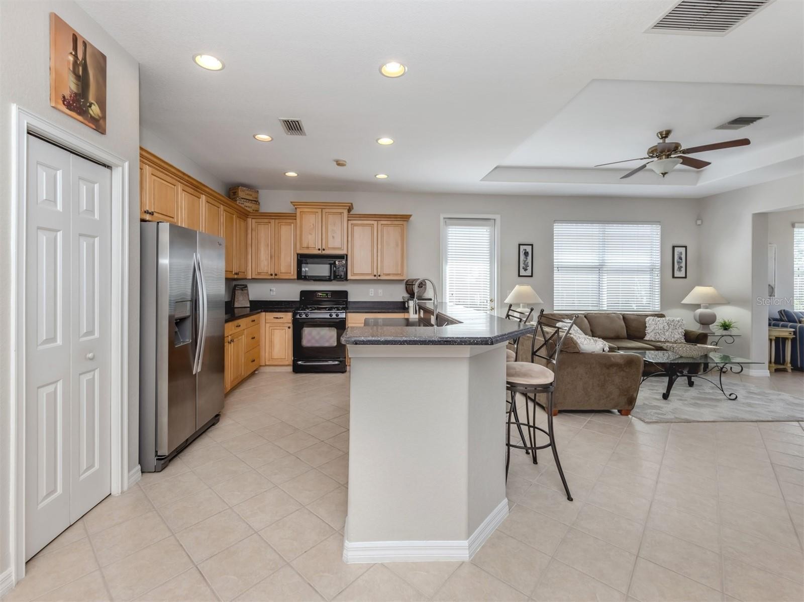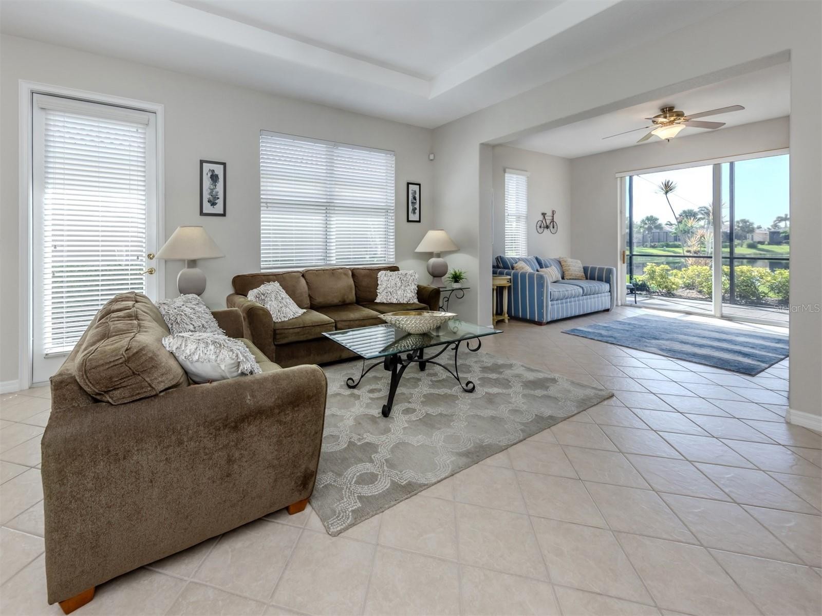 Imagine waking up to breathtaking, wide serene LAKE VIEWS every single day! This stunning WCI-built Extended Massari model home, nestled within the gated Venetian Golf and River Club, offers an unparalleled lifestyle of luxury and leisure. Step inside and be greeted by an open, bright, and incredibly spacious floor plan accentuated by soaring ceilings and neutral decor. The upgraded kitchen is a cook's delight, featuring rich wood cabinetry, a convenient breakfast bar, and a desirable gas range – perfect for culinary creations and casual dining. This TURN-KEY FURNISHED residence boasts three comfortable bedrooms and two well-appointed bathrooms, providing ample space for family and guests. The easy-maintenance tile flooring on diagonal throughout the main living areas ensures a seamless flow and effortless upkeep, allowing you more time to enjoy the incredible amenities this community has. Recently painted interior and exterior. Beyond your doorstep lies a world of resort-style living. As a resident of Venetian Golf and River Club, you'll have access to an 18-hole championship golf course, perfect for challenging your game. Stay active and socialize at the clubhouse or indulge in the exceptional facilities of the River Club, bordering a picturesque 70-acre nature park along the Myakka River. The River Club is a haven for recreation and relaxation, featuring a full fitness center and workout room, a refreshing lap pool, and a spectacular resort-style pool complete with a tiki bar for ultimate poolside enjoyment. Tennis enthusiasts will appreciate the six Har-Tru tennis courts and pro shop, while those seeking a friendly match can enjoy the three pickleball courts. For nature lovers, the River Walk Boardwalk meanders through the enchanting nature park, leading to a charming gazebo – the perfect spot to soak in the tranquility of the surroundings. This waterfront gem offers not just a home, but a lifestyle. Don't miss your opportunity to experience the exceptional living offered at Venetian Golf and River Club! Schedule your private showing today and start living in the Florida dream.