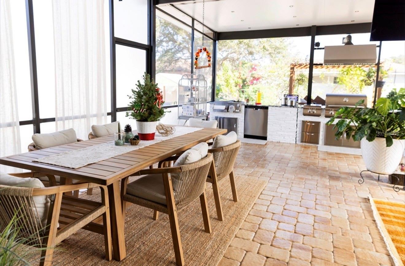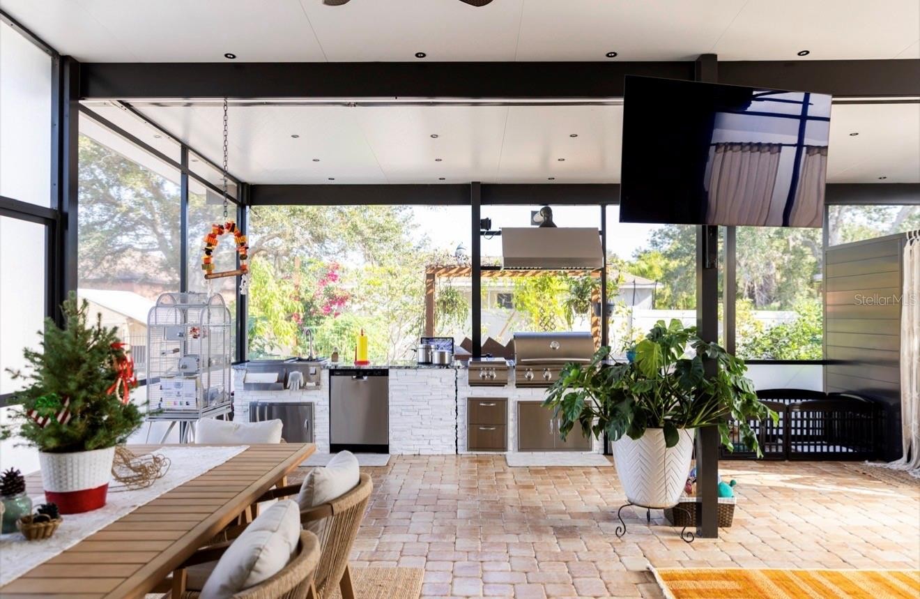 Welcome to your personal paradise with this stunning home, where outdoor living reaches new heights! Imagine hosting friends and family in your luxurious 750sqft lanai, complete with a fully equipped commercial grade outdoor kitchen, a state-of-the-art grill, dishwasher, exhaust fan, starry lighting sky, and even a refreshing private shower to wash off the day’s adventures. Experience the perfect blend of luxury and nature, right in your own backyard! Welcome home to your luxurious 2900sqft UNDER ROOF 2022 BLOCK BUILT with SOLAR PANELS 3 Bedrooms, 2-bathrooms, 2 car garage Insulated with Epoxy floors, shelving, and Air Conditioned for your toyz! Not in flood zone! No HOA, No CDD, No rental restrictions! Perfect Your Forever home or AIRBNB! Complete hurricane shutters protection! Beautifully landscaped front and backyard including multiple fruit trees such as: bananas, ananas, grapefruits, vanilla tree, guava, tomatoes, passion fruit, mango, papaya, orange, star fruit, cherry, jasmine, and others!!! All fenced in for your furry family and large 16x10 air conditioned with electricity shed/workshop, with paved boat/RV space! Irrigation system installed! The list goes on and on! As you walk in your meticulously maintained home you will be wowed by beautiful Luxury vinyl plank flooring throughout! And newer stainless steel appliances! High grade granite countertops in kitchen and matching granite counters in all bathrooms! Upgraded lighting system throughout! Long extended driveway the list goes on and on! Continue your journey into the heart of the home, where the open kitchen seamlessly blends with the spacious great room. The kitchen, a culinary enthusiast’s dream, features huge central island with a convenient dishwasher and sink. A generously sized pantry ensures you have ample storage space, making it easy to keep your kitchen organized and clutter-free. Split bedroom plan ensures privacy and tranquility. On right side of your home, discover the owner’s suite – a sanctuary of comfort and style. Wow yourself with spacious walk-in closet, providing a home for your wardrobe and accessories. The owner’s bathroom is a retreat in itself, complete with a linen closet and all the modern amenities you desire. On the opposite side of the home, you’ll find bedrooms 2 and 3, each offering a cozy haven for rest and relaxation. These bedrooms share a well-appointed bathroom and a convenient hallway linen closet, adding an extra touch of practicality to your daily routine. The convenience continues with the strategically placed laundry room, just off the kitchen, making chores a breeze. From there, access your 2-car garage, ensuring that you and your toys are well taken care of. Welcome home to where is not just a house; it’s a home designed for modern living, where every detail has been carefully considered to enhance your lifestyle. Imagine your days in this thoughtfully crafted space, where comfort meets sophistication, and memories are made. The lifestyle, where luxury meets practicality. Located in a quiet neighborhood yet close to shopping, dining, and top-rated schools, Tampa Bay Rays Spring training, Famous Wellen Park, Cool Today Park, Multiple beaches, Warm Mineral Springs, Port Charlotte Mall/restaurants entertainment, Port Charlotte Beach Park, easy access to route 75 and I-41 Do not miss your opportunity to own this sunshine retreat! Call for your private showing today!