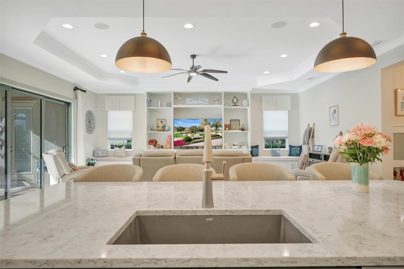 Welcome to this FORMER MODEL home located within the gates of the distinguished Country Club East offering exceptional upgrades and thoughtful design throughout.As a previous model it features enhanced finishes and details not typically found in standard homes.These features include;custom woodwork,built-in entertainment center,Sonos surround sound,plank tile throughout,and a brick accent wall with coffered ceilings in the dining room.The home blends style with function while creating warm,defined living spaces.Upgrades continue to the exterior of the home which include;Newer air conditioning system including the garage,pool heater,Generator,Hurricane and privacy screens which provide year round comfort and peace of mind.Meticulously cared for and move-in ready,this home is ideal for buyers seeking quality,comfort,and timeless appeal in a standout property.Located within a sought-after community featuring multiple clubhouses and premiere golf courses,residence enjoy an elevated lifestyle with access to top-tier amenities.Lakewood Ranch has been rated the #1 community in the US for all ages since 2018!Come see why so many have chosen to call this community home.