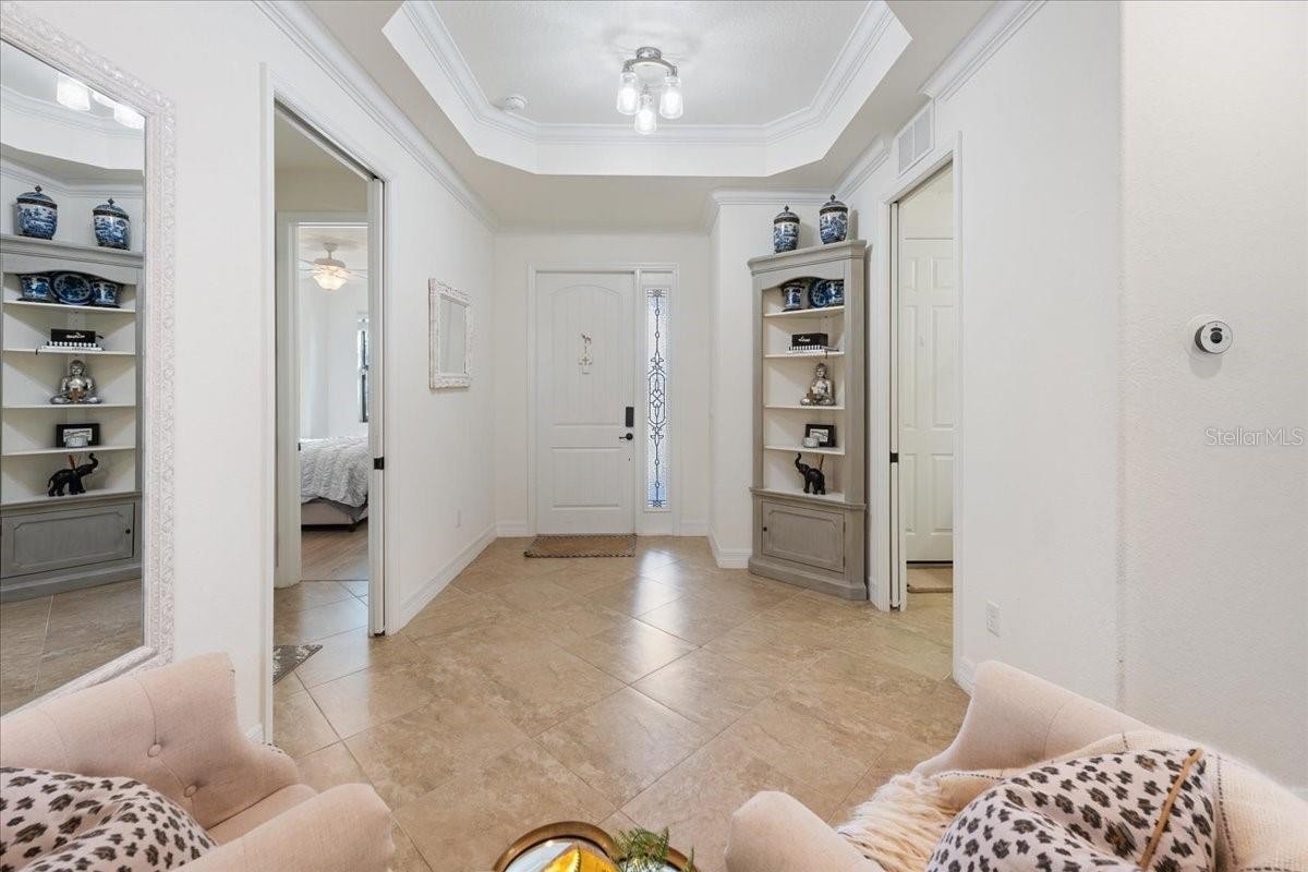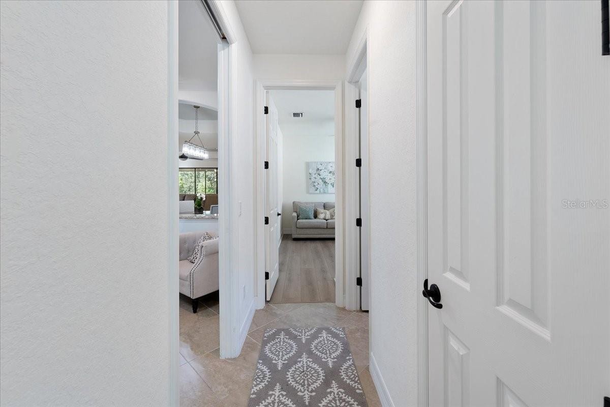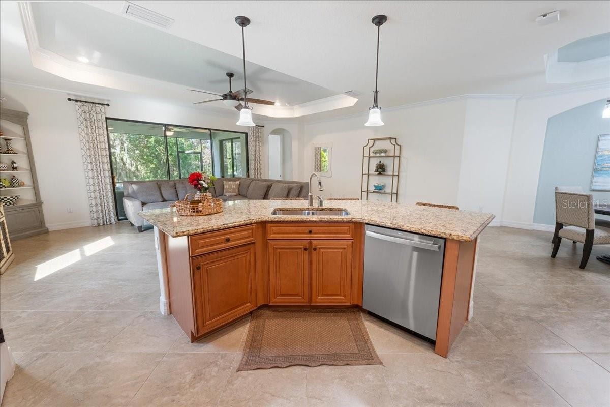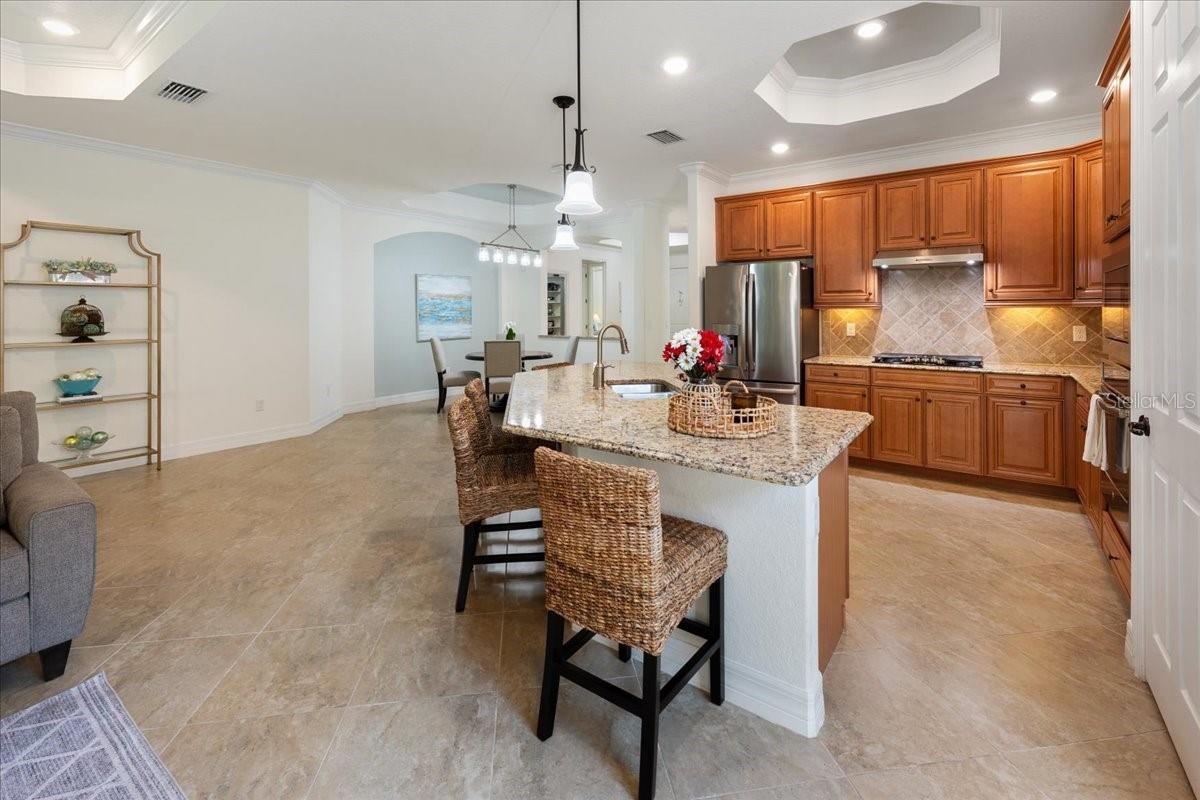 Offered at an exceptional value as the lowest-priced home currently available in Lakewood National Golf Club, this single-family residence is ideally situated on a quiet cul-de-sac and offers a peaceful setting within one of Lakewood Ranch’s most sought-after deeded golf communities. This well-appointed 4-bedroom, 2-bath, 2-car garage home welcomes you with a gracious foyer that creates a distinct living space at the front of the home, connecting seamlessly to the guest area and a generously sized laundry room with direct garage access. Two guest bedrooms are well-proportioned to accommodate king, queen, or twin beds and share a full bath with a pocket door that allows the guest wing to be closed off for added privacy. The fourth bedroom, office, or flex room offers versatile use with French doors and a large walk-in closet. The open-concept design then unfolds to the kitchen, dining, and living areas, featuring porcelain tile flooring throughout the main living spaces and highlighted by a large center island with granite countertops, maple cabinetry with under-cabinet lighting, designer backsplash, stainless steel appliances, tray ceilings throughout the primary living spaces, and crown molding. All overlook the lanai with outdoor kitchen, which opens to a wonderful nature preserve setting. The split-bedroom layout places the spacious primary suite at the rear of the home, featuring dual walk-in closets, tray ceiling detail, and a spa-inspired bath with double vanities, soaking tub, separate shower, private water closet, and linen storage. There is no private pool to maintain, with multiple community pools nearby and ample room to add a custom pool if desired. HOA-provided home landscaping includes routine mowing, shrub trimming, mulch, and ongoing maintenance, allowing for low-maintenance living. Impact-rated windows, along with impact-resistant protection for the rear sliding glass doors, provide added peace of mind. Seller upgrades include a Leaf Home Whole House Water Filtration System and the removal of carpet in all bedrooms, replaced with Luxury Vinyl Tile plank flooring by Fairfax Flooring, offering durability, a modern look, and a lifetime warranty. The garage features two ceiling-mounted storage racks for added organization and functionality. Lakewood National Golf Club is the only deeded golf community in Lakewood Ranch, where ownership for all residents includes access to two 18-hole Arnold Palmer–designed championship courses, one of which hosts the annual Korn Ferry Tour event, along with full community amenities. Residents enjoy a beach-entry heated lagoon pool with cascading waterfalls and lap lanes, six satellite pools, tiki bar, pub-style and fine dining in the Grand Clubhouse, a state-of-the-art fitness center with studios and a full-time trainer, spa services, lighted Har-Tru tennis, pickleball, bocce, practice facilities, scenic trails, and a vibrant calendar of community events. Completed in 2022, the community is fully established and professionally managed, offering 24-hour guard-gated and roaming security and a comprehensive, ownership-based lifestyle. A compelling opportunity within Lakewood National Golf Club.