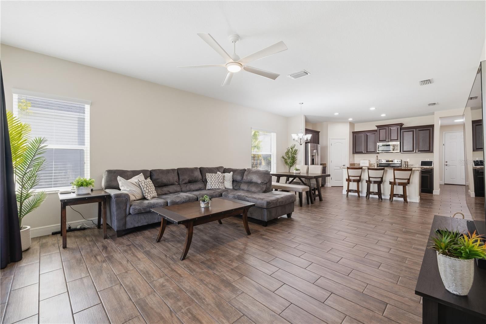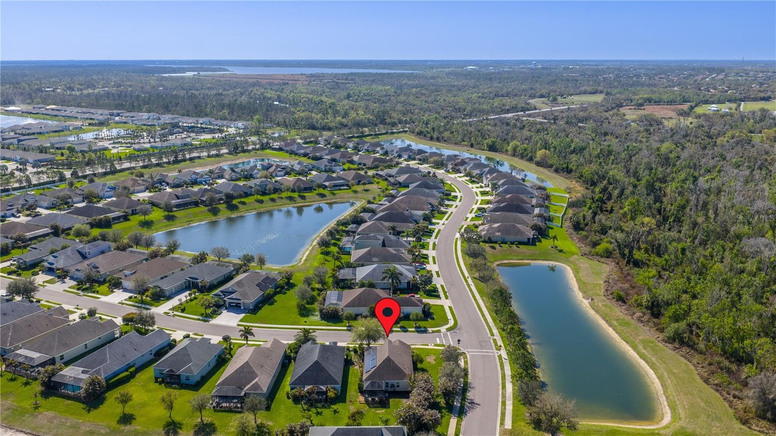 Beautiful move-in ready corner lot home located in the GATED amenity-rich Neal community of River's Reach. This SOLAR POWERED 3 bedroom + DEN/OFFICE, 2 bath, EXTENDED LANAI home is situated on an oversized (.30 acre) corner lot surrounded by lush landscaping providing all the privacy you could desire! Equipped with energy efficient SOLAR panels to help keep expenses low and Hurricane Shutters to provide peace of mind along with insurance savings! Arriving to this home, you will notice the privately situated lot and charming curb appeal including welcoming front porch. Inside you will find a spacious and open floor plan boasting fresh interior paint, porcelain tile plank flooring and high ceilings making it feel airy and bright. Modern fixtures finish the elegant touches in this beautiful home. The heart of the home showcases an expansive kitchen boasting custom cabinets, stainless steel appliances, Granite counter tops, center breakfast/cooking island, beverage station and ideal walk-in pantry. Open concept kitchen overlooks your large dining space and family room - perfect for entertaining! Split bedroom floor plan for privacy. Primary bedroom is spacious featuring sizable fantasy walk-in closet. Spa-like Primary en suite bathroom has double sink vanity, seamless glass walk-in shower, and water closet for privacy. Two guest bedrooms provide ample closet space including a rare walk-in closet. Split hall bathroom enhances functionality providing separate vanity area from the shower/tub combo. Double door entry leads into your den/office providing that extra desired living space. Interior laundry room for added convenience. Double sliding glass patio door leads to your EXTENDED lanai and outdoor tropical oasis offering plenty of patio space to relax. Plumbing already installed to finish designing your dream outdoor kitchen. Plenty of room for a pool. River's Reach is an established Gated community with an affordable low annual HOA (only $83/year) offering access to the Manatee River for fishing/kayaking and all the resort style amenities you could desire including community pool & spa, fitness center, clubhouse, and playground. Prime location minutes to top rated schools, Crunch Fitness and the growing Heritage Harbour shopping center offering Costco, Target, Academy Sports and more including a variety of restaurants to choose from! Centrally located with easy access to Lakewood Ranch, I-75 to Sarasota/UTC, St. Petersburg, Tampa, and pristine Florida beaches.