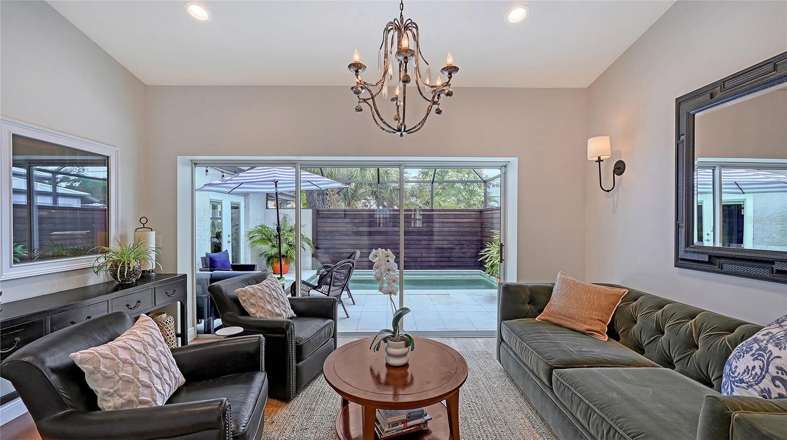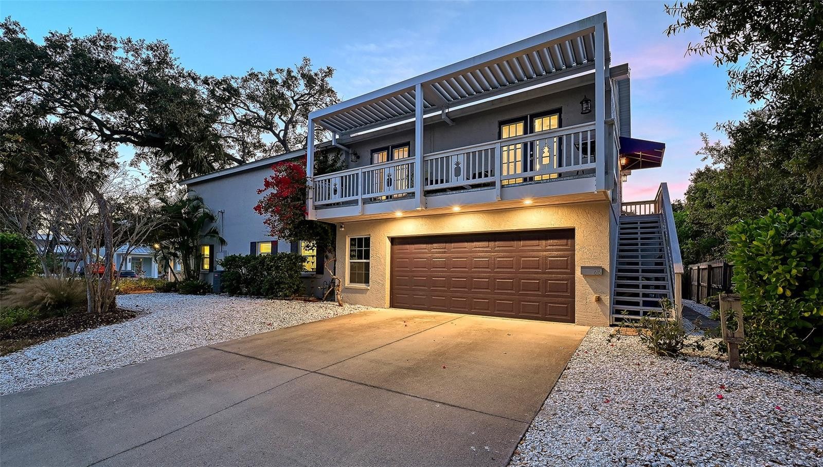 Perfectly situated in Sarasota’s vibrant Downtown within the coveted Gillespie Park neighborhood, this exquisitely renovated 2,938 sf, 4-bedroom, two-story Key West–inspired residence blends timeless architectural charm with modern sophistication. A magnificent oak tree graces the front yard, framing the home’s welcoming façade, while a historic brick driveway—crafted from original Sarasota street bricks—sets the stage for the artistry and attention to detail found throughout. Remodeled and expanded in 2017, the interior showcases solid wood floors, designer lighting, and refined finishes which create a warm yet elegant ambiance. The gourmet kitchen impresses with custom cabinetry with soft-close drawers, quartz countertops, and top-tier appliances including a professional Forno gas range, seamlessly marrying function and style. Open-concept living and dining spaces are enhanced by an electric fireplace and abundant natural light streaming through windows and doors, many of which are impact-rated. Upstairs, rich hardwood flooring continues through the private quarters, including the serene primary suite featuring a custom-built walk-in closet and a spa-inspired bath adorned with porcelain tile, designer fixtures, and a soothing neutral palette. The flexible floor plan offers versatility for today’s lifestyles: a downstairs bonus area—currently used as a Pilates studio with private entry—is zoned for business or rental use and could easily serve as a large luxurious primary suite, family room, media room, or fitness space. A beautifully designed 600 sf apartment provides fully independent or multi-generational living with its own contemporary kitchen, sleek induction cooktop, full-size washer and dryer, and a generous private balcony. Perfect for hosting guests, accommodating extended family, or generating income, this versatile space qualifies for one-week minimum rentals—an exceptional advantage in today’s market. Additional highlights include a temperature-controlled wine room, an oversized laundry area with attic storage, three zoned HVAC, and a security system. Outside, a lush courtyard with screened lanai and heated pool creates a tranquil retreat for relaxing or entertaining amid tropical landscaping. Set on a spacious, fenced corner lot, the property offers abundant privacy along with an expanded 2½-car garage featuring an impact-rated door and generous storage. Residents of Gillespie Park enjoy one of downtown Sarasota’s most walkable locations—just moments from Main Street and the new Bayfront Park where you can catch sunset, take in water views while enjoying a concert, yoga or lounging with your feet in the sand. Enjoy nearby fine dining, boutique shopping, arts and cultural venues, and easy access to SRQ International airport. The neighborhood’s namesake park offers tennis and pickleball courts, dog areas, and a lively community spirit that captures the essence of urban Sarasota living. Blending the character of Sarasota’s historic past with the ease of modern luxury, this exceptional residence delivers rare flexibility, craftsmanship, and an enviable location in the heart of it all.