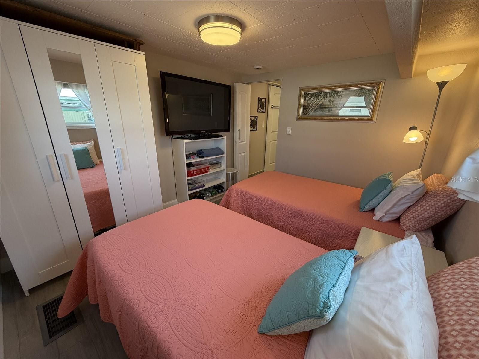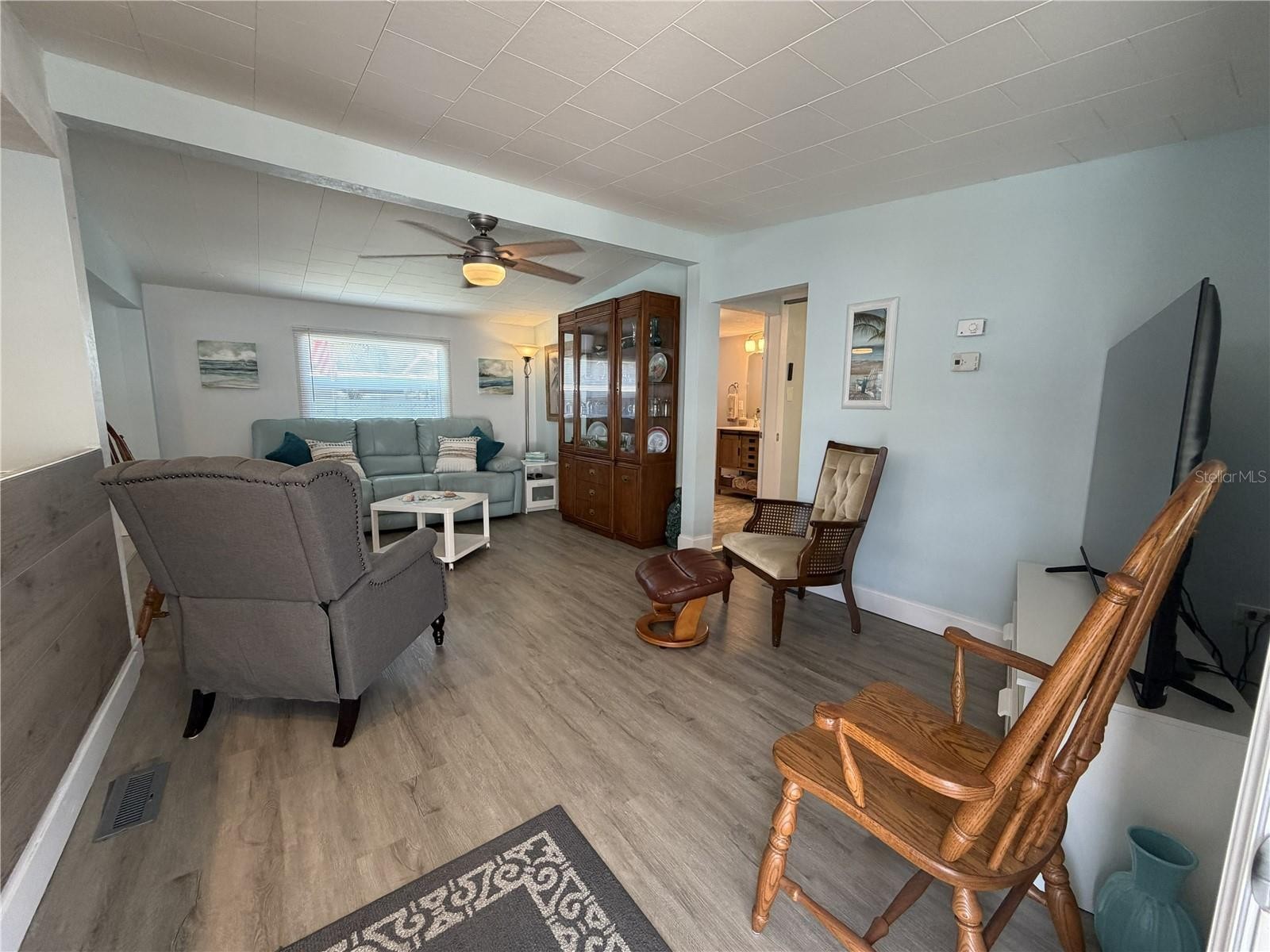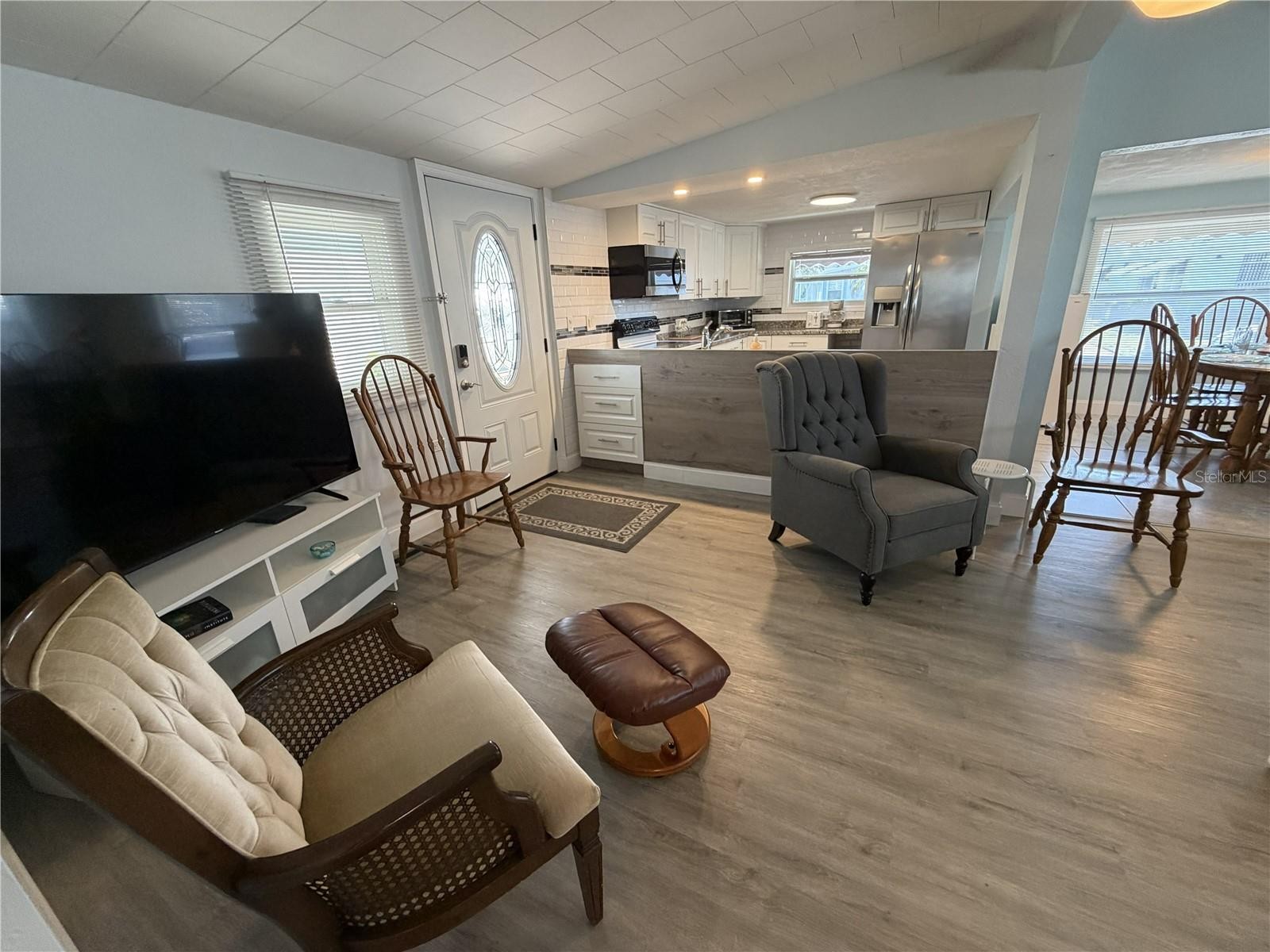 This fully furnished residence offers two bedrooms and two bathrooms. Notable features include a brand new metal roof installed in 2025, a remodeled kitchen with soft-close cabinetry, and an exceptionally clean interior with updated double pane windows. Additional upgrades comprise an in-house laundry room, cement board and tile flooring complemented by luxury laminate, a tiled driveway, an updated electrical panel, textured walls, vinyl siding with added insulation, modernized plumbing, and a water heater installed in 2021. This move-in ready home is thoughtfully updated throughout. Tri-par Estates is a 55+ community that provides a wealth of amenities: enjoy a heated and cooled large pool for year-round swimming, a brand-new spa, tiki hut, pickleball courts, fitness center, shuffleboard, miniature golf, horseshoes, and various recreation hall rooms equipped with ping-pong, billiards, card tables, a kitchenette, sewing areas, and more. The expansive clubhouse regularly hosts dinners, dances, and other events. Situated only minutes from downtown Sarasota, you’ll have easy access to marinas, shopping, restaurants, museums, the world-renowned Siesta Key and Lido Key beaches, and Sarasota airport. In this special park and recreation district, residents own their land directly, with no separate HOA fees—an annual fee of $1,648 is included in your property taxes. Internet and TV included in the annual fee. Golf cart-friendly community with optional RV or boat storage when available. Don’t miss the opportunity to join this lively, well-established neighborhood in paradise.