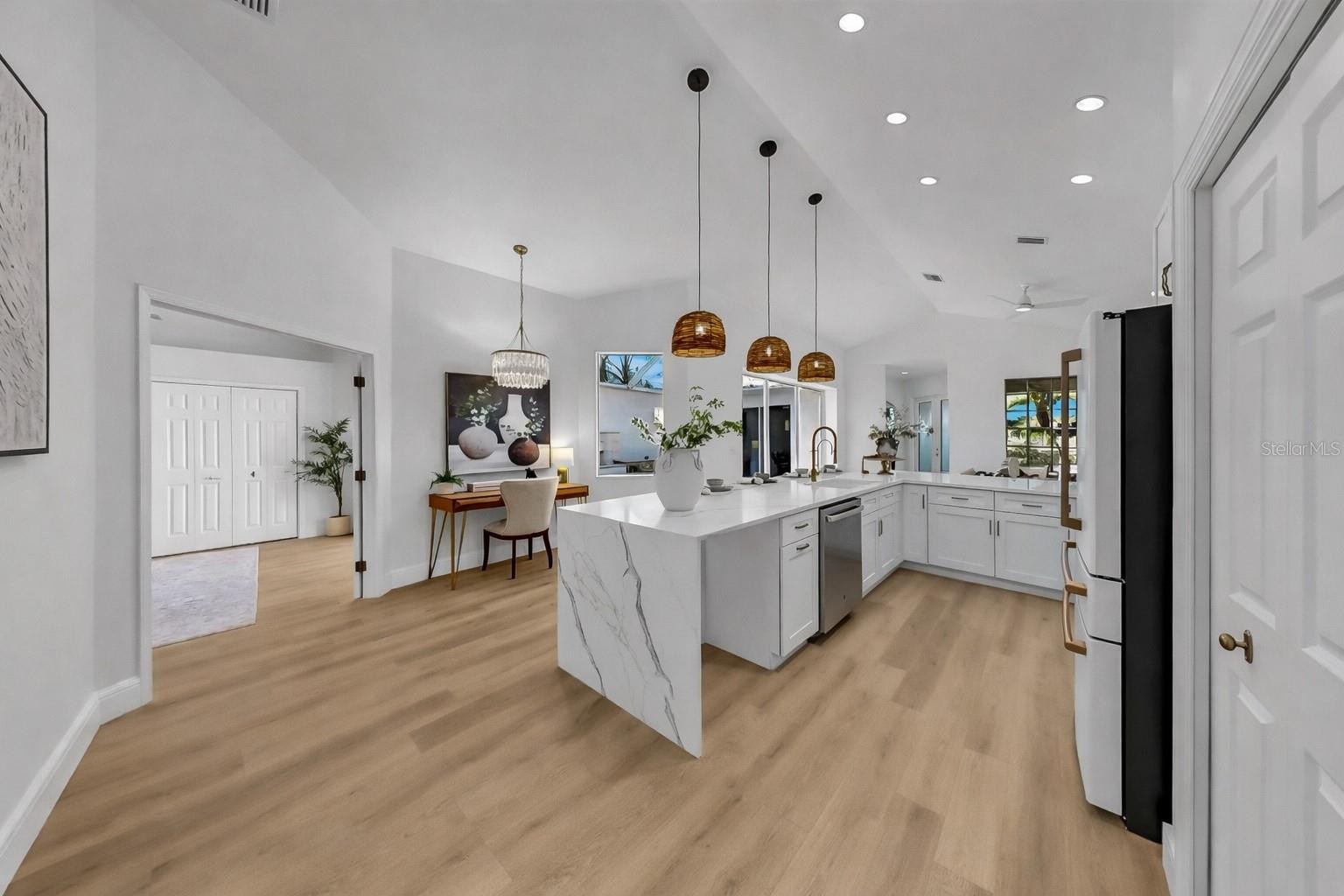 Boat slip included—and that’s the lifestyle upgrade that matters most. Located in The Inlets, this beautifully remodeled 2BR + den, 2BA residence blends coastal-inspired style with a smart, functional layout designed for easy living. Inside, you’ll find bright, open living and dining spaces, updated flooring, and designer finishes throughout. The kitchen has been refreshed with updated cabinetry, upgraded countertops, and modern fixtures—perfect for everyday living and entertaining. The versatile den adds flexible space for a home office, media room, or guest overflow. Instead of a traditional backyard, this home delivers what boaters actually want: a completely private courtyard retreat made for relaxing after a day on the water—complete with a spa and soothing water feature. The split-bedroom plan offers privacy, featuring a spacious primary suite with an updated en-suite bath, plus a well-appointed guest bedroom and second full bath. And the rare highlight: a deeded boat slip is included (only 21 deeded slips exist in the community), located approximately two blocks away—giving you easy boating access without the waterfront premium. Boat to restaurants, downtown Bradenton, downtown Palmetto, and Anna Maria Island with ease. Enjoy low-maintenance living with convenient access to I-75, downtown Bradenton, and nearby beaches.