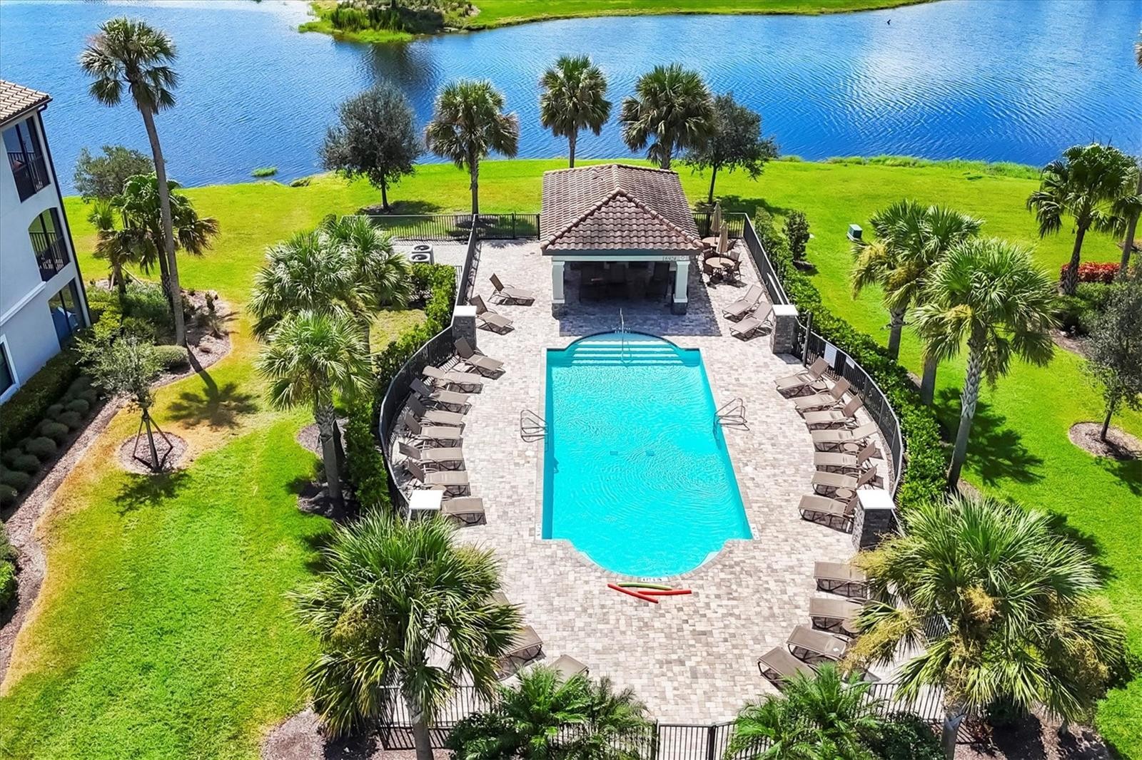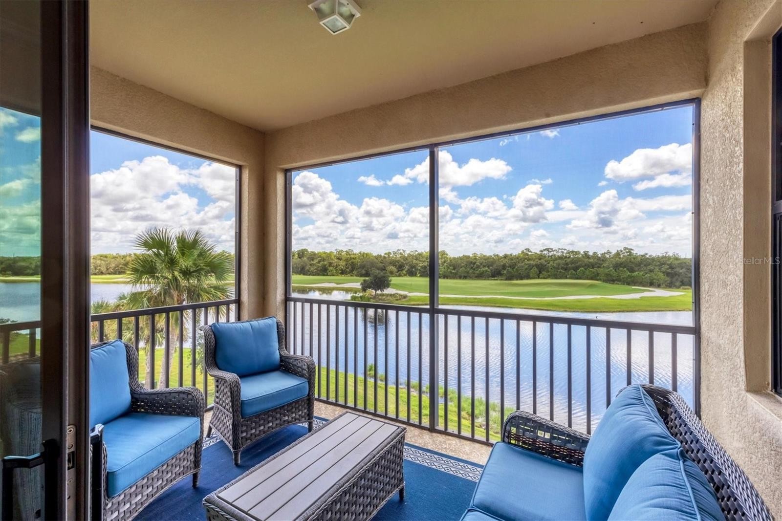 Million-Dollar Views from the Top Floor This top-floor, end-unit Birkdale condo offers the best of Lakewood National living—panoramic views of the 11th hole on the Commander Course, a serene lake, and a private wooded backdrop. It’s the largest Birkdale floor plan and comes fully furnished with a full golf membership included. Inside, you’ll find an open-concept layout designed for both everyday living and entertaining. The kitchen, dining, and living areas flow seamlessly, all framed by stunning views. Two bedrooms, two baths, an in-unit laundry, and a screened lanai make the space comfortable and functional. Stylish tile and LVP flooring mean no carpet to worry about. Plus, you’ll appreciate the oversized storage unit located just outside your front door—perfect for golf clubs, bikes, or beach gear. Convenience is built in—you can take the elevator down and walk just steps to the nearby satellite pool. Lakewood National is more than a golf community. Along with two Arnold Palmer–designed championship courses, residents enjoy a 24-hour guarded gate, two restaurants, a resort-style pool, spa and fitness center, plus tennis (8 courts) and pickleball (4 courts). Whether you’re looking for a primary residence, vacation retreat, or income-generating investment (rentable up to 12 times per year), this home checks every box. Owner will also consider financing for well-qualified buyers.