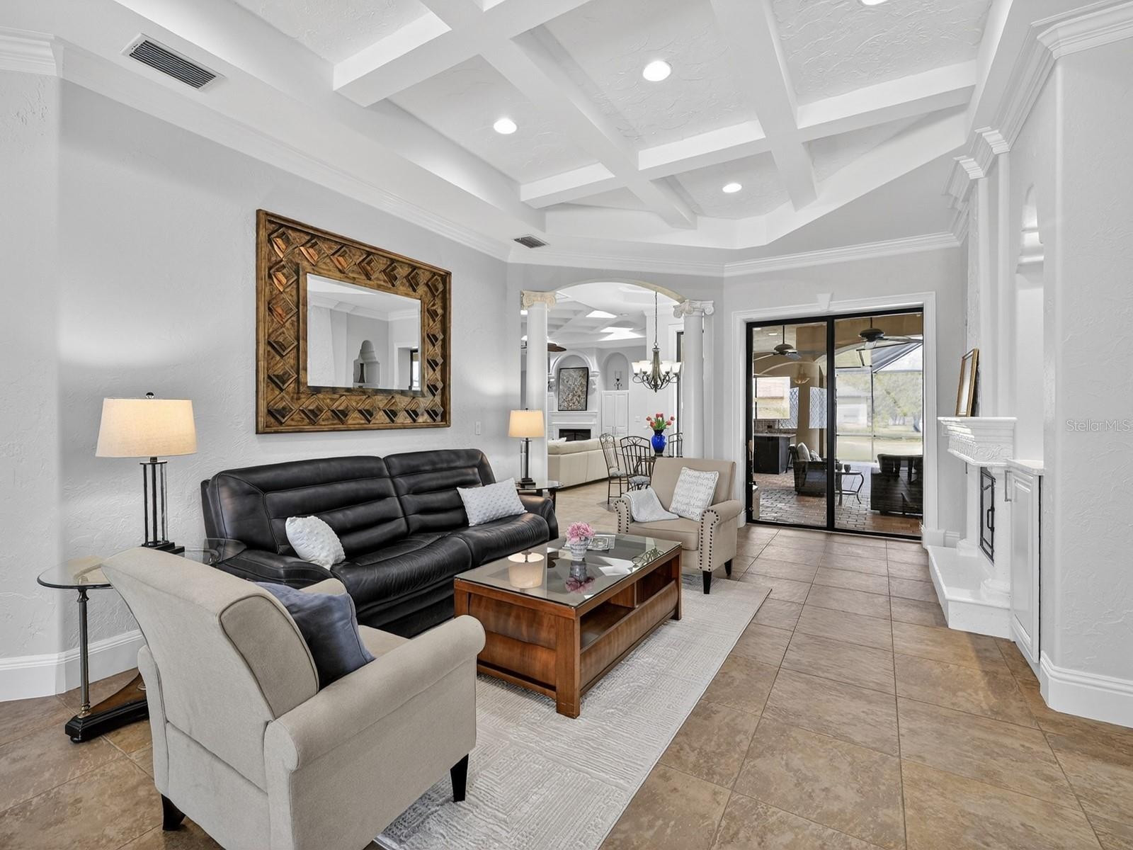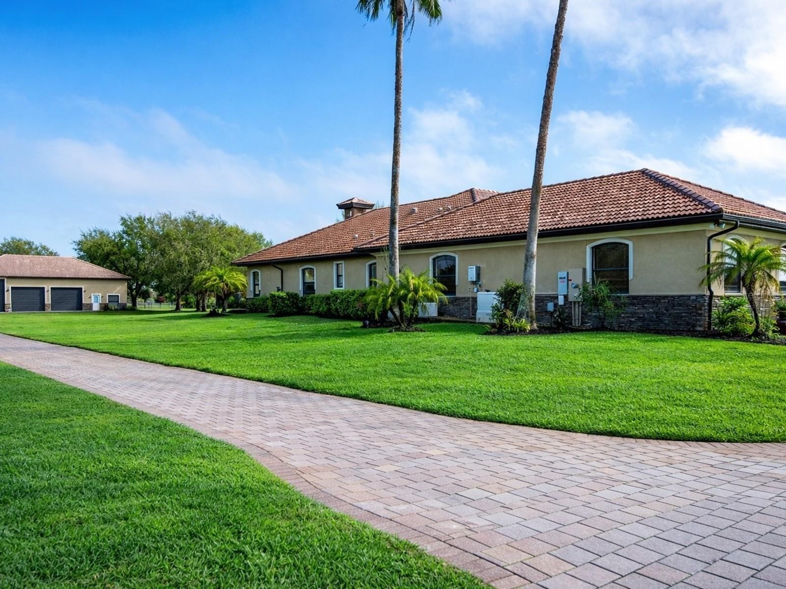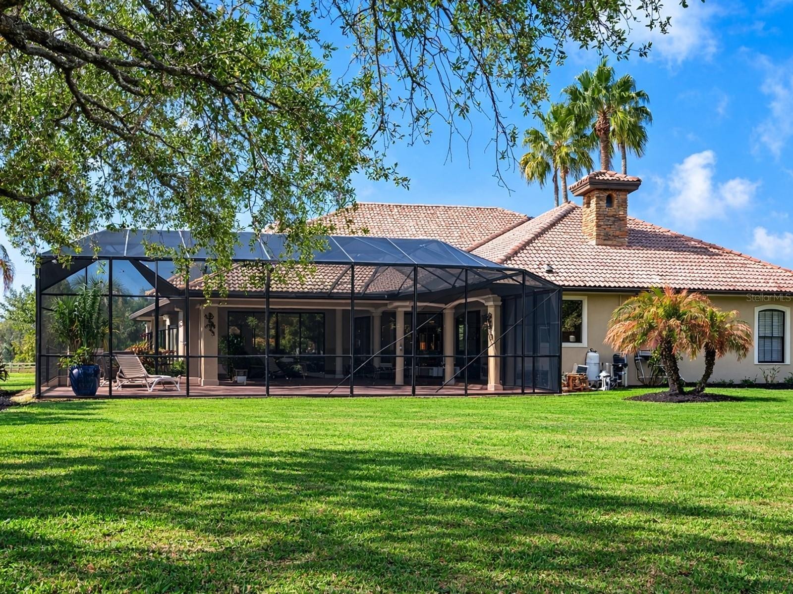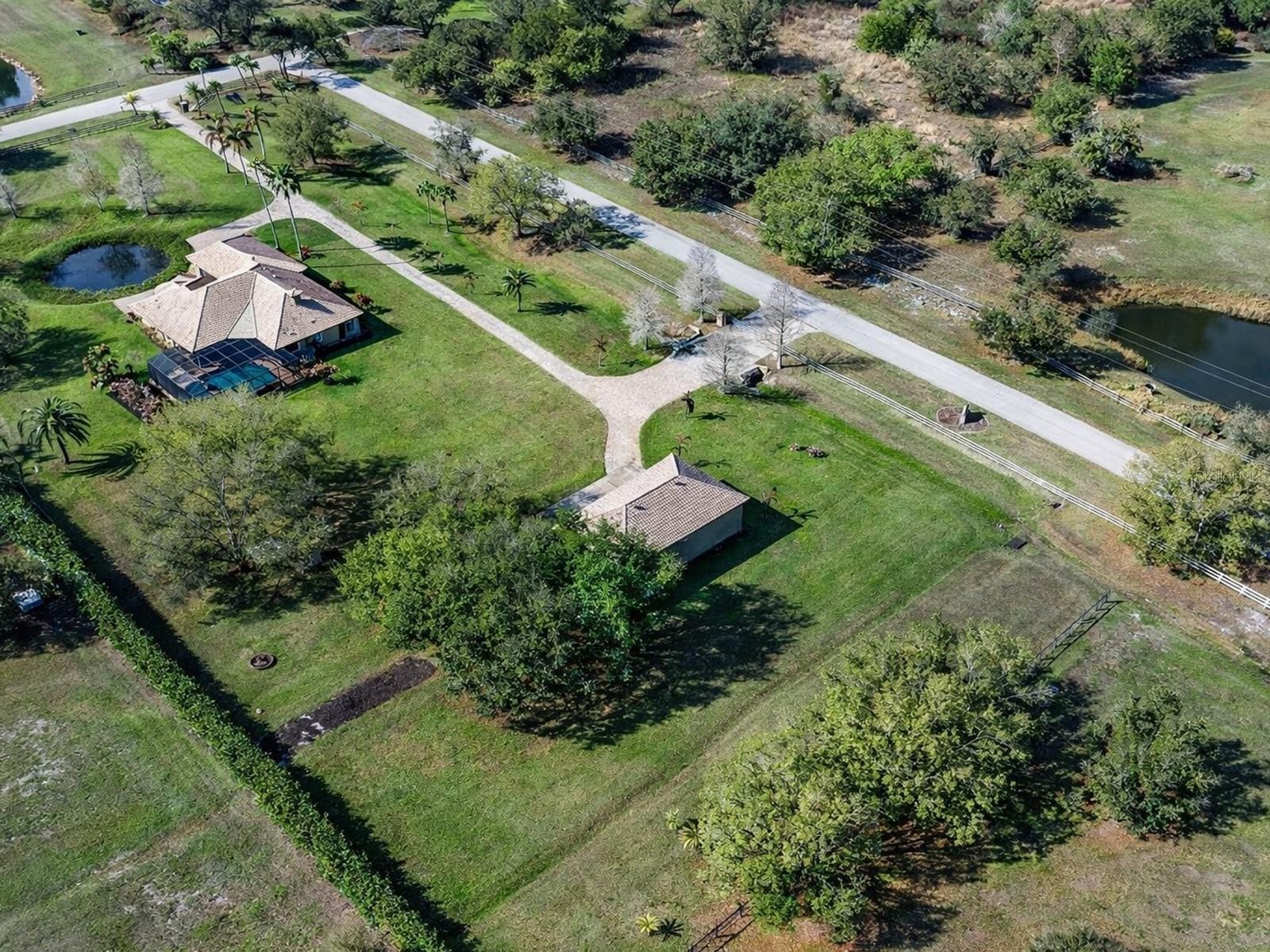 One or more photo(s) has been virtually staged. Welcome to an extraordinary, gated estate in Sarasota, FL, where nearly 5 private acres create the perfect backdrop for luxury living. This one-of-a-kind property boasts 3 gates for security & convenience. Behind board fencing, the estate ensures privacy, a long paver-brick drive, & curated landscaping. A serene pond enhances the beauty, making this an ideal retreat for those seeking space & premier amenities. A standout is the expansive detached bldg (approx. 2,100 sq. ft.), perfect for RVs, car collectors, or boaters. It offers parking for up to potentially 8 cars via tandem bays, an RV-height bay, & space for a boat or rec vehicles, accommodating up to a 34-ft boat or RV. There's a reinforced attic for storage, plus a beautifully finished guest studio apt. Ideal for multigenerational living or as an income-producing rental, this space features tile floors, crown molding, barn door, kitchenette w/ pantry, white cabinets, full bath, & independent climate control. The main residence presents a Mediterranean-style tile roof, welcoming porch w/ custom tile inset, arched dbl doors, & side-entry 2-car garage w/ resurfaced floor. Inside are 4 BRs, 3 baths, & a versatile den/study—providing flexible space for work or relaxation. Detailed ceilings, textured walls, designer/recessed lighting, ceramic tile, & wood floors add sophistication & warmth. A grand foyer w/ illuminated art niches, elegant columns, & a coffered ceiling welcomes you. Entertain in a formal dining/living area w/ stately columns, fireplace, & direct lanai access. The gourmet kitchen features white cabinets, subway-tile backsplash, lighted display cabs, premium appliances, breakfast bar, walk-in pantry, coffee bar, quartz counters, & butler’s pantry upgrade. Enjoy a breakfast nook w/ aquarium glass windows overlooking the pool, lanai, & acreage. Retreat to a warm family rm w/ coffered ceiling & fireplace or unwind in a luxurious primary suite w/ dbl doors, wood floors, triple sliders to the pool, dual walk-in closets, & spa-like bath. One add'l BR has walk-in closet, all have crown molding, & access to a beautiful guest bath w/ quartz. The separate studio apt provides a 4th bath, affording privacy & convenience for guests or extended stays. Functional spaces include laundry/craft rm (safe rm). Experience the FL lifestyle w/ an expansive covered lanai featuring a summer kitchen, granite bar, & a heated saltwater pool & spa w/ Pebble Tec finish and a new micro-mesh pool cage—ideal for entertaining or relaxing in total privacy. This outdoor oasis also grants convenient access to a pool bath w/ quartz. Deer Hammock luxury estate offers an exceptional blend of space, elegance, & security, conveniently located just east of I-75 in Sarasota County near local amenities. For added peace of mind, the estate has impact windows, hurricane shutters, a whole-house generator & 30 days propane storage, ensuring continuous comfort regardless of weather or outages. Picture cozy evenings by the fire pit under a starlit sky, w/ the excitement of bringing your horses to explore this beautiful setting. It's the perfect canvas for a dream equestrian estate! This home provides an impressive range of amenities that can't all be detailed here, making it ideal for those seeking a spacious country getaway and representing a remarkable opportunity, enhanced by deed restrictions that ensure the neighborhood’s visual appeal & protect property values.