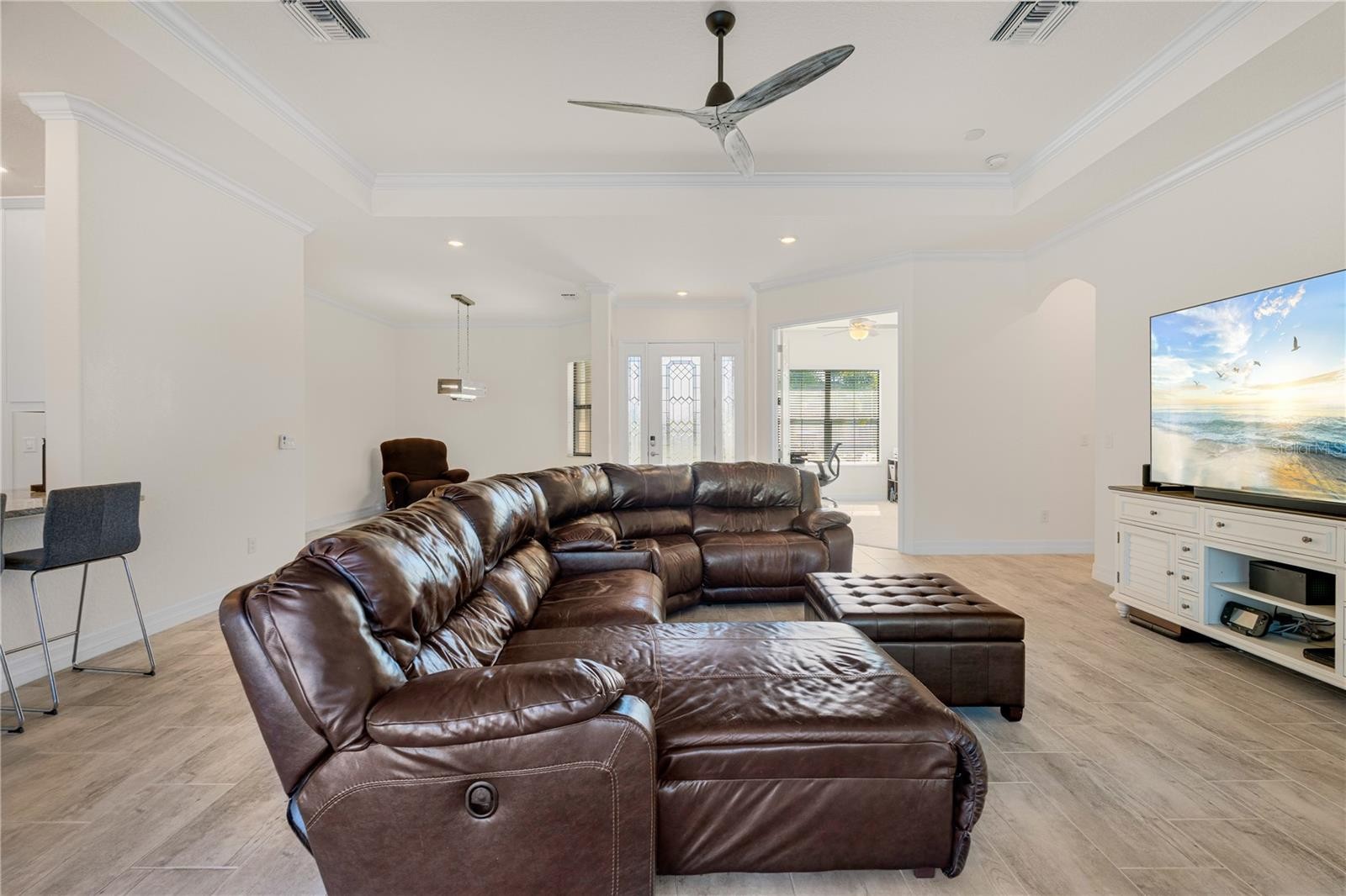Welcome to this beautifully appointed Oakmont Model located in the sought-after Polo Run community. This 4-bedroom, 2.5-bathroom home is thoughtfully designed for both everyday comfort and effortless entertaining, featuring a bright, open-concept layout with spacious living areas and stylish finishes throughout. The gourmet kitchen serves as the heart of the home, offering modern cabinetry, premium appliances, ample counter space, and a large center island that flows seamlessly into the living and dining areas. The private owner’s suite provides a peaceful retreat with generous closet space and a spa-inspired bath, while the additional bedrooms offer flexibility for family, guests, or a home office. Step outside to your private outdoor oasis and enjoy Florida living year-round with a saltwater pool, ideal for relaxing or entertaining. Additional upgrades include a whole-home water filtration system and water softener, enhancing comfort and everyday living. Polo Run is the only solar-powered community in Lakewood Ranch, offering energy efficiency alongside luxury living. Residents enjoy resort-style amenities including a clubhouse, fitness center, tennis and pickleball courts, pools, and a vibrant social calendar—all within a gated, beautifully maintained setting. This Oakmont Model offers the perfect blend of luxury, functionality, and an exceptional lifestyle in one of Lakewood Ranch’s most desirable communities.