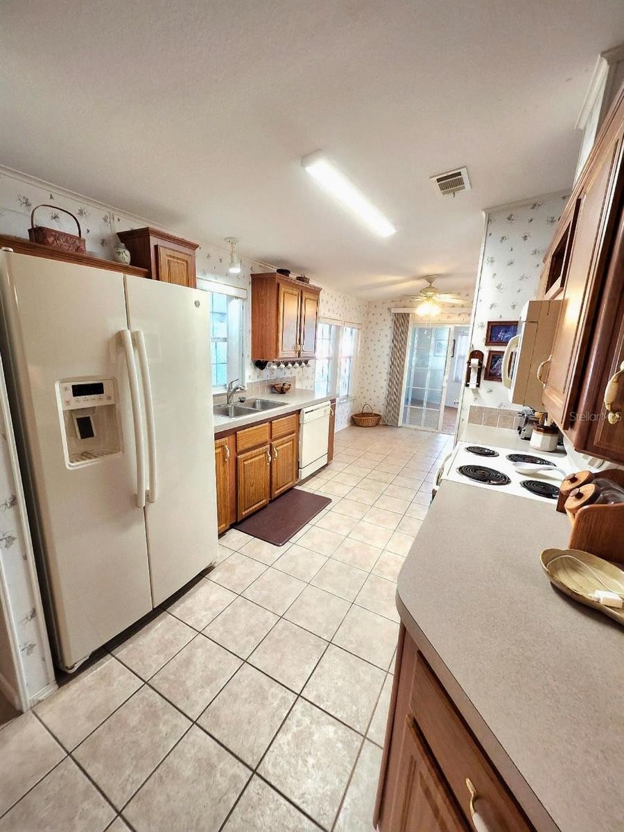 Feels like HOME! Open Concept with a spacious Single Family home feel. This is a well-maintained 3 Bedroom, 2 Bath, 2004 Jacobsen Chancellor III model Manufactured Home on a Lot and a Half in the highly desired, active 55+ Trailer Estates community. High ceilings and a large window wall create an airy Living Room. Abundant Kitchen cabinetry wraps around to the Dining Room area to form a built-in buffet, while an eat-in Dinette space adjacent to the kitchen is convenient for informal meals. Roomy Primary Bedroom with wall-to-wall closet and ensuite bath. Bonus space with built-in shelves for Office/Den can be closed off from the rest of the house for a quiet work space. Inside laundry closet. 2x6 Hurricane Resistant construction, built on a solid concrete slab extending under the entire unit, creates tons of storage under the house. Double paned windows. New Roof shingles, 2024. AC, 2017. Oversized carport allows for covered outdoor space and plenty of parking. Rarely do you find anything like this on the market! Located just down the street from the heart of the social scene; just a short walk to access the community pool, recreation buildings, shuffleboard, fitness center, and all the wonderful park amenities. You own the land. No lot rent, Park Fees are included into annual real estate taxes. Boaters have direct access to Sarasota Bay from the Marina. Trailer Estates community offers so many options for a great day! Enjoy the large, heated community pool, hot tub, gym and wood shop. The community buzzes with pickleball, shuffleboard, kayaking, horseshoes, bocce, dancing and more. A US Post Office on site. 10 minutes to the SRQ Airport. Convenient to shopping, restaurants, the Arts and everything in Bradenton/Sarasota. Bring offers!