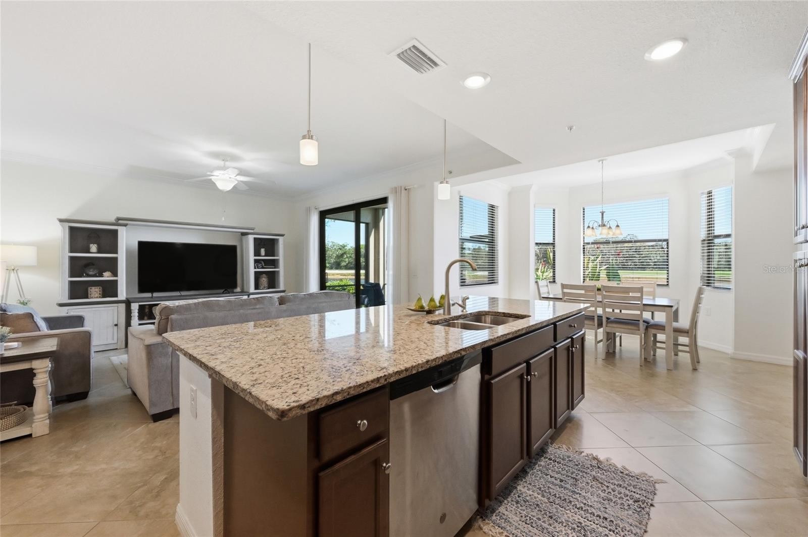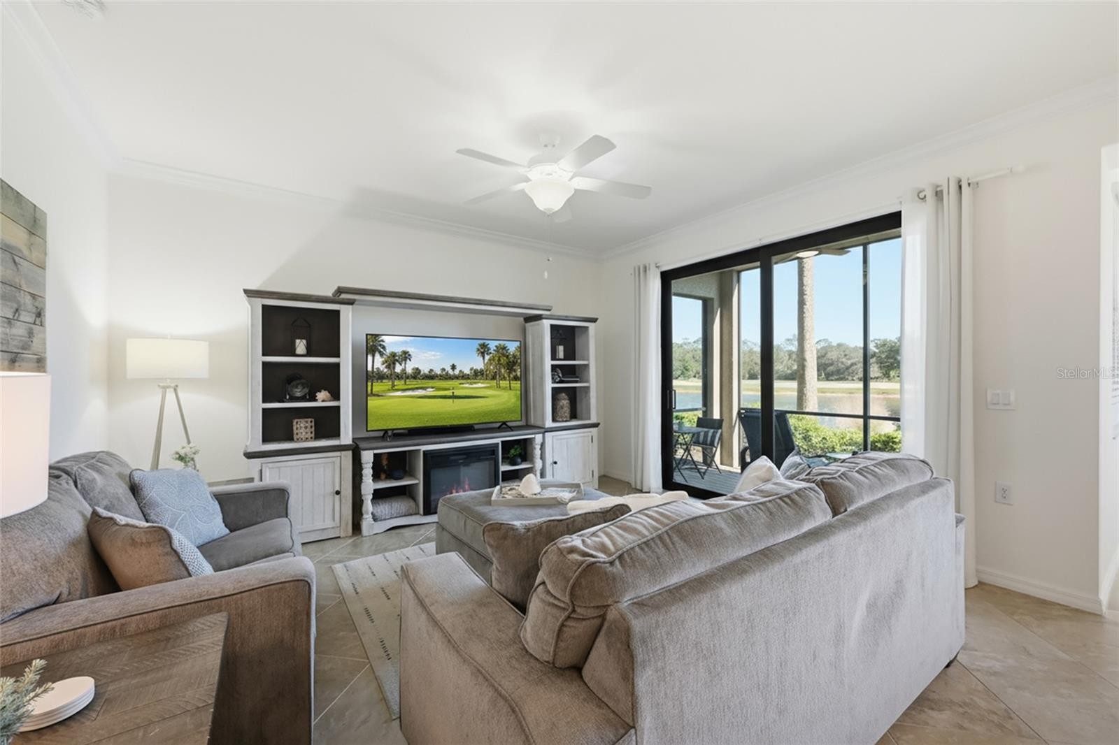Experience the ultimate in resort-style living at Lakewood National Golf Club with this beautifully appointed first-floor walk-out condominium, offering effortless luxury, serene lake and golf course views, and a lifestyle that’s second to none. This TURNKEY FURNISHED residence is move-in ready—perfect as a full-time home, seasonal retreat, or investment opportunity—with the added benefit that the Seller will consider owner OWNER FINANCING, a rare and appealing option in today’s market. This home has SUCCESSFUL RENTAL HISTORY and allows for monthly rentals, up to 12 times A year with golf and all amenities may be transferred with a fee. Designed for both comfort and style, the home features a bright and open layout that blends modern finishes with a relaxed coastal aesthetic. The spacious great room flows seamlessly into the dining area and gourmet kitchen, where granite countertops, rich cabinetry, stainless steel appliances, and a breakfast bar create a warm and functional centerpiece. Large sliding glass doors open to the screened lanai, where you can enjoy peaceful views of the shimmering lake and manicured fairways—an ideal setting for morning coffee or evening sunsets. The primary suite is a welcoming private retreat, thoughtfully designed for relaxation. It features a large walk-in closet and an en-suite bath. The guest bedroom and full bath with tub provides privacy for visiting family or friends. With first-floor access, you’ll enjoy the convenience of stepping right outside to beautifully landscaped green space—perfect for an easy, maintenance-free lifestyle or for those with pets. Living at Lakewood National means more than just a beautiful home—it’s an invitation to an exceptional country club lifestyle. Residents enjoy access to two Arnold Palmer-designed championship golf courses, a stunning clubhouse with full-service restaurant and bar, resort-style pool with cascading waterfalls, tennis and pickleball courts, a state-of-the-art fitness center, and a luxurious spa offering massages and wellness treatments. Whether you’re an avid golfer, fitness enthusiast, or simply love to relax in a resort setting, every day here feels like a vacation. Ideally located within Lakewood Ranch, one of the nation’s top master-planned communities, this home offers proximity to upscale shopping, dining, and entertainment at University Town Center, Waterside Place, and downtown Lakewood Ranch. You’re also just a short drive from world-renowned Gulf Coast beaches including Siesta Key, Longboat Key, and Anna Maria Island. For travel convenience, both Sarasota-Bradenton and Tampa International Airports are easily accessible. With its tranquil golf and lake views, turnkey furnishings, and flexible owner-financing option, 17108 Vardon Terrace, Unit 103 represents a rare opportunity to own in one of Southwest Florida’s most desirable resort communities. coastal, comfortable, and completely move-in ready—this is Florida living at its finest.