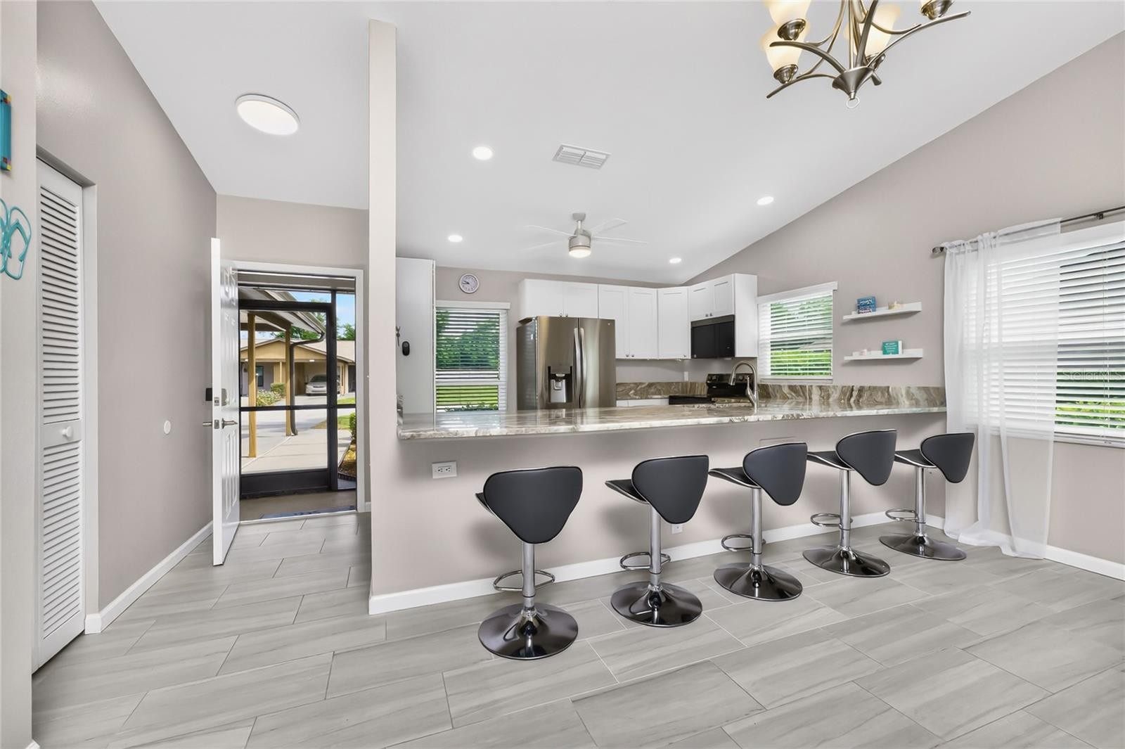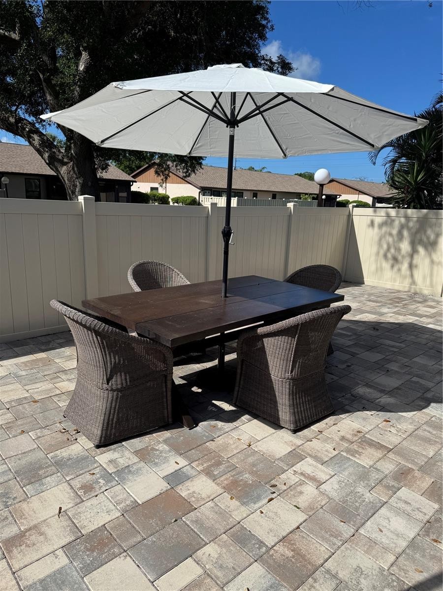 Welcome home to your updated, turnkey furnished, 2-bedroom, 2-bath villa offering effortless, low-maintenance living in a desirable 55+ community. From the moment you step inside, you’re greeted with an open, light-filled layout featuring vaulted ceilings and a seamless view through the living space to the oversized lanai and private, fenced, paver backyard —perfect for relaxing or entertaining. The thoughtfully updated kitchen (2023) showcases modern finishes, soft-close cabinetry, newer appliances, and plank tile flooring creating a stylish and functional heart of the home. Both bathrooms were partially updated as well with new cabinetry and soft close drawers. The plank tile is carried throughout the home except for laminate in the 2 bedrooms. Maintenance is simple and the look is clean and contemporary. The primary suite offers comfort and convenience with dual closets featuring adjustable shelving, an en-suite bath, and direct access to the lanai — your own private retreat. Major updates have already been taken care of, including UV light bulb replaced on HVAC (2025); New roof with extended gutters and leaf guards (2024); Washer & dryer (2022); Impact windows (2018); Water heater (2017). Enjoy true peace of mind with an HOA that covers basic cable TV, exterior maintenance (including roof and paint), lawn care, and a community pool — all designed to make everyday living easy. There is a residents storage area for RV or Boats. Current owners graveled their storage space for an RV. This is the perfect blend of comfort, convenience, and coastal living—just bring your suitcase and start enjoying yourself. Curry Cove is located just minutes from it all: under 4 miles to Venice and Nokomis Beaches, approximately 2.5 miles to the Legacy Trail, close to dining, shopping, and golf.