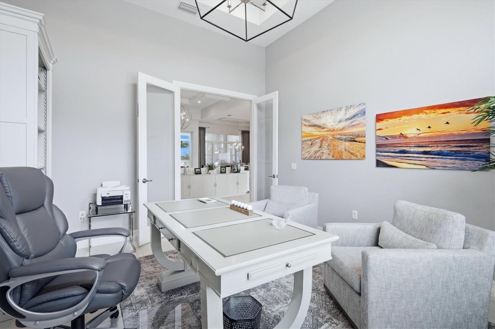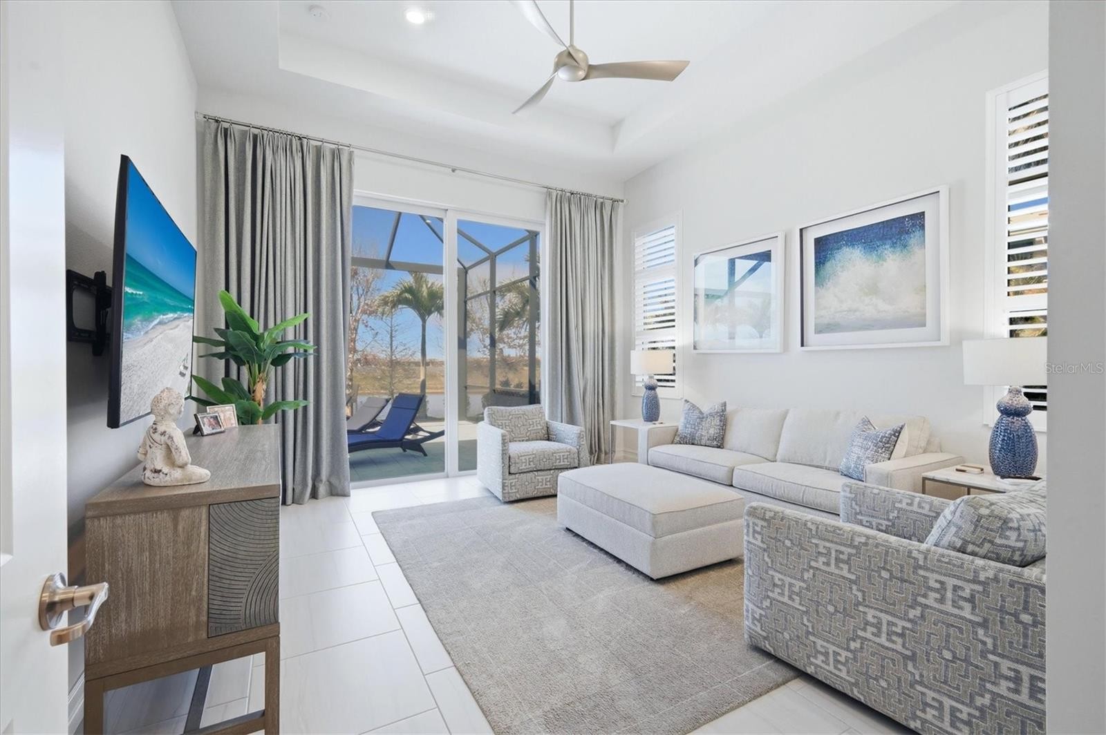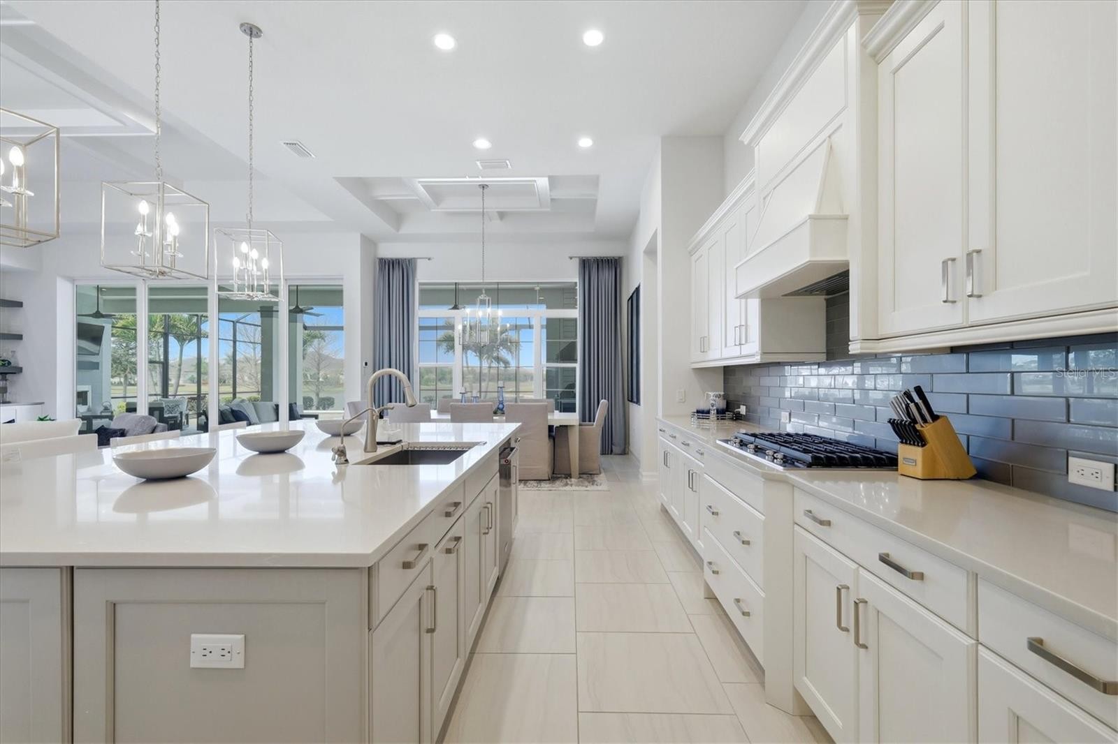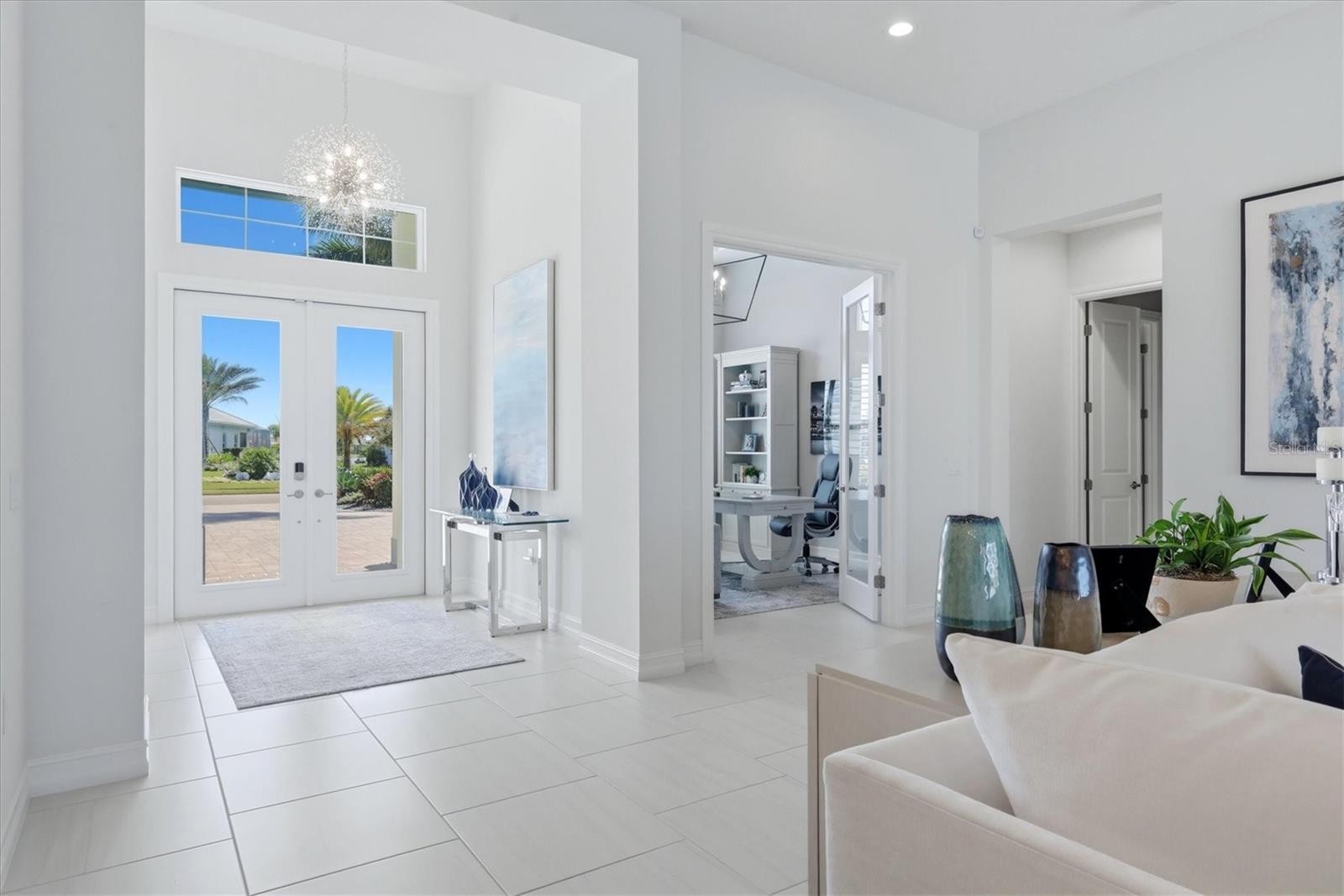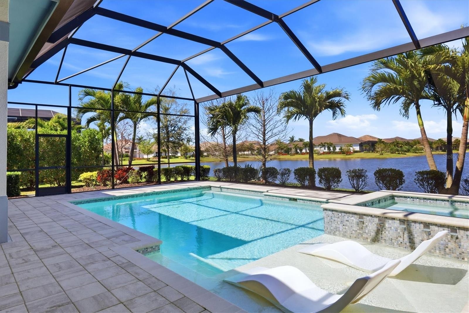 Under contract-accepting backup offers. Experience refined Florida living in this stunning Stock Merano model, a beautifully designed waterfront residence offering 3,600 square feet of luxurious living space. From the moment you step inside, you’re welcomed by a light and airy ambiance, enhanced by soaring ceilings, neutral porcelain tile flooring, elegant window treatments, and a soft, modern color palette throughout. Designed with both comfort and entertaining in mind, the expansive great room showcases impressive 14-foot coffered ceilings, custom owner-installed cabinetry with illuminated shelving, and a stylish dry bar complete with a wine cooler. Disappearing impact glass sliders seamlessly connect indoor and outdoor living, opening to the lanai retreat. The outdoor living space is truly exceptional - 868 square feet featuring a full summer kitchen, fireplace, spa, and a sparkling pool with a sun shelf—perfect for soaking up the Florida sunshine or unwinding fireside in the evening. All of this overlooks tranquil waterfront views, creating a private and serene backdrop for everyday living or entertaining guests. At the heart of the home, the gourmet kitchen is as functional as it is beautiful, offering two-toned soft-close cabinetry, quartz countertops, an oversized island with hidden storage, a spacious walk-in pantry, and premium stainless steel KitchenAid appliances. A formal dining area sits just off the kitchen, ideal for hosting gatherings. The thoughtfully designed floor plan includes three spacious bedrooms plus a versatile bonus room at the rear of the home, complete with a closet and sliding glass doors to the lanai—perfect as a fourth bedroom, media room, or guest suite. A light-filled study with glass French doors provides the ideal work-from-home space. Privately situated on its own wing, the luxurious primary suite offers direct lanai access through French doors, a comfortable sitting area, dual walk-in closets with custom built-ins, and a spa-inspired ensuite bath featuring dual vanities, a freestanding soaking tub, a walk-in shower, and abundant cabinetry. Two additional guest bedrooms each feature their own en-suite bathrooms, ensuring comfort and privacy for visitors. In total, the home offers three full baths plus a convenient pool bath that also functions as a powder room. Additional highlights include a three-car side-entry garage with epoxy floors, hurricane impact windows and doors, a Generac whole-house generator, and a reverse osmosis water filtration system. This exceptional waterfront property embodies the best of Florida luxury living—where elegant design meets effortless indoor-outdoor living in a home built for both relaxation and entertaining. Nestled in The Lake Club is an impressive 20,000-square-foot Grande Clubhouse, a hub of luxury amenities. Enjoy two pools, including a zero-entry pool with splash park, perfect for family fun. Indulge in poolside dining and unwind at the spa and fitness center offering guided workout classes, massages and facials by on-staff aestheticians. Sports enthusiasts will appreciate the tennis and pickleball courts with expert racquet pros available. Experience a vibrant social scene with a calendar filled with events. Inside the Grande Clubhouse, relax with billiards, pool tables, televisions, and game and card tables for various entertainment options. Don’t miss the opportunity to experience luxurious lakefront living at its finest in The Lake Club—where luxury, lifestyle, and location converge.