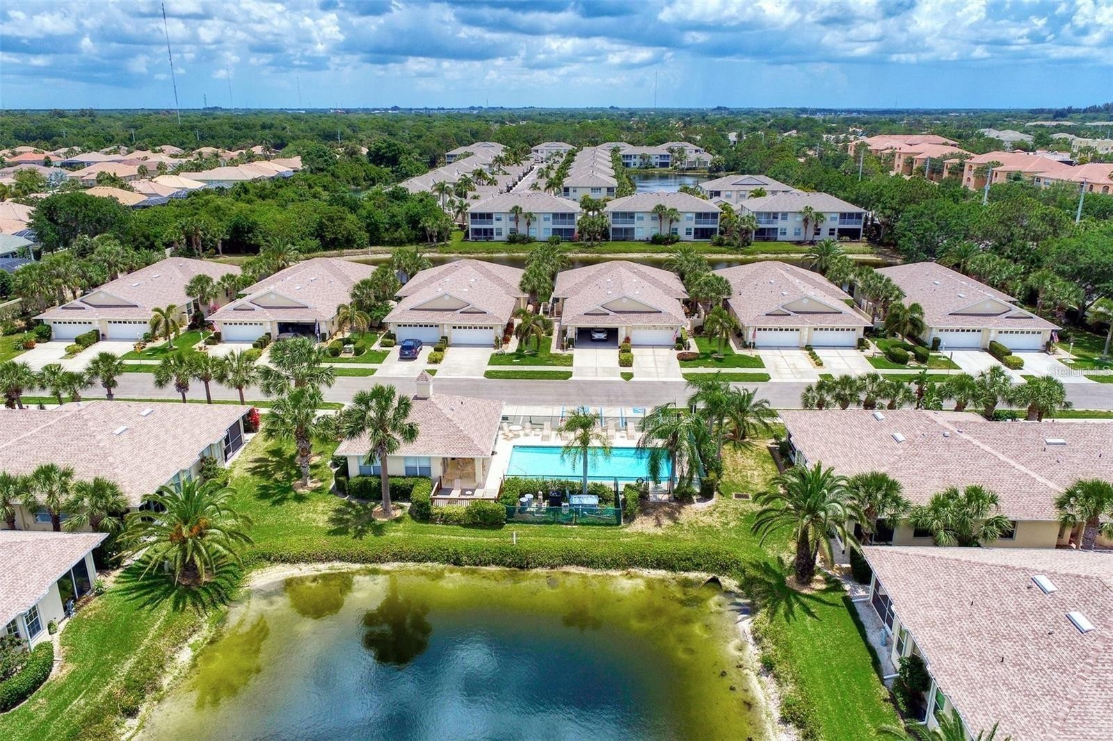 Attractive two bedroom, plus den, two bath, attached villa in the desirable Fountain View community. Your villa has been totally remodeled and comes with beautiful water views too! The kitchen was renovated in 2020 with new kitchen cabinets, with soft close doors and drawers, all new stainless appliances, including the washer and dryer, and under and over counter lighting. There is eating space in the kitchen and two large closet pantries in the hallway. There is new tile flooring throughout, ceiling fans were replaced and interior was recently painted. The floor plan upon entry is a living room and then into your Florida Room, with impact sliders, looking out onto the lake. Besides impact sliders, all windows were replaced too in 2018. The master bath and guest bathrooms were renovated in 2023, including tiled shower areas, vent fans and extra wall lighting. A new roof was installed in 2021, along with the gutters, facia and new solar domes in the den, kitchen and laundry room. AC system was replaced in 2024. This is a small community of 48 homes that offers a heated pool and clubhouse. Ground maintenance is included in your low quarterly fee. This is a great location within 4 miles to charming downtown Venice and the beautiful beaches and Gulf of America. Come see this great buy today!