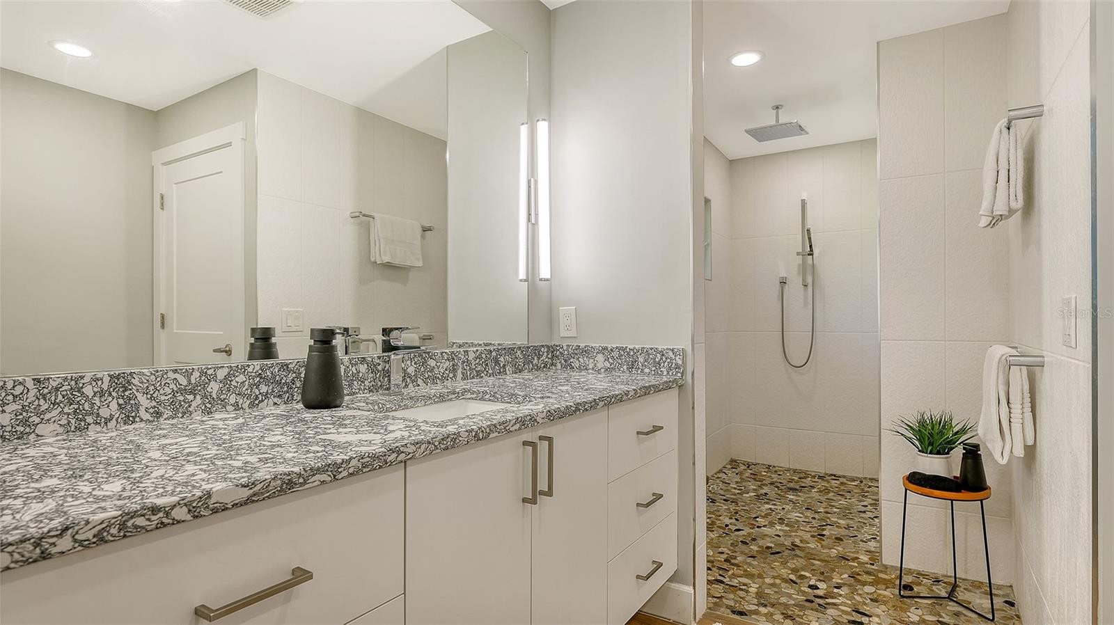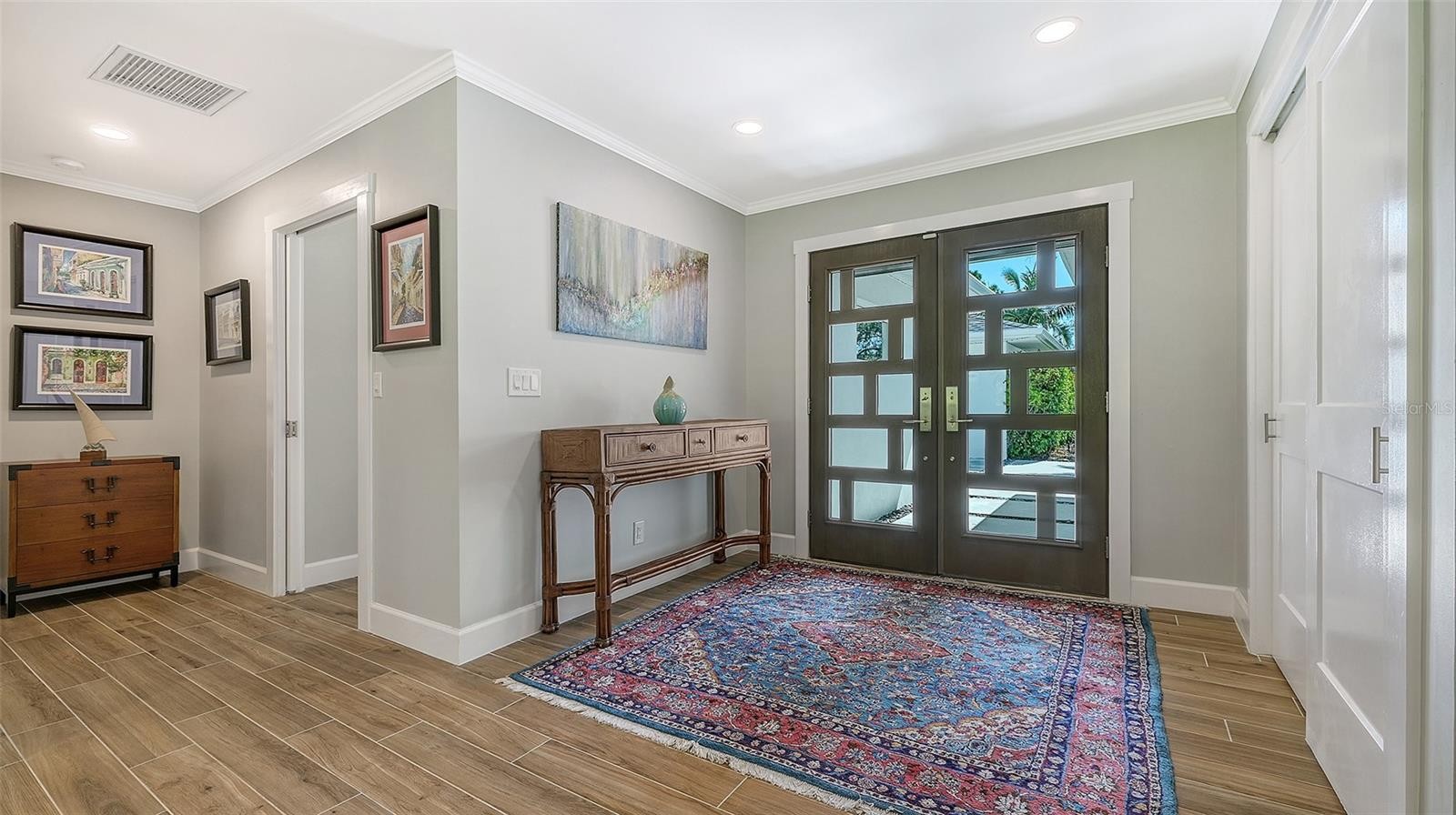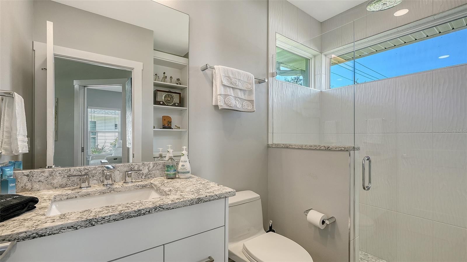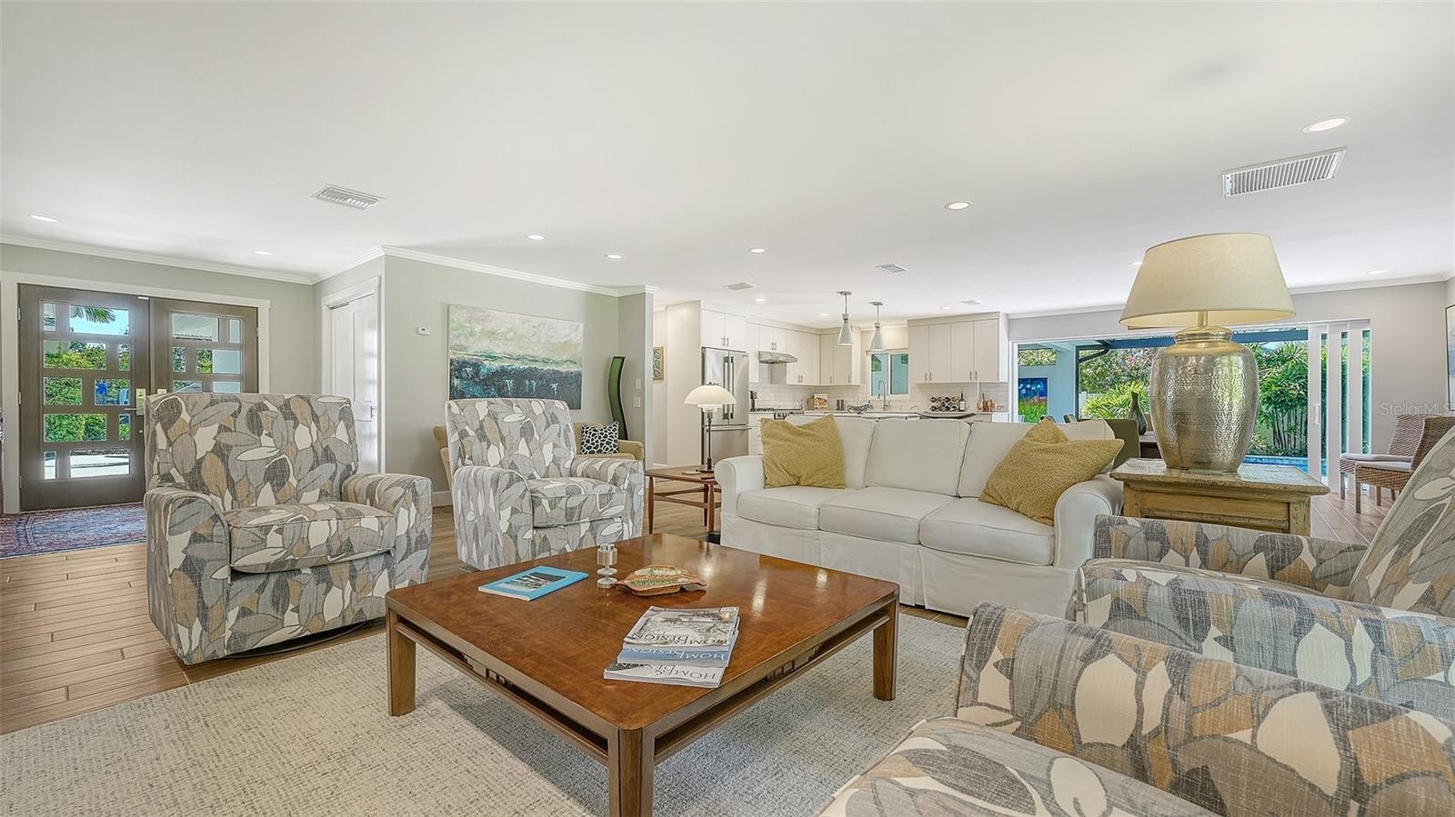 Positioned in highly desirable Oyster Bay Estates in the West of Trail area, this beautifully rebuilt 4-bedroom, 3.5-bath home sits on a high-and-dry spacious 1/3-acre lot in flood zone X where no flood insurance is required. Completely gutted and rebuilt from the studs in 2021 this residence is like new. The property includes a newly-built 484 sq ft detached guest house/ADU with private entrance. Lush, mature landscaping provides privacy and curb appeal to this lovely home. Relaxing Florida living is ensured with a covered luxury outdoor living space including an outdoor kitchen with grill, cooktop, refrigerator and sink ideal for entertaining and family life. Also part of the outdoor living space is the inviting heated saltwater pool and spa with travertine tile deck and new pool cage. The new open-concept kitchen boasts Dekton countertops, a light-wood island with built-in drawers, a gas range and closet pantry. All the bedrooms include ensuite bathrooms. The primary suite offers a custom walk-in closet and spa-style bath with dual vanities, quartz countertops, large walk-in shower, and Toto water closet. The A/C system was replaced in 2025 and provides individual thermostats in each bedroom for comfort. Other new features include wood-look tile flooring throughout, impact windows and doors, new roof, replaced PVC plumbing drains, updated electrical with new panel, sprayed insulation, smooth finished walls & ceilings, tankless water heater, natural gas hookup, new well and irrigation system, and $100,000 in upgraded landscaping. The oversized 2-car garage features epoxy flooring and an impact garage door. Surveillance cameras and security lighting is included for your well-being. Set back from the road, this home offers a quiet and private ambiance. Residents in Oyster Bay enjoy walking their dogs through the lovely treed neighborhood, biking to tennis, dining & the marina at the Field Club, and kids play or ride to Red Rock Park down the street. The home is in an excellent location just minutes to Siesta Key and downtown Sarasota, and walking distance to schools, Trader Joe’s, Publix, restaurants, and cafes. This is a fabulous opportunity!