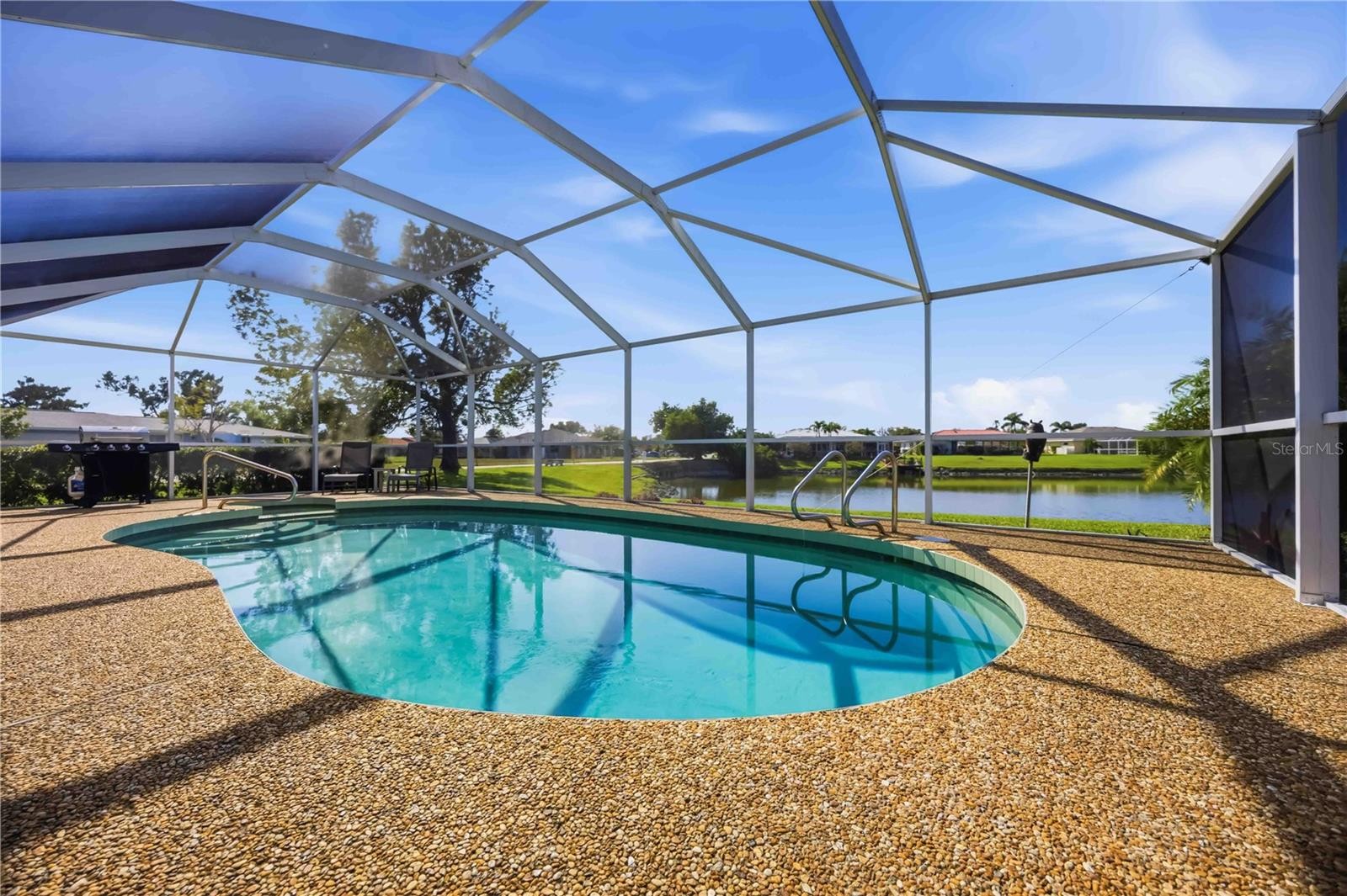 Welcome to your private slice of paradise on breathtaking Claw Lake. Tucked away on a tranquil cul-de-sac, this beautifully maintained pool home showcases a meticulously cared-for yard, spectacular sunset views, and serene waterfront living—offering the ultimate Florida lifestyle. Experience the perfect blend of comfort and thoughtful design, in this beautifully maintained 2-bedroom, 2-bath pool home located in a prime area of Venice. The home features a spacious and versatile floor plan designed for both everyday living and effortless entertaining. Multiple living areas—including a large living room and an expansive family room—create flexible spaces for gathering, relaxing, or hosting guests. The heart of the home includes a bright kitchen with adjacent breakfast area with counter space, seamlessly connected to the formal dining room, making entertaining both elegant and convenient. Updated luxury vinyl plank flooring throughout the main living areas enhances the home's modern appeal, while the freshly painted interior provides a light and inviting atmosphere. The private primary suite offers generous proportions along with a walk-in closet and en-suite bath, creating a comfortable retreat. A well-positioned guest bedroom and full bath provide privacy for visitors. Step outside to enjoy one of the home’s standout features—a large covered patio overlooking the pool, ideal for morning coffee, afternoon relaxation, or evening gatherings while taking in spectacular sunset skies. The outdoor space is protected by a newly replaced and reinforced pool cage (2023), creating a true Florida outdoor living experience. Recent improvements provide peace of mind, including: • New roof (2025) • Updated plumbing from the home to the street • Luxury vinyl plank flooring in main living areas • Interior paint (2024) Located in an X flood zone with a low HOA, the property offers both security and value. The home is ideally situated just minutes from shopping, grocery stores, and everyday conveniences, with easy access to I-75 and the beaches, dining, and charm of Venice Island. This home presents an exceptional opportunity to enjoy relaxed Florida living with modern updates, a spacious layout, and a beautiful poolside setting.