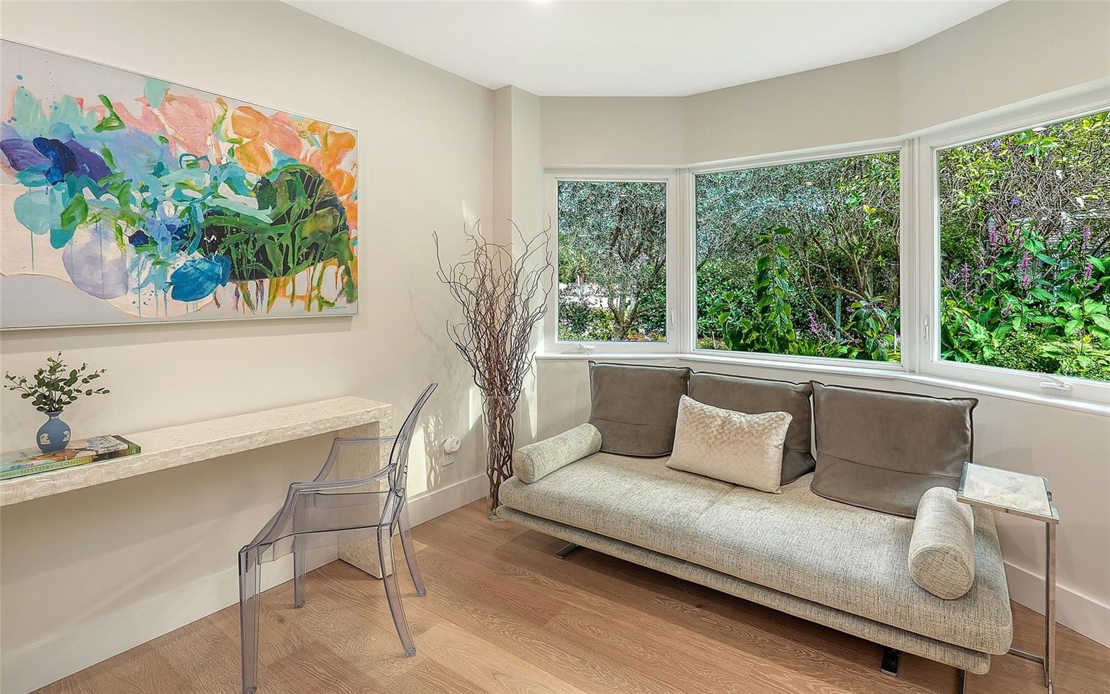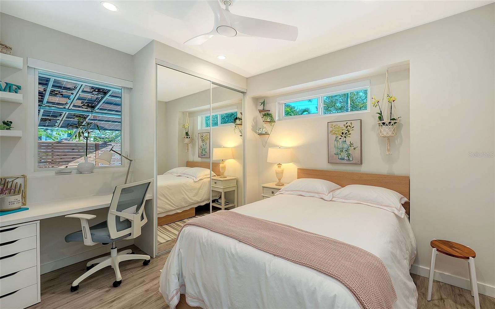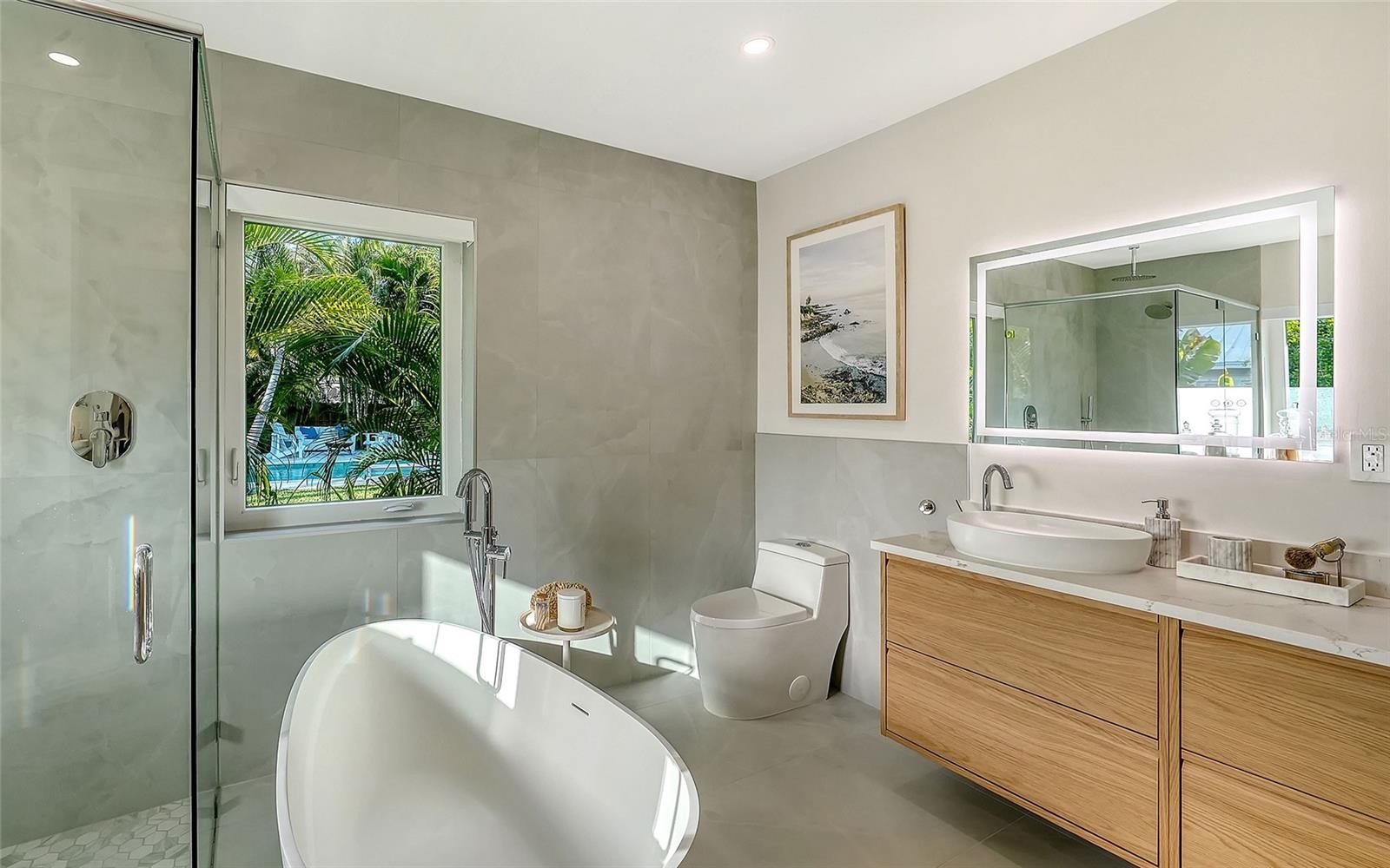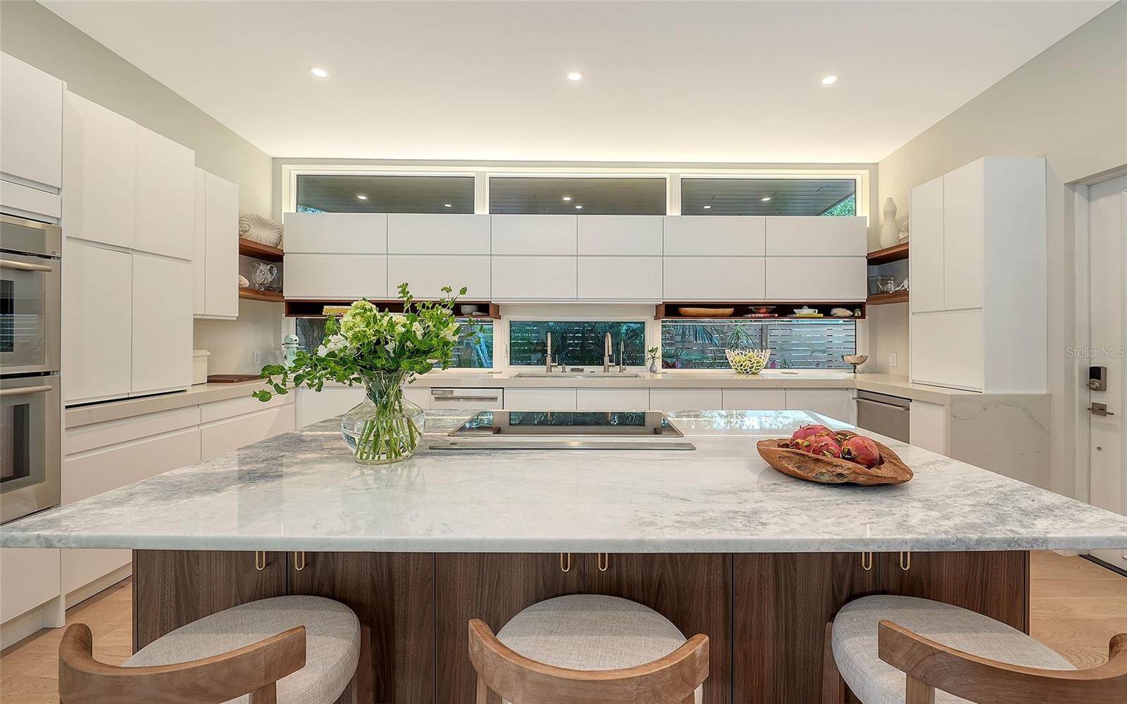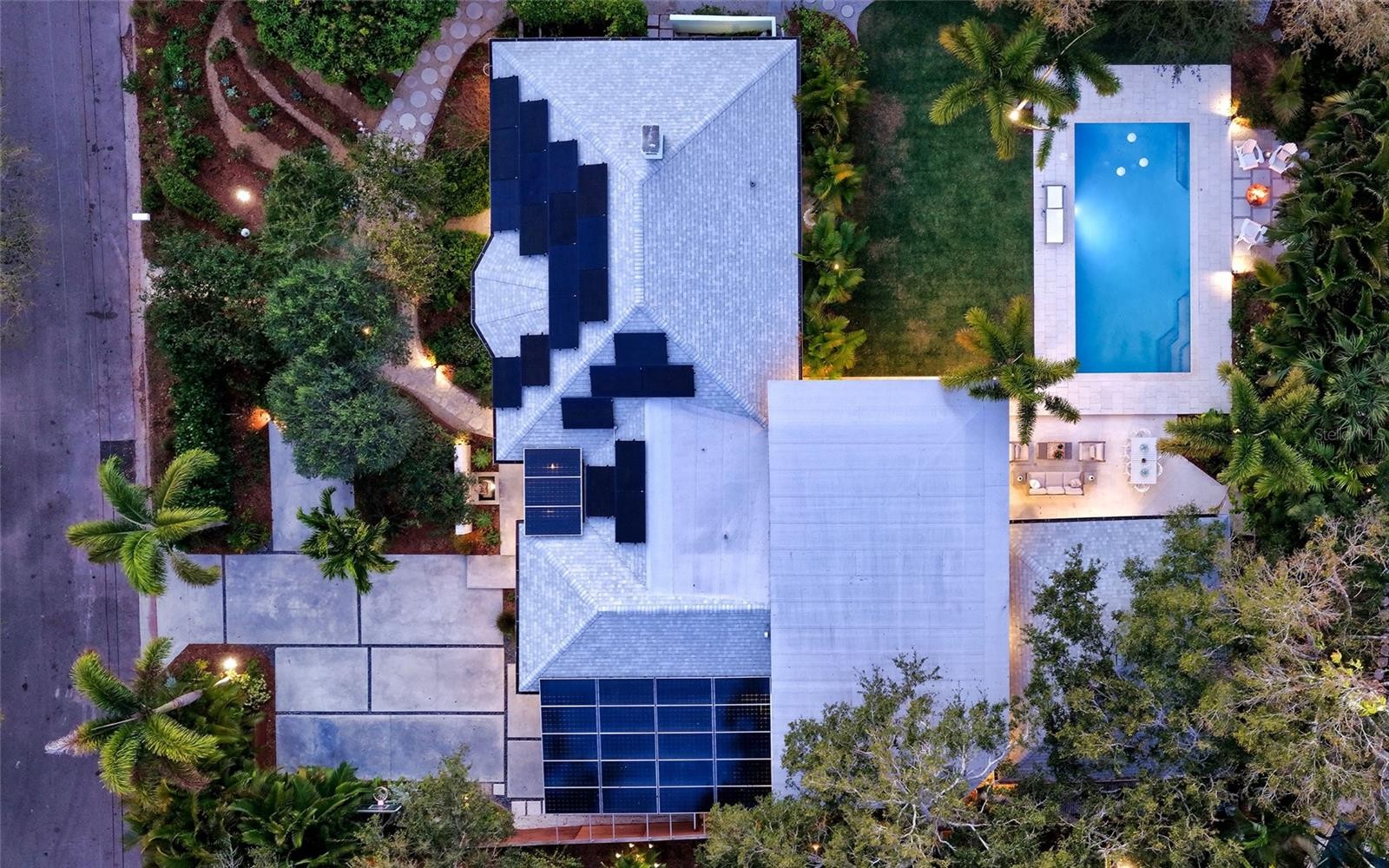 If you’ve been searching for a true Sarasota West of Trail oasis—quiet, private, walkable, and beautifully updated, this McClellan Park residence brings together the features discerning West of Trail buyers value most: a large .34-acre lot, a fully renovated home with a 2024 addition, a detached guest house, a heated saltwater pool, and energy independence...all on a private dead-end street minutes from the best of Sarasota. Originally built with timeless character, this in-city sanctuary has undergone a comprehensive back-to-studs renovation and is up to current Florida building code, with an official effective build date of 2013. A classic foundation, refined with modern upgrades and standards. The main home spans 3,100 square feet with three bedrooms and three baths, fully customized with all the details valued by today's buyers. Bonus rooms include an office/den, plus a sitting room in the primary suite. The striking 2024 addition, designed by Jimmy Thornton, features an open-concept great room, dining and kitchen with zero-corner, fully pocketing sliding glass doors, a dramatic architectural detail that opens the living space completely to the pool and outdoor areas. The kitchen is a true showpiece. It features high ceiling, super-organized European cabinetry with illuminated interiors, high-profile quartz and marble countertops, a glass window backsplash, and clerestory windows. Custom walnut open shelving add artistic flair. Appliance garages, interior drawers, workstation sink with two faucets, and oversize eat-in island add high-end functionality. The outdoors is incredibly lush and functional for an in-town location. Outdoor living rooms, fruit trees, trellises, native flowers, and an expansive food garden...plus a tree house for charm and fun. A heated saltwater pool anchors the backyard, while the detached guest house adds flexibility for recreation, home office, studio or guests.
