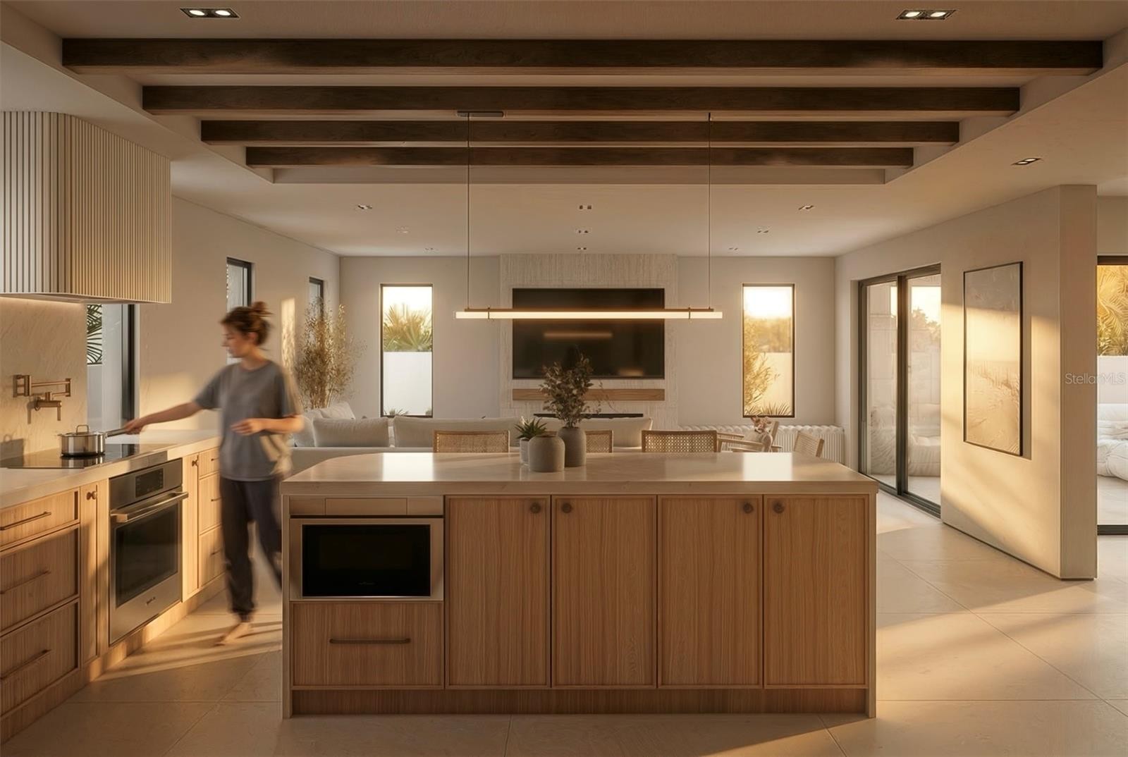 Under Construction. Brand new construction with ultra-luxury finishes, estimated for completion July 2026. This is the one. A statement home in one of Sarasota’s most desirable “West of the Trail” locations, designed with intention, elevated finishes, and a level of detail you simply don’t see every day. Be the first to live in it! Featuring 3 bedrooms, 2.5 bathrooms, plus a separate detached 1 bed, 1 bath guest house/in-law suite, this property offers flexibility, privacy, and true lifestyle living. From the moment you walk in, you’re welcomed by a stunning foyer featuring Taj Mahal quartzite and custom solid wood cabinetry, setting the tone throughout. Wide-plank oak flooring runs throughout the home, complemented by designer lighting, double recessed lighting, and curated finishes at every turn. The kitchen is a true showpiece—featuring Taj Mahal quartzite countertops, custom oak cabinetry in a soft cashmere tone, LED strip lighting, 3’ floating shelves with integrated lighting, a statement hood, oven and cooktop, refrigerator, built-in microwave island, spice rack, and a corner cabinet with a built-in lazy Susan. The island showcases sleek slat panel detailing, and the wine feature will be upgraded to a waterfall design. The living space is equally impressive, anchored by a Dimplex deluxe built-in electric fireplace with logs, framed by a custom American walnut wall unit, travertine stone, and metal detailing. The primary suite is a true retreat, featuring custom sand-grey paneling with integrated LED lighting, floating solid wood shelving with drawers, and a fully built-out walk-in closet with oak cabinetry and LED lighting. The spa-inspired primary bath showcases Taj Mahal quartzite countertops, a floating vanity with dual sinks, brushed gold fixtures, and a walk-in shower with dual shower heads including a rainfall feature. Step outside and it only gets better. The backyard is designed for true resort-style living, featuring a full infinity-edge pool with integrated jacuzzi, a fully equipped outdoor kitchen with BBQ and gazebo, perfect for entertaining. Take it to the next level—literally—with a rooftop terrace complete with a built-in bar with mini-fridge and private mini golf course, offering the perfect setting to enjoy sunsets and sweeping views of the beach and Sarasota skyline. Additional highlights include custom oak built-ins with LED lighting in the garage, designer light fixtures and wall sconces throughout, brushed gold plumbing and bathroom fixtures, Bosch appliances, Avanti wine fridge, and Samsung Bespoke washer & dryer. NO HOA. The location is unmatched!! 10 minutes to Siesta Key Beach, one of the top-rated beaches in the U.S. known for its white-quartz sand and turquoise water, and minutes to Turtle Beach. Just 5 minutes to Southside Village, a charming, walkable area with coffee shops, wine bars, and boutique dining, and 6 minutes to The Crossings at Siesta Key and Morton’s Gourmet Market. Downtown Sarasota is 10 minutes away, while St. Armands Circle and Lido Key Beach are approximately 15 minutes away. Sarasota Memorial Hospital is also just 5 minutes away. This home delivers the perfect balance of luxury, design, and lifestyle, complete with a private guest residence and resort-style outdoor living, making it an exceptional opportunity you don’t want to miss. All photos are renderings and virtually staged.