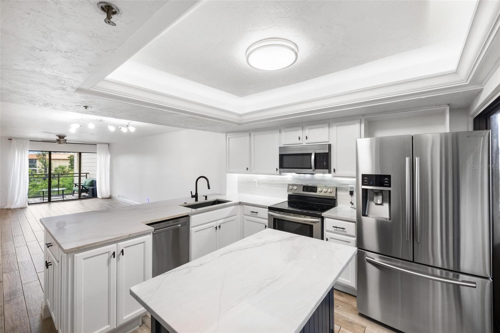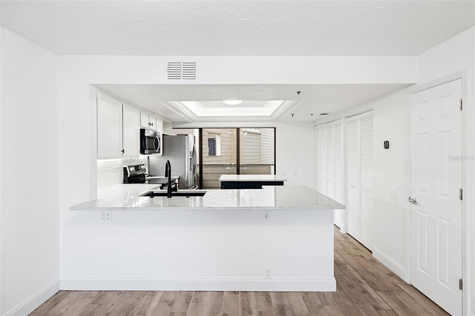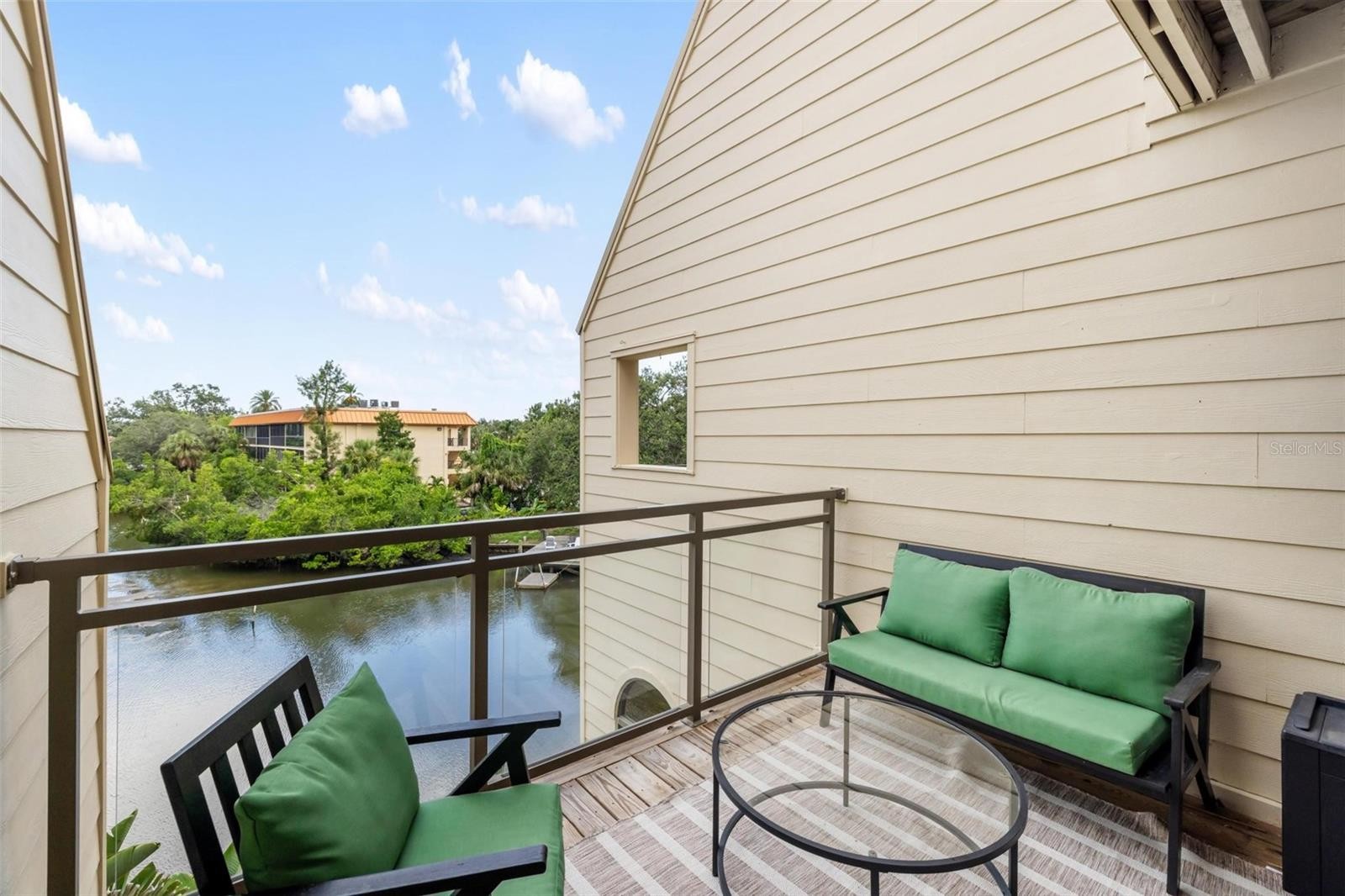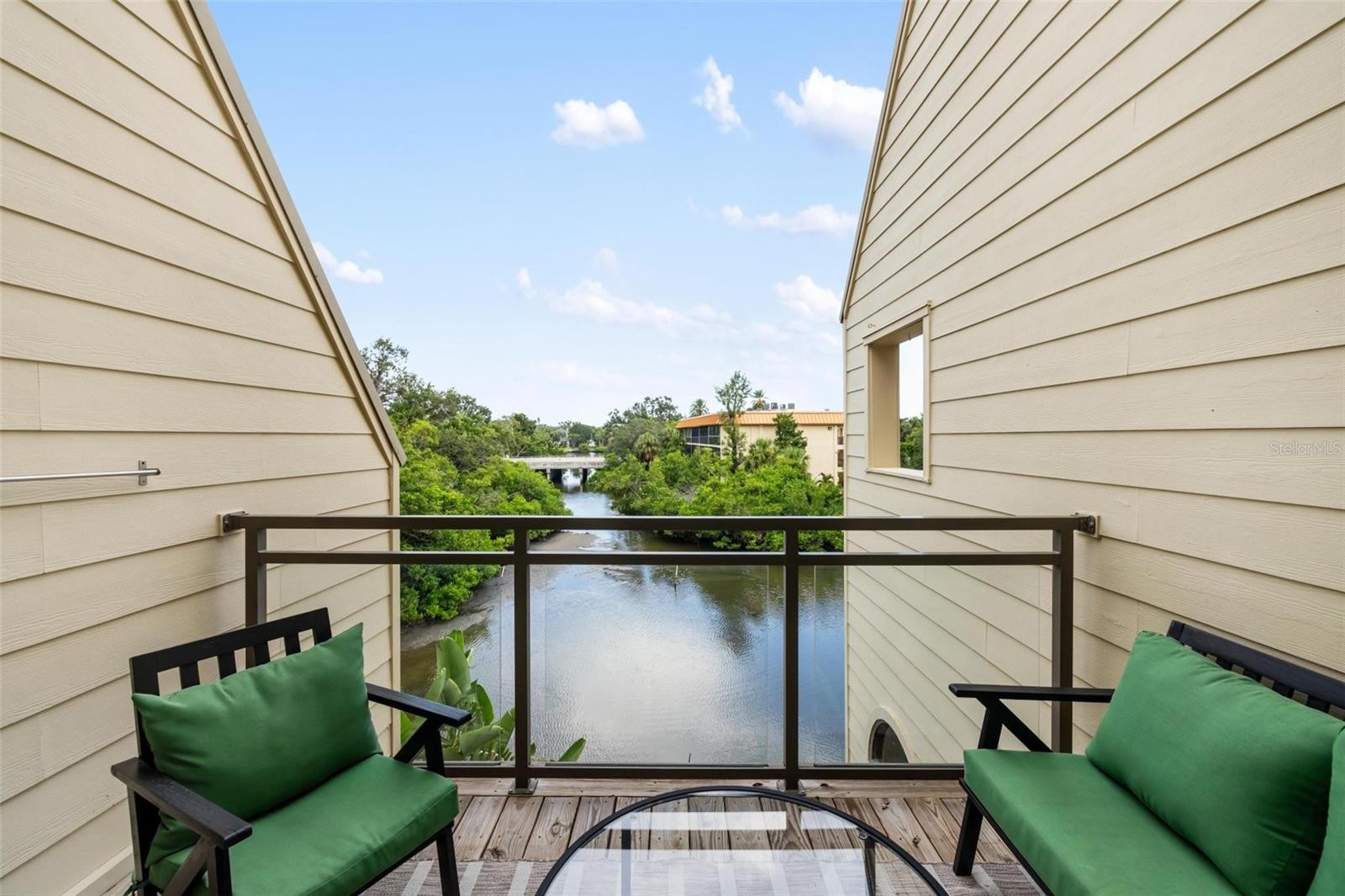 Hudson Oaks offers true waterfront living in the heart of downtown Sarasota, set in a lush and tranquil setting with water views and boating access. This beautifully updated 2-bedroom, 2-bath, two-story condo is part of a hidden-gem community tucked between historic Laurel Park and vibrant Burns Court. You’re just minutes from Sarasota’s top restaurants, boutique shops, Selby Gardens, the Bayfront, and a short ride to Lido Beach and St. Armands Circle. Hudson Oaks provides a blend of waterfront serenity and downtown convenience. Residents enjoy access to private boat docks, a kayak launch, a swimming pool, a grilling area, and a pedestrian bridge that connects directly to Laurel Park. The Hudson Bayou is a protected waterway with small-boat access to Sarasota Bay—ideal for kayaking, paddleboarding, or simply taking in the views. Inside, the home features a split-bedroom layout with both bedrooms located upstairs for privacy. The primary suite includes a walk-in closet and a private covered balcony with beautiful water views. The en-suite bathroom has been tastefully renovated with an upgraded vanity and a walk-in tiled shower with a glass door. The second bedroom is also spacious and filled with natural light. A fully updated guest bathroom with a modern vanity and tiled walk-in shower completes the upper level. Downstairs, the open-concept living and dining areas are bright and airy, with large sliding glass doors leading to a balcony that overlooks the bayou—perfect for relaxing or entertaining. The updated kitchen features granite countertops, pull-out shelving, stainless steel appliances, a subway-tile backsplash, and a pantry closet. A large center island offers additional prep space and room for casual seating. The layout is open to the living area and provides direct access to the fully screened-in balcony off the kitchen with a peaceful pool view, offering a separate outdoor space to enjoy. Recent upgrades include a new roof (2020), kitchen renovation (January 2025), and refreshed bathrooms with new vanities, sinks, faucets, and toilets. All windows and sliding doors come with clear hurricane panels, which are included in the sale. This condo also comes with the largest storage room in the building—perfect for bikes, beach gear, or seasonal items—and a covered carport with an EV hookup, exclusive to this unit in Building B. The HOA is financially strong and fully compliant with Florida’s updated SIRS (Structural Integrity Reserve Study) requirements, with a licensed reserve study specialist having completed the analysis. Schedule your private showing today and experience this rare opportunity for waterfront living in downtown Sarasota.