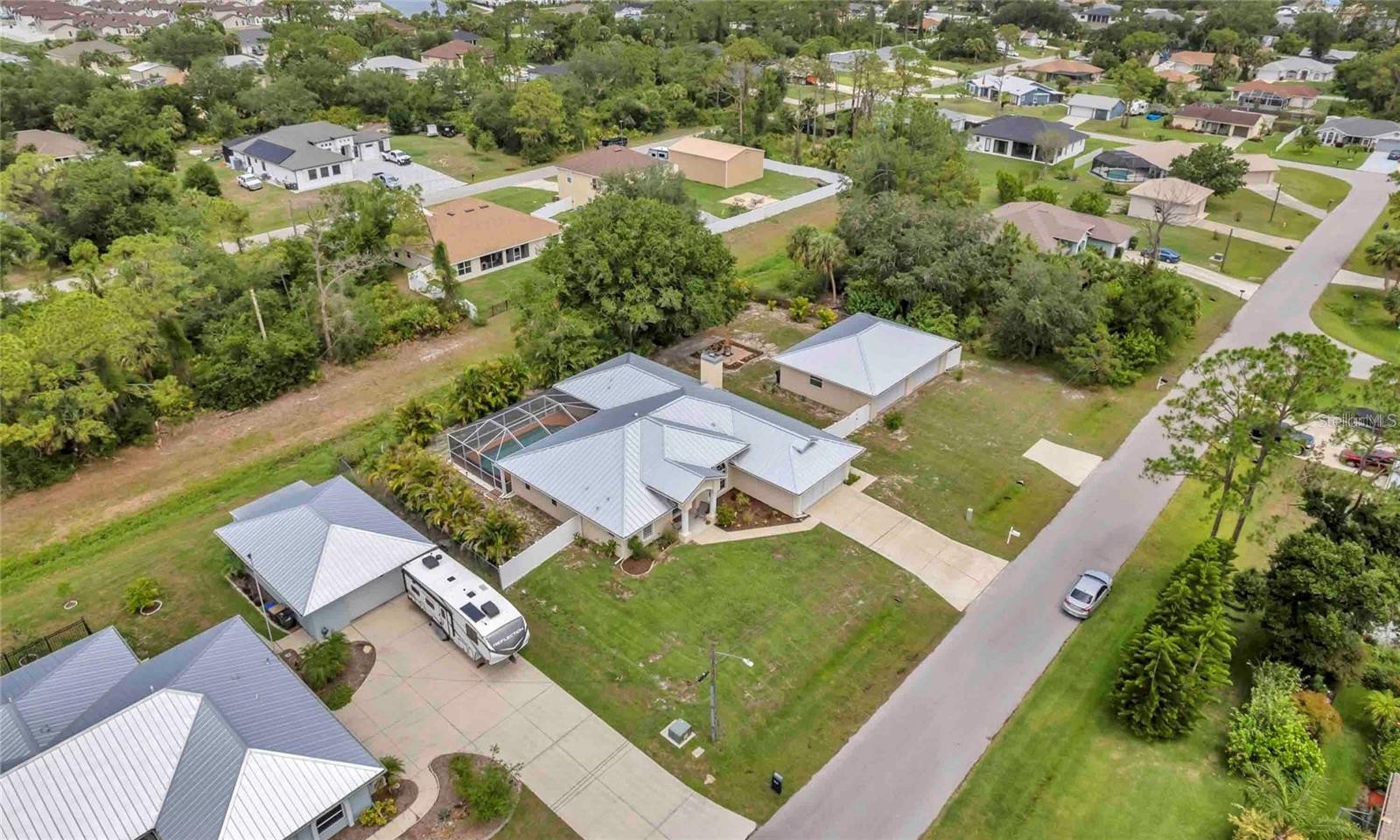 Welcome to your Florida retreat! Tucked away on an oversized lot with mature tropical landscaping in sunny North Port, this spacious 4 bedroom, 2 bathroom pool home offers that relaxed, coastal lifestyle you’ve been dreaming of. From the moment you open the door, you’re welcomed by tall ceilings, tons of natural light, and an immediate view of the heated pool — the kind of first impression that makes every day feel like a getaway. With over 2,300 square feet of clean-kept living space, this home was designed for comfort, functionality, and good vibes. The kitchen has been fully remodeled and shines with upgraded granite countertops & stainless steel appliances,— perfect for everything from quick breakfasts to weekend hosting. Ceramic tile flows throughout the home, keeping things cool, low-maintenance, and cohesive. The primary suite is a total retreat, complete with custom walk-in closets and a recently remodeled walk-in shower that gives off spa energy. Two additional bedrooms provide space for guests or family, while the dedicated office offers a quiet, tucked-away spot for working from home, creative projects, or just closing the door and having some “you time.” Step out back, and your Florida lifestyle kicks into full gear — the heated pool is the centerpiece of a backyard built for both relaxing and entertaining. Surrounded by lush, mature landscaping, a paver deck fire pit area, and a fully fenced yard, there’s room for the whole family, pets, hammocks, and good times under the stars. Saving the best for last - for those who need space to tinker, create, or store all the toys — the detached, air-conditioned 4-car garage with impact-resistant doors checks all the boxes. Whether it’s your workshop, gym, or weekend escape space, it’s ready to go. And yes — it gets even better: This home is not in a flood zone — so no flood insurance required There’s no HOA and no CDD — enjoy your space and your freedom The split floor plan offers privacy and flow The home has been meticulously maintained, and you can feel the pride of ownership in every detail Just a short drive to shopping, dining, nature trails, golf, and the Gulf Coast’s best beaches Whether you're lounging by the pool, working in your home office, or relaxing around the fire pit at sunset, this home offers the perfect blend of chill, charm, and space to truly live. Come experience what easy Florida living really feels like.