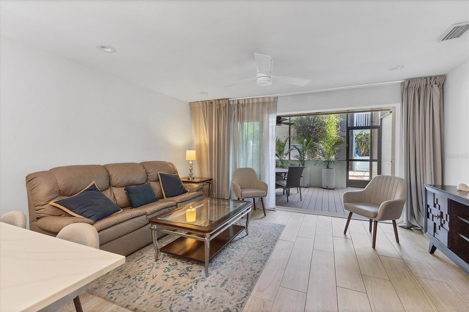Price Just Reduced! Steps from the bridge to world-famous Siesta Key Beach, this beautifully updated two-story end-unit townhouse features impact sliding doors and windows, 2025 A/C, and all solid-surface flooring throughout. Offering 2 bedrooms, 1.5 baths, and 1,042 sq. ft. of comfortable living space, the first floor includes an open layout with a bright living area and a modern kitchen equipped with stainless steel appliances and quartz countertops. A private screened patio overlooks a tranquil courtyard and provides easy access to the community’s heated pool. Upstairs, the spacious primary bedroom offers excellent closet space and shares a full bath with the guest room. Additional highlights include in-unit laundry hookups, two assigned parking spaces, and comprehensive renovations such as updated wiring, plumbing, porcelain tile flooring, and contemporary fixtures. Unit is rented until February 28th 2026.. Guest Stay Transfers with sale of Townhouse. With only 15 units in the complex and a highly desirable Sarasota location close to shopping, dining, and Siesta Key Beach, this move-in-ready townhouse is perfect as a full-time residence, vacation getaway, or investment opportunity.