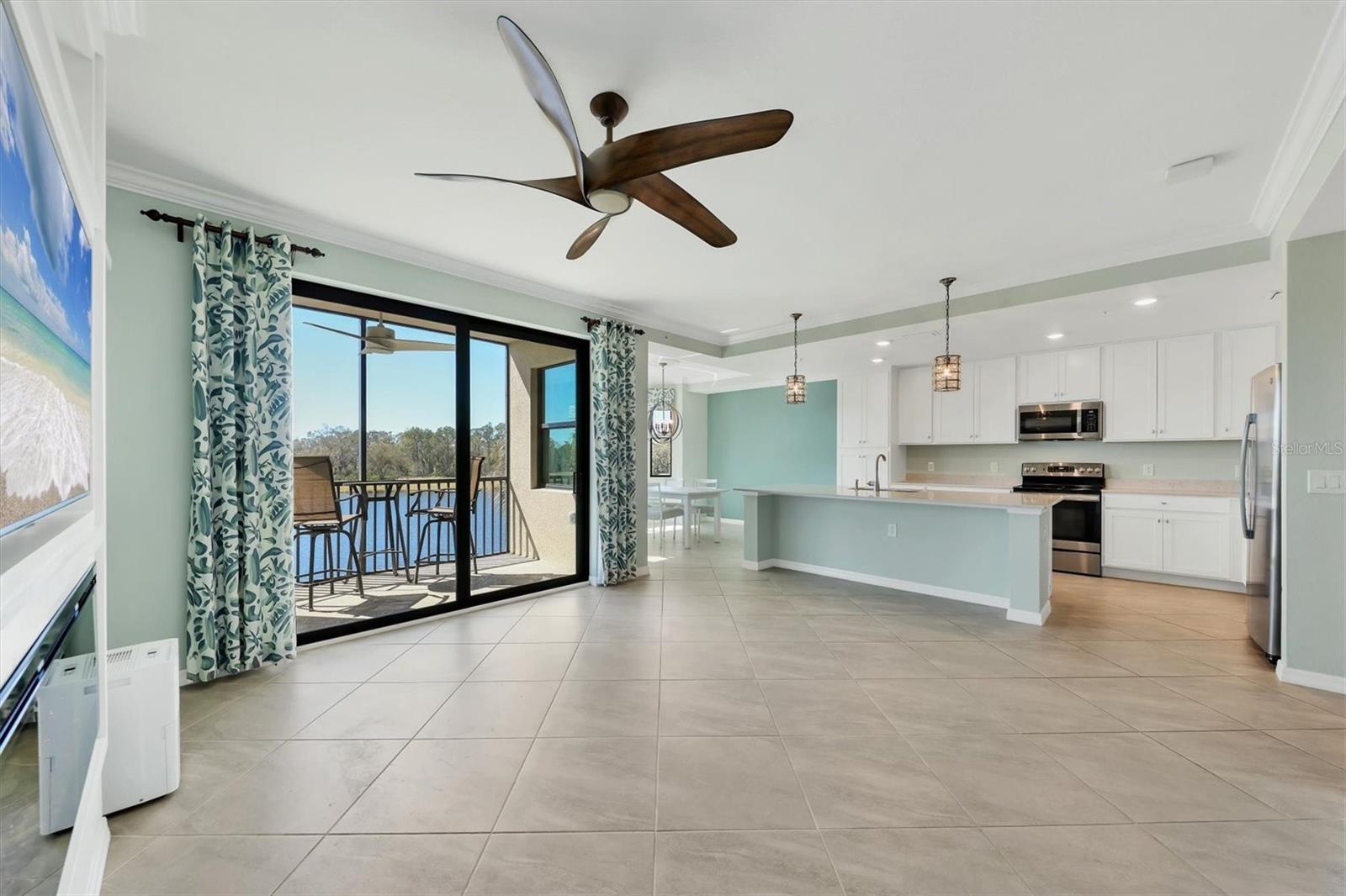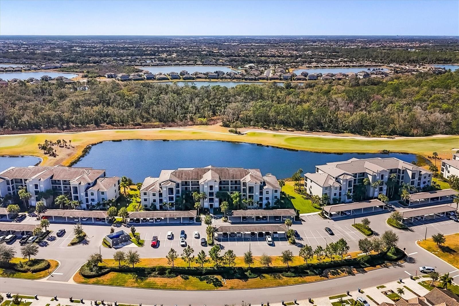 This highly sought-after Birkdale condominium truly shows better than a model home. From the moment you step inside, you’re immediately drawn to the spectacular views—water, golf course, and preserve—paired with breathtaking sunrise and sunset skies. Florida wildlife is part of everyday life here, with waterfowl and native species providing a beautiful, ever-changing backdrop. Professionally designed and decorated, this open-concept smart home features a custom paint palette, tailored drapery and valances, LED lighting, soaring 9-foot ceilings, and crown molding throughout. The great room is anchored by a custom handcrafted built-in fireplace, complemented by a striking 62-inch Minka Aire Artemis ceiling fan. The kitchen offers generous storage, stainless steel appliances, quartz countertops, and elegant Arhaus® La Cage pendant lighting over the island. Just off the kitchen, the separate dining area comfortably accommodates dinner guests and is highlighted by a stunning 30-inch Criterium aged brass six-light pendant with a ceiling medallion. The primary bedroom easily fits a king-size bed and features a walk-in closet enhanced with custom shelving and storage by Closets by Design. The second bedroom is thoughtfully designed to maximize space and flexibility, featuring a custom-built queen-size Murphy bed, wraparound quartz desktop, and abundant storage—perfect for working from home, relaxing, or hosting guests. This residence includes one assigned covered parking space conveniently located near the entrance, along with an extra-large storage area directly across from the unit—an uncommon and highly desirable feature not standard in most condominiums. Elevator access makes this home easily accessible. Located within gated Lakewood National Golf Club, residents enjoy maintenance-free living and an exceptional array of amenities, including 36 holes of Arnold Palmer–designed golf, a zero-entry heated resort-style pool with waterfall and lap lanes, a poolside Tiki Bar and Café, fitness center with group exercise classes, full-service on-site spa, eight lighted Har-Tru tennis courts, pickleball, bocce, multiple satellite pools, and more. 28,000-square-foot clubhouse features expanded patio space, fine and private dining, conference and event areas, and enhanced men’s and women’s locker room lounges. Set in Lakewood Ranch—year after year ranked the No. 1 master-planned community in the U.S.—this home is surrounded by 50 square miles of dining, arts, shopping, entertainment, nature, and recreation, schools, medical and dental care of all kinds, offering something for every age and lifestyle yet a short drive to top beaches and SRQ.