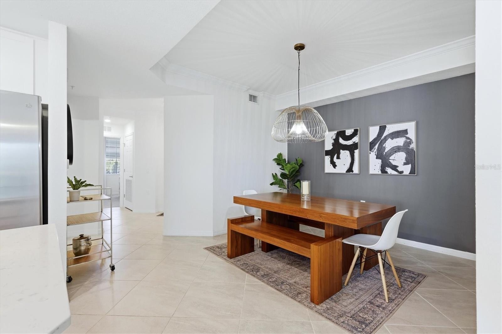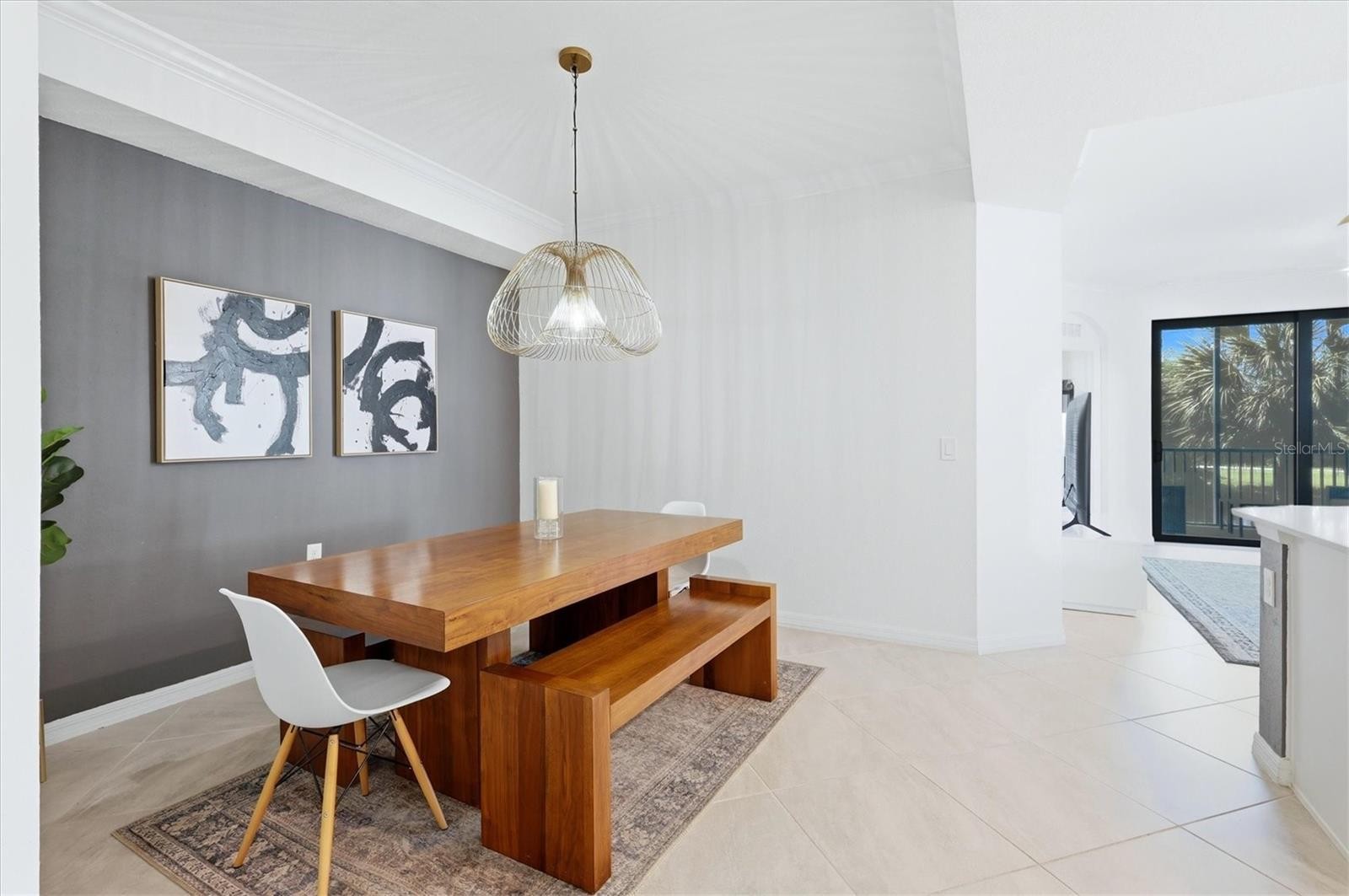 Welcome to this beautifully appointed second-floor condominium in the highly sought-after community of Lakewood National Golf Club, ideally located in the heart of Lakewood Ranch—consistently ranked as the nation’s top multigenerational community. This light-filled 3-bedroom corner residence offers an exceptional vantage point, capturing both sweeping golf course views of the 16th hole on the Piper course and expansive water vistas from the main living areas. The desirable end-unit positioning enhances privacy while allowing for abundant natural light throughout the home, creating a bright and inviting coastal atmosphere. Thoughtfully upgraded, the interior features impact-rated windows and doors for added peace of mind, along with refined finishes including crown molding, tile kitchen backsplash, and stylish lighting. The open-concept layout is perfectly suited for both everyday living and entertaining, seamlessly blending comfort and functionality. Offered turnkey furnished, the home is curated with high-quality pieces reminiscent of Pottery Barn, West Elm, and Crate and Barrel—allowing for an effortless move-in or immediate rental opportunity. Additional conveniences include covered carport parking and a private storage unit located just outside the front entry. Ownership within Lakewood National includes bundled golf on two championship courses designed by Arnold Palmer, as well as access to an unmatched resort-style amenity package. Residents enjoy a grand clubhouse with full-service dining, a resort-style pool with cascading waterfalls and tiki bar, a state-of-the-art fitness center with group classes, a full-service spa, Har-Tru tennis courts, pickleball courts, and multiple satellite pools throughout the community. A vibrant, year-round social calendar further enhances the lifestyle experience. Recognized as one of the area’s premier golf destinations, Lakewood National proudly hosts an annual stop on the Korn Ferry Tour, adding to its prestige and appeal. Whether you are seeking a full-time residence, seasonal retreat, or income-producing investment, this property delivers low-maintenance living paired with a truly elevated Florida lifestyle—just minutes from University Town Center, fine dining, shopping, and everything the Lakewood Ranch area has to offer.