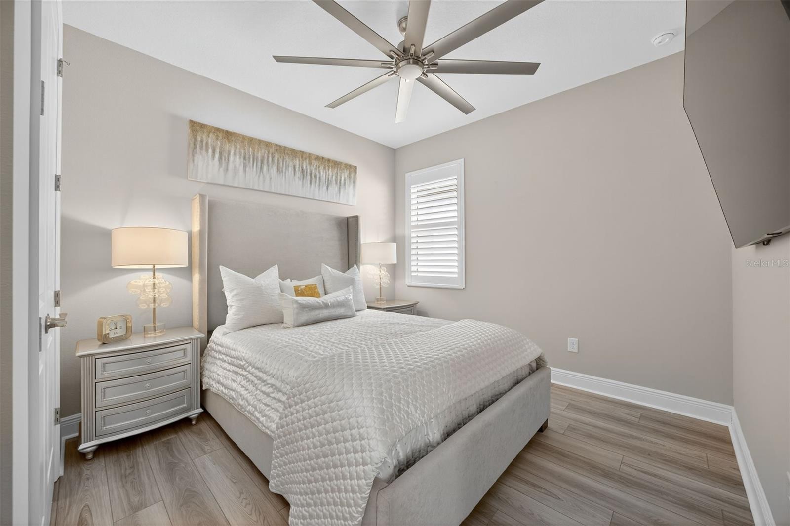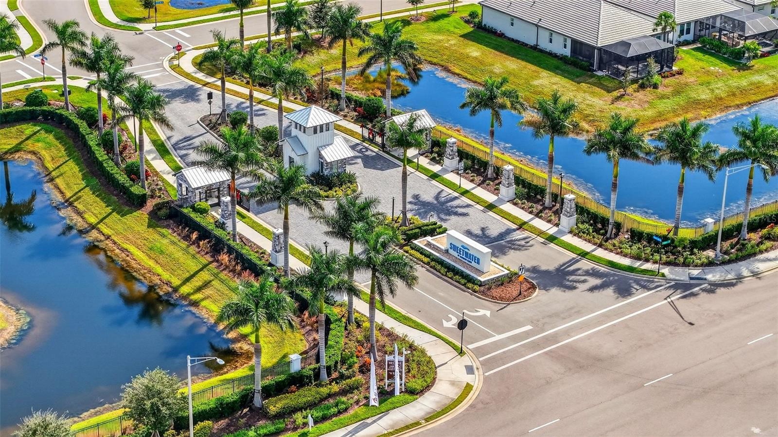 Welcome to a home that offers an exceptional blend of sophistication, comfort, and serene Florida living, nestled within the gated enclave of Sweetwater at Lakewood Ranch. This elegantly appointed single-story residence is defined by thoughtfully curated upgrades, tranquil pond views, and beautifully enhanced indoor-outdoor living. Step through the custom waterdrop-design glass front door into a sunlit interior featuring luxury vinyl plank flooring, 8-foot doors, and a tray ceiling package that adds architectural elegance throughout. Freshly painted walls and ceilings create a bright, modern feel, while new insulation and thermostat enhancements add comfort and efficiency. The open-concept great room flows seamlessly to the screened, covered lanai, where a cozy fireplace, built-in TV wall, and sparkling saltwater pool with six integrated hot tub jets create the perfect private retreat overlooking the peaceful pond. The gourmet kitchen is a stunning centerpiece, showcasing quartz countertops, LED under-cabinet lighting, Uttermost designer pendants, an upgraded GE Profile gas range, a sleek upgraded faucet, and a spacious walk-in pantry. Throughout the home, 3-inch plantation shutters, custom chandeliers, and 72-inch fans with lights in every room and on the lanai add style, comfort, and ambiance. The primary suite offers a luxurious escape, complete with a custom John Louis closet system designed for both beauty and function. The two guest rooms also feature John Louis custom closets. Both bathrooms feature comfort-height toilets and framed designer mirrors, continuing the home’s refined aesthetic. The laundry room is equally impressive, offering 42-inch upper cabinetry accented in gold, a statement gold chandelier, a large stainless-steel sink, and a waterfall-edge granite surface over the Samsung front-load washer and dryer. Additional thoughtful details include marble windowsills, a floor outlet in the great room, and a new 2026 HVAC system for added peace of mind. Residents of Sweetwater enjoy resort-style amenities including pickleball, a state-of-the-art fitness center, sports courts, a playground, and a lively calendar of social events. Even better, the yard can be fenced, offering added flexibility for outdoor enjoyment.