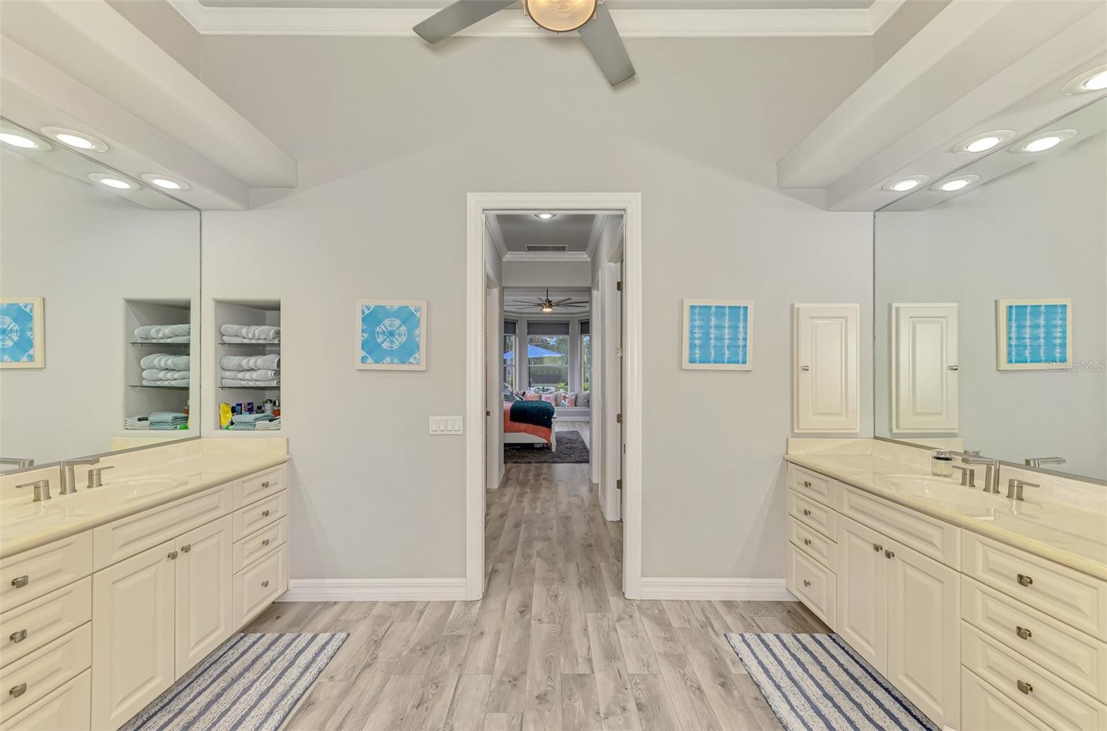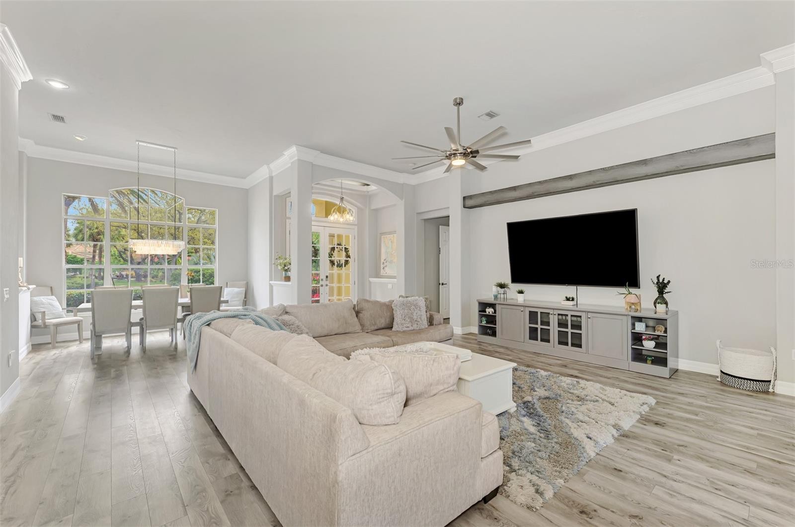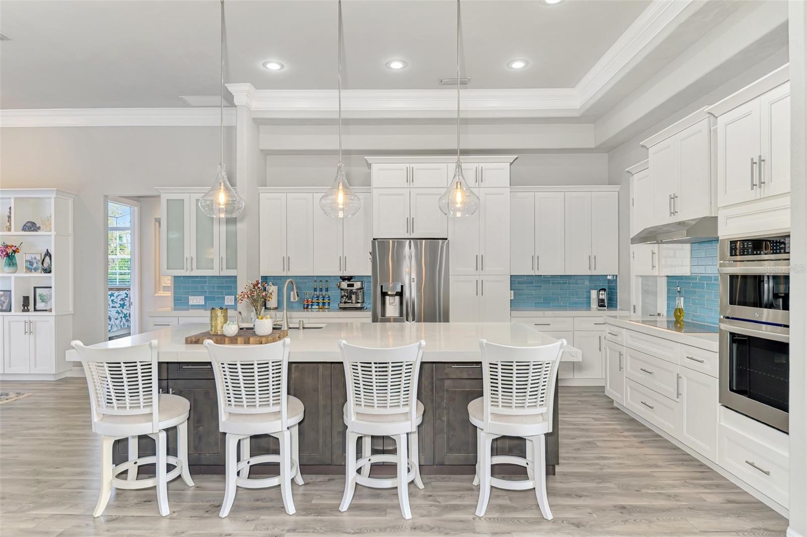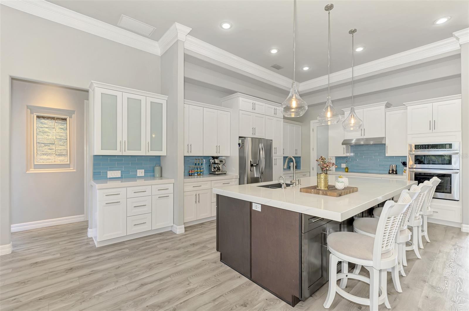 Welcome to this beautifully updated 3-bedroom, 2-bath home located in the highly desirable gated community of Boca Royale. Offering 2,819 square feet of living space and situated on a spacious half-acre lot with 211 feet of serene water frontage, this home combines luxury, comfort, and breathtaking views. Recent upgrades provide peace of mind and modern style, including a new tile roof (2024), new AC (2025), Storm Smart Screens throughout (2025), a new travertine lanai and panoramic view pool cage (2023), resurfaced pool and spa (2022), and an outdoor kitchen added in 2023. Inside, the home features new luxury plank vinyl flooring throughout, soaring ceilings, crown molding, ceiling fans, transom windows, and five sets of sliding glass doors that open to the expansive lanai and stunning water views. The updated chef’s kitchen is truly a standout with quartz countertops, glass hand painted backsplash, induction cooktop, built-in oven and microwave, built-in ice maker, baker’s lift for your stand mixer, and a large walk-in pantry. The breakfast nook features an aquarium window showcasing spectacular water views. The spacious family room and living room both offer sliding doors to the lanai and pool area, creating seamless indoor-outdoor living. The living room also includes built-in shelving and a dry bar with liquor dispenser and wine refrigerator, perfect for entertaining. A formal dining room with large sunlit windows, dedicated desk area for working from home, and a laundry room with abundant cabinetry and storage add convenience and functionality. The expansive primary suite highlighted by a wall of windows and a cozy built-in bench seat, creates the perfect nook for reading and relaxation, sliding doors to the pool and lanai, and two walk-in closets. The ensuite bath offers dual vanities, a relaxing soaking tub, and a separate shower. Two generous guest bedrooms provide comfort for family and visitors, with one offering direct access to the pool and lanai. Step outside to an entertainer’s dream featuring plenty of seating areas, a saltwater heated pool and spa recently resurfaced, and a beautiful outdoor kitchen with granite countertops. The expansive travertine lanai and panoramic pool cage create the perfect setting to relax or host gatherings while enjoying tranquil panoramic water views. The property also features a butterfly garden, fruit trees, and mature landscaping that enhance the peaceful Florida setting. Located in Boca Royale, a gated community with a 24-hour guard, this home offers an exceptional Florida lifestyle in a beautifully maintained neighborhood.