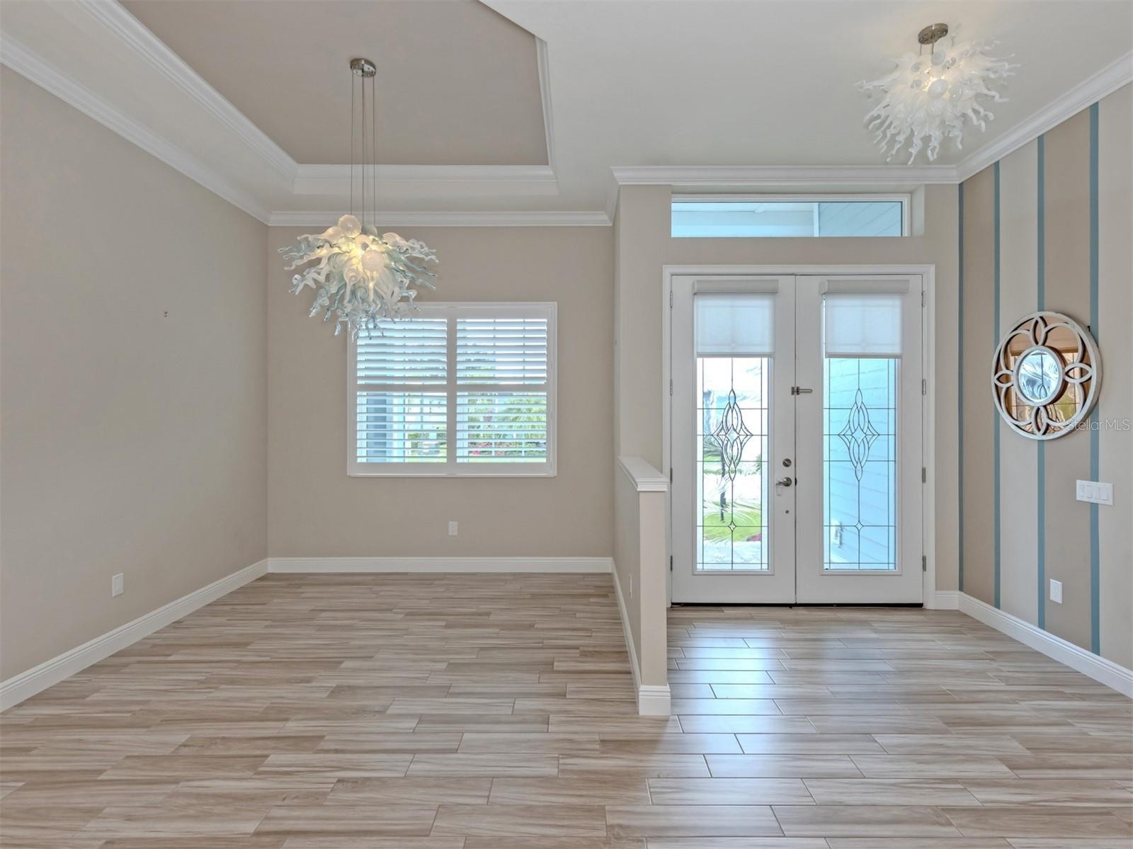 Wow... Welcome to 18060 Wooden Skiff Court, an exceptional WATERFRONT & FURNISHED residence, in the highly sought-after coastal community of Nokomis, Florida. From the moment you arrive, you’re greeted by impeccable curb appeal, lush tropical landscaping, and charming Key West cottage-style architecture featuring durable fiber cement siding over concrete block construction. New front garage lighting further enhances the home’s warm and sophisticated exterior presence. Inside, the residence showcases an open, light-filled floor plan with soaring ceilings, expansive glass doors, and seamless indoor-outdoor flow—ideal for both entertaining and everyday comfort. LED lighting throughout enhances the home’s modern aesthetic, while a premium BOSE surround sound system extends both inside and out, creating an immersive living and entertaining experience. A comprehensive Leader security system with protection on all doors and windows provides peace of mind. The chef’s kitchen is a standout, featuring Bosch appliances, custom cabinetry, generous counter space, and a large center island that anchors the heart of the home. The home is offered fully furnished, including washer and dryer, allowing for a truly move-in-ready experience. The primary suite is a private retreat, offering tranquil views, a spa-inspired bath, and spacious walk-in closets. Additional guest suites are thoughtfully designed to provide comfort and privacy for family and visitors alike. Hurricane-impact windows and doors (with the exception of the kitchen’s fishbowl window) along with $20,000 in added hurricane screens provide enhanced protection and efficiency. Step outside to your personal oasis—an expansive lanai, a heated saltwater pool with elegant up-lighting by Venice Lighting, and beautifully appointed outdoor living areas invite you to unwind in style. The outdoor space is further elevated by a fireplace and TV hookup, perfect for year-round enjoyment. The private dock, freshly painted in 2025, offers direct water access for boating enthusiasts, completing the ultimate Florida waterfront lifestyle. Additional upgrades include elegant light fixtures throughout home and a new A/C system installed in 2023, ensuring comfort and efficiency for years to come. Located just minutes from pristine Gulf beaches, championship golf, fine dining, and the charm of nearby Venice and Sarasota, this residence offers both convenience and exclusivity. Experience coastal luxury at its finest—where every detail has been curated for comfort, elegance, and the very best of waterfront living.