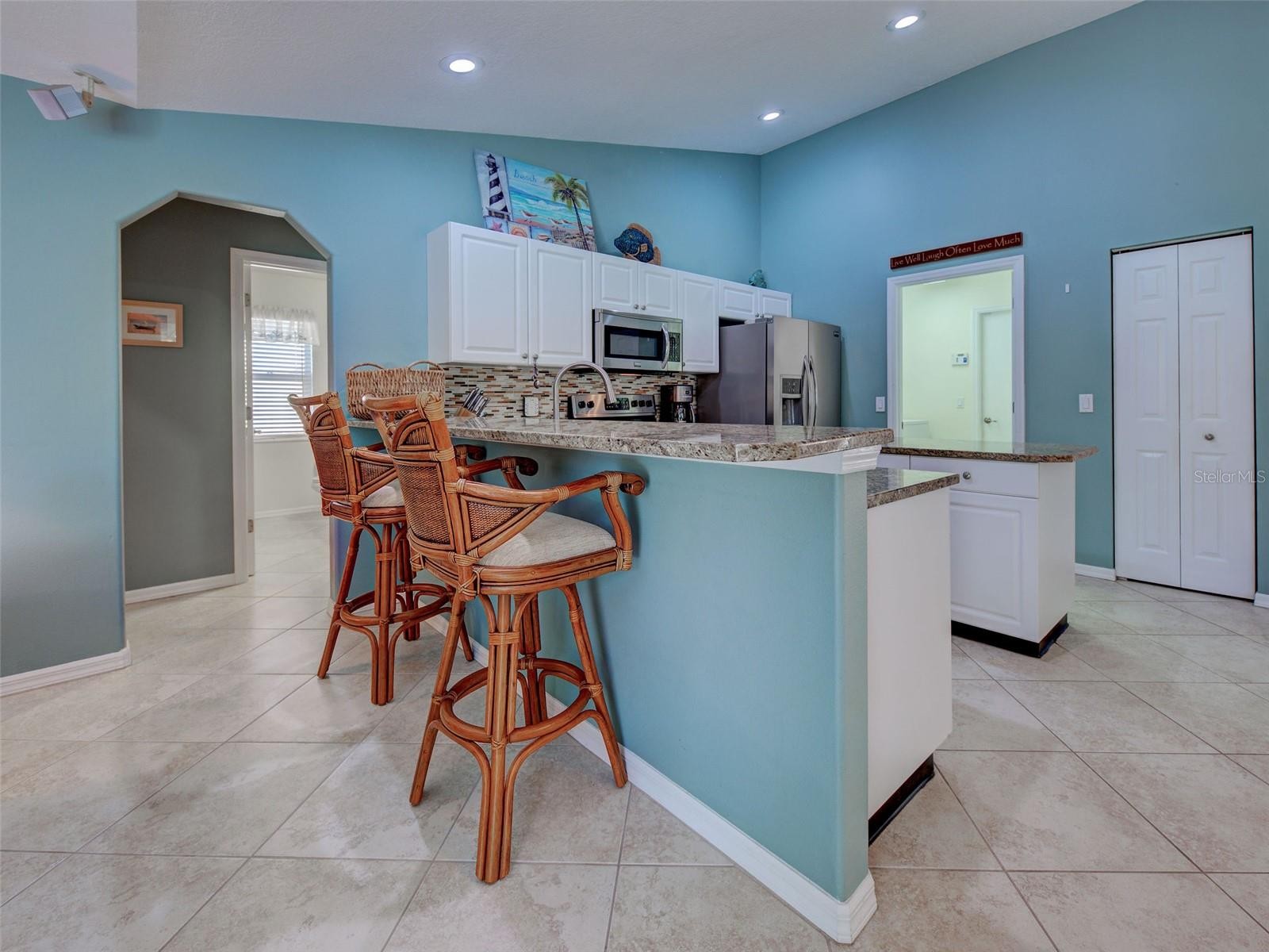 Finally a home that is perfectly placed! Located within 10 minutes of the Sandy Beaches of Venice and I-75 . It's here that you'll find a place to call home. From the moment you walk through the front door you're overcome by a feeling of tranquility. This 3 bedroom home opens up to an expansive pool area from the bedroom, kitchen, living & family rooms. Pool area is private with scenic lake and wooded views. Caged pool area is 26 x29. The home is perfectly equipped for the part timer with a heated pool, security system and hurricane shutters. Home has cathedral ceilings in the living room, tray ceilings in both the family room & master bedroom, with rounded drywall corners throughout the interior. Kitchen has an aquarium window, all stainless-steel appliances, raised panel cabinetry, granite counters and spot lighting. Master Bath features a walk-in shower and dual sinks! Garage is hurricane reinforced, has built in work bench area and extra cabinetry. Home is wired for surround sound and comes with the speakers! Newer Clearview Pool Cage! Venice Palms offers a paved walk/bike path. Neighborhood has its owned filtered well system for irrigation - Save $$$. Don't pay the County to water your lawn. And no City taxes!
