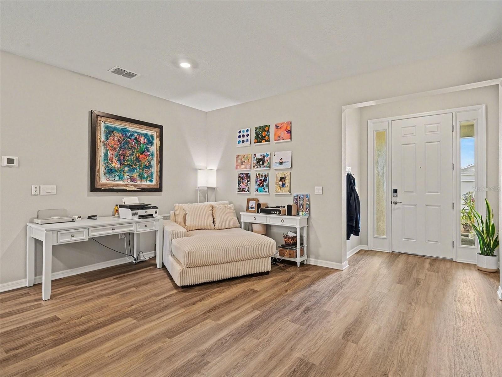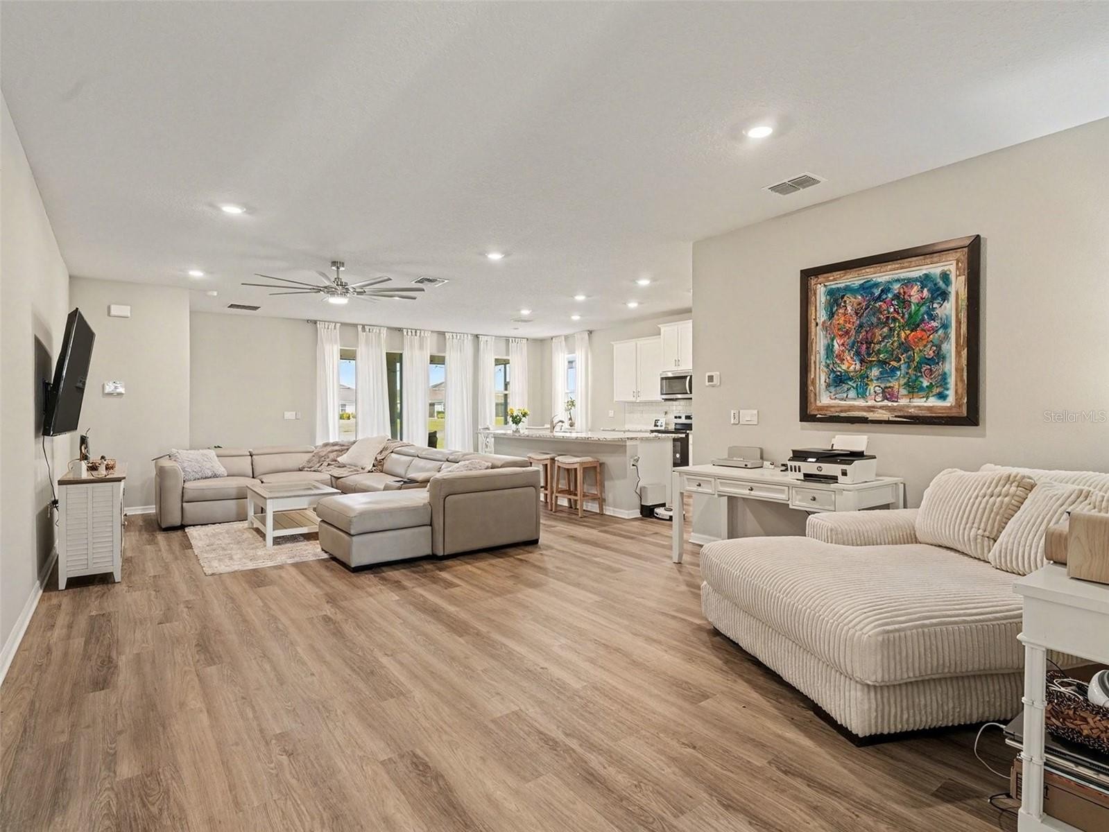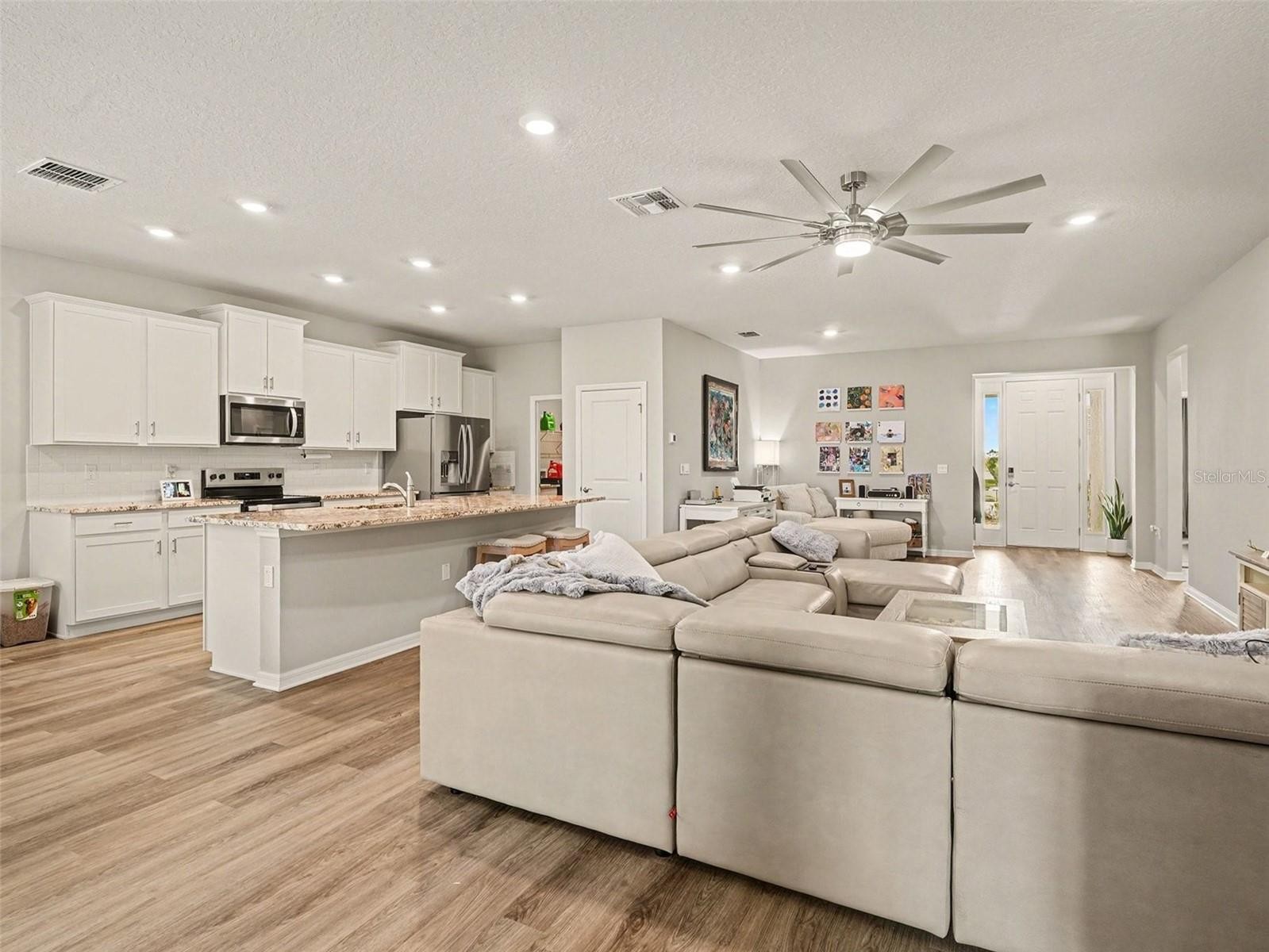 Welcome to this beautifully upgraded 3-bedroom, 2-bath home in the highly sought-after Star Farms at Lakewood Ranch, featuring approximately $50,000 in upgrades that new construction does not include! This move-in-ready residence is ideally situated on a quiet interior street—not a main road—so traffic is limited to neighbors only, offering a peaceful and private setting. The home showcases a freshly painted interior, luxury vinyl plank flooring in the main living areas, carpeted bedrooms, and a screened-in lanai overlooking tranquil water and stunning sunset views. A generous easement on one side of the property adds extra privacy rarely found in the community. Thoughtful upgrades include custom California Closets in the primary suite, a whole-house water filtration system, garage shelving, gutters, and smart-home technology that allows you to control lighting, air conditioning, and the garage remotely from your phone. Star Farms is a gated, resort-style community offering exceptional five-star amenities, including multiple clubhouses, resort-style pools and spas, a coffee shop and restaurant, fitness and performance centers, scenic walking trails, dog parks, and courts for tennis, pickleball, basketball, volleyball, and bocce, along with a full calendar of community events and activities. Conveniently located near shopping, dining, and Gulf Coast beaches, this home delivers upgraded comfort, privacy, and an active Florida lifestyle in one of Lakewood Ranch’s most desirable communities.